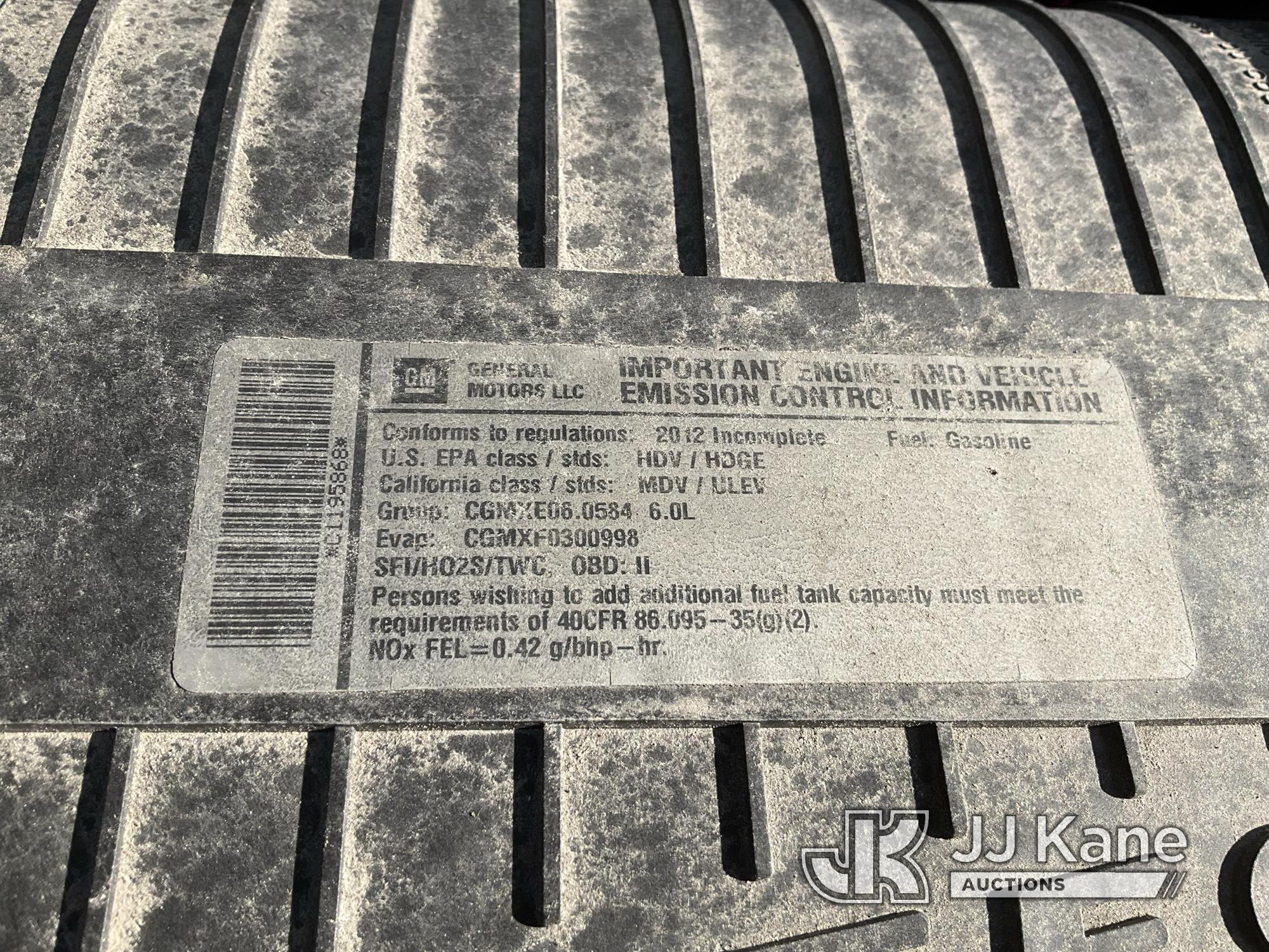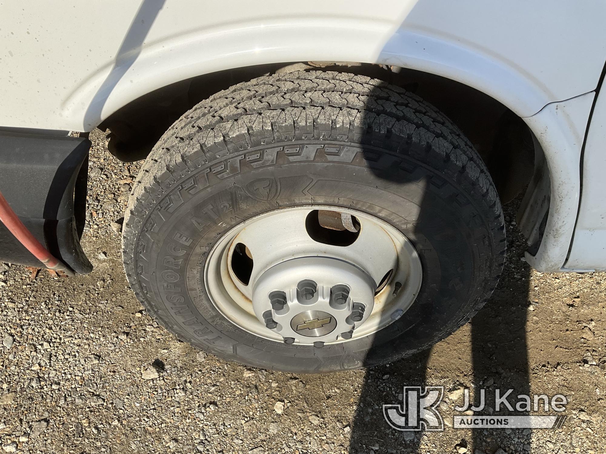 2012 Chevrolet Express G3500 Cutaway Van Body/Service Truck, 6.0L V8, gas RWD, 6-Speed Automatic, A/C, with Cummins Onan generator, gas, (78,630 miles) (Runs & Moves) (Do Not Start, Easily Stalls Out, Fuel Leak, Check Engine Light On, Runs Rough, Rust Damage, Generator Not Operating ) This is a Titled Item*