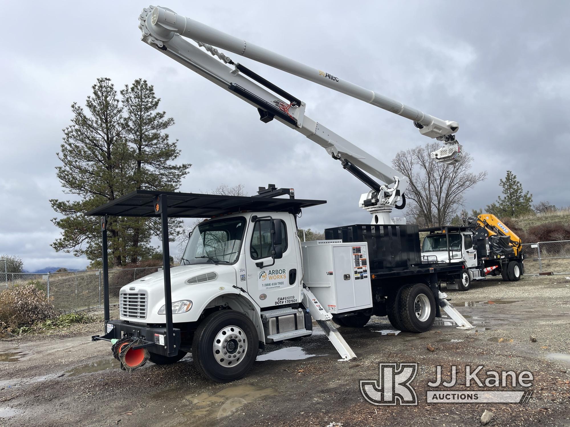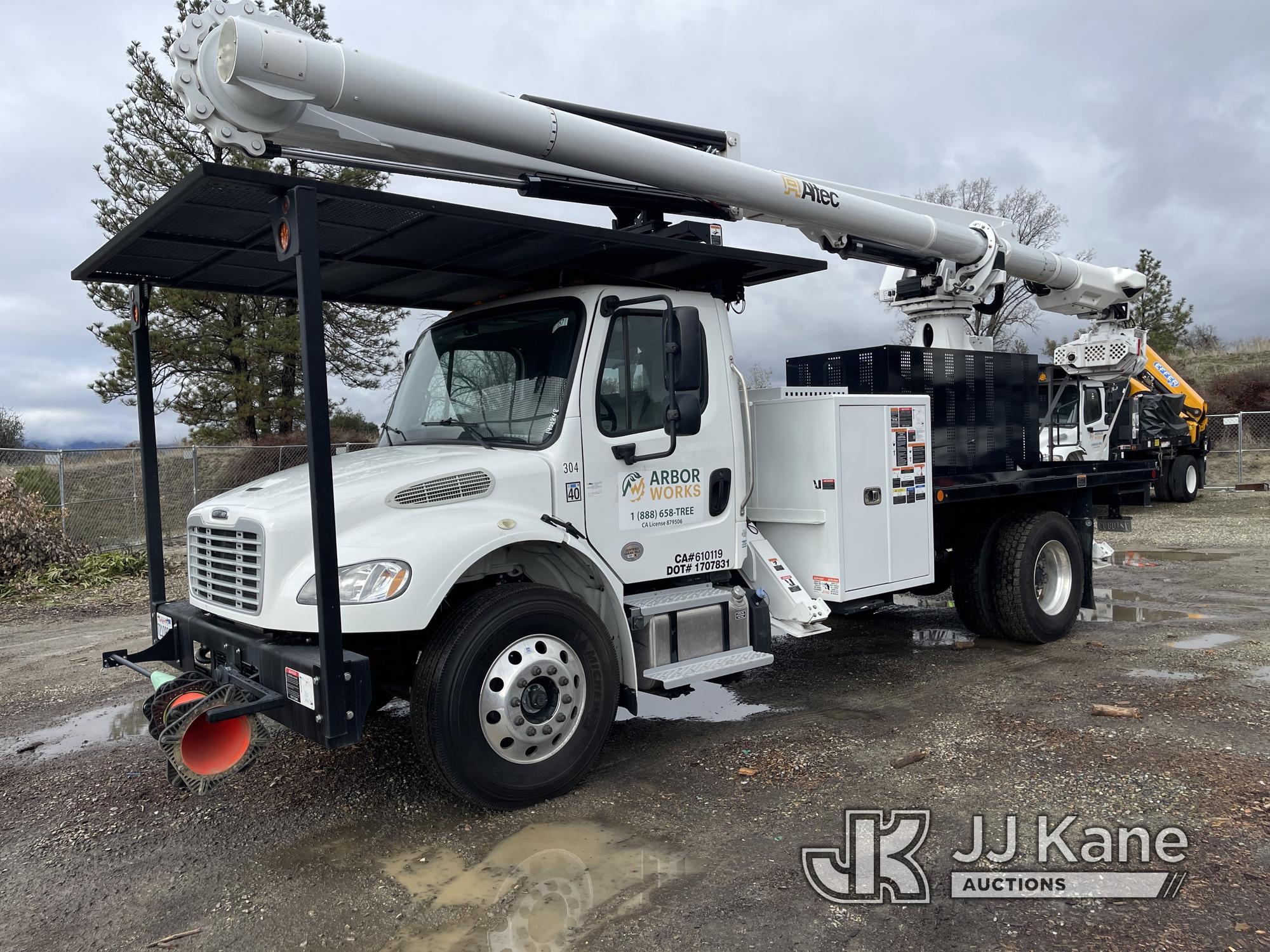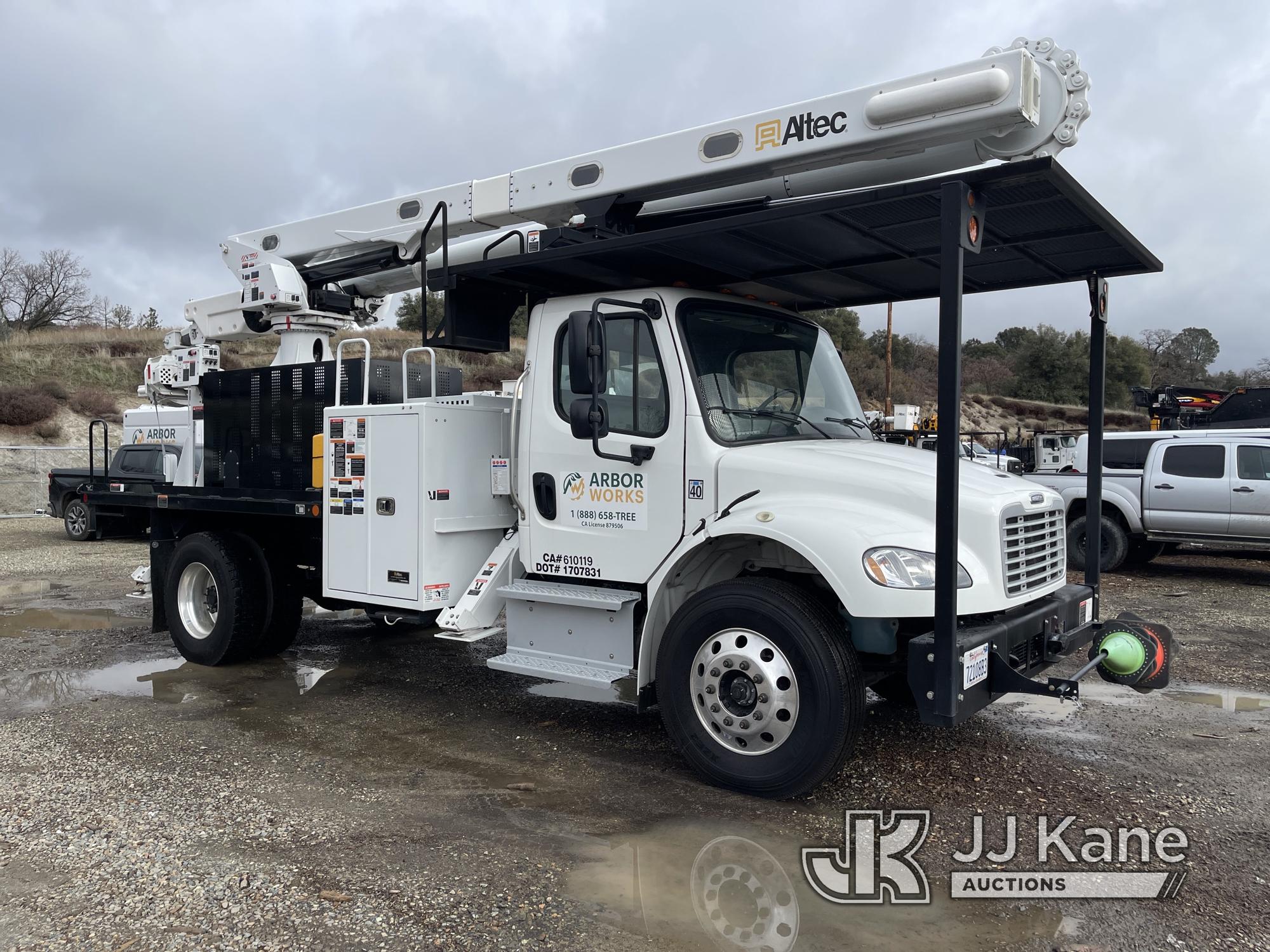 Altec MT66E76 Lancer, Lancer s/n 0820IIG110, rear mounted on 2019 Freightliner M2 106 lancer, 6.7L diesel, Allison Auto, A/C, (4,312 miles (unverified)) 76 foot max cut height, 8 inch max cut diameter with grapple, 150 max weight, Insulated to 46KV (Runs, drives and boom is operational) (Reads 69 hours) This is a Titled Item*
