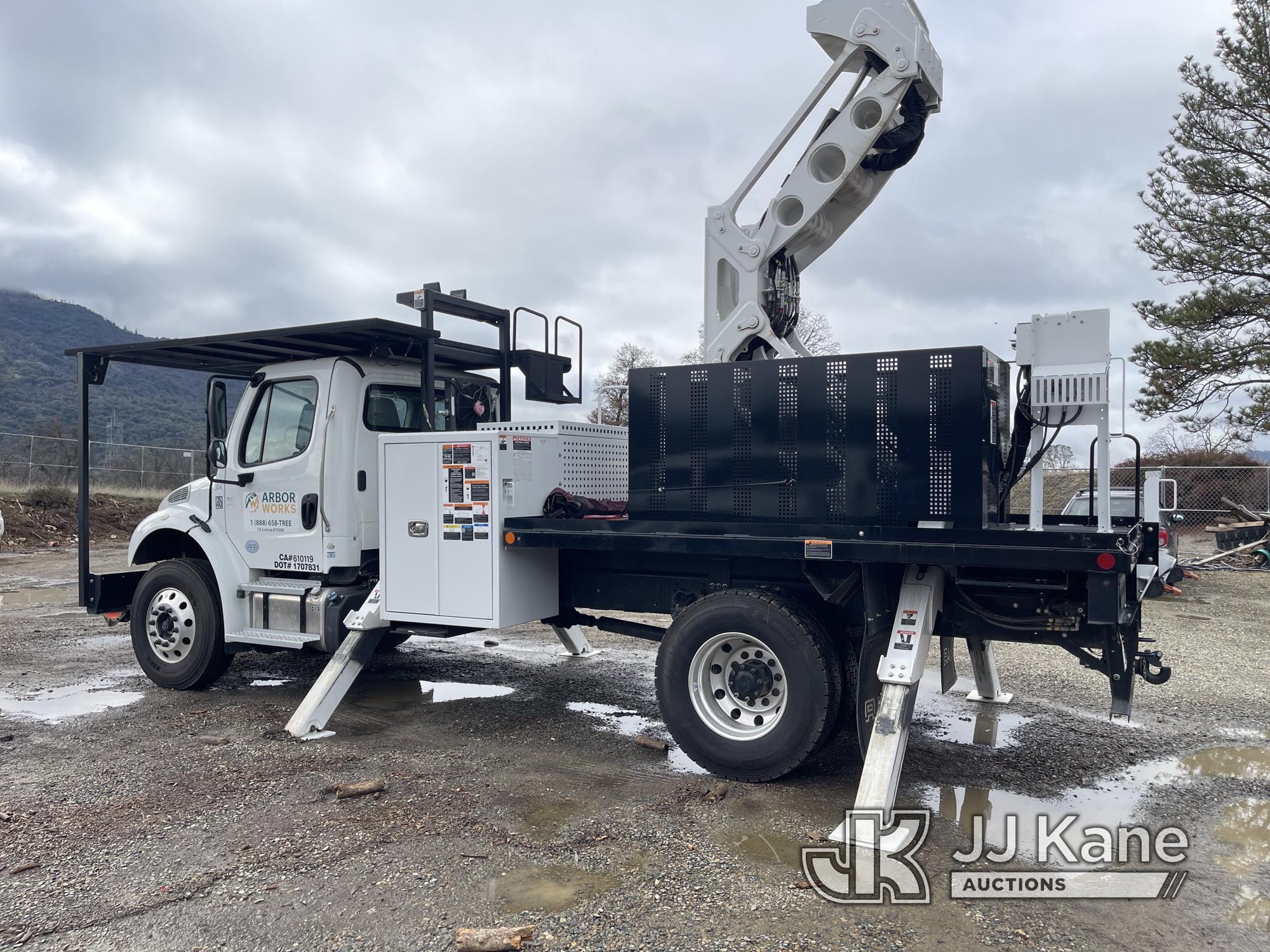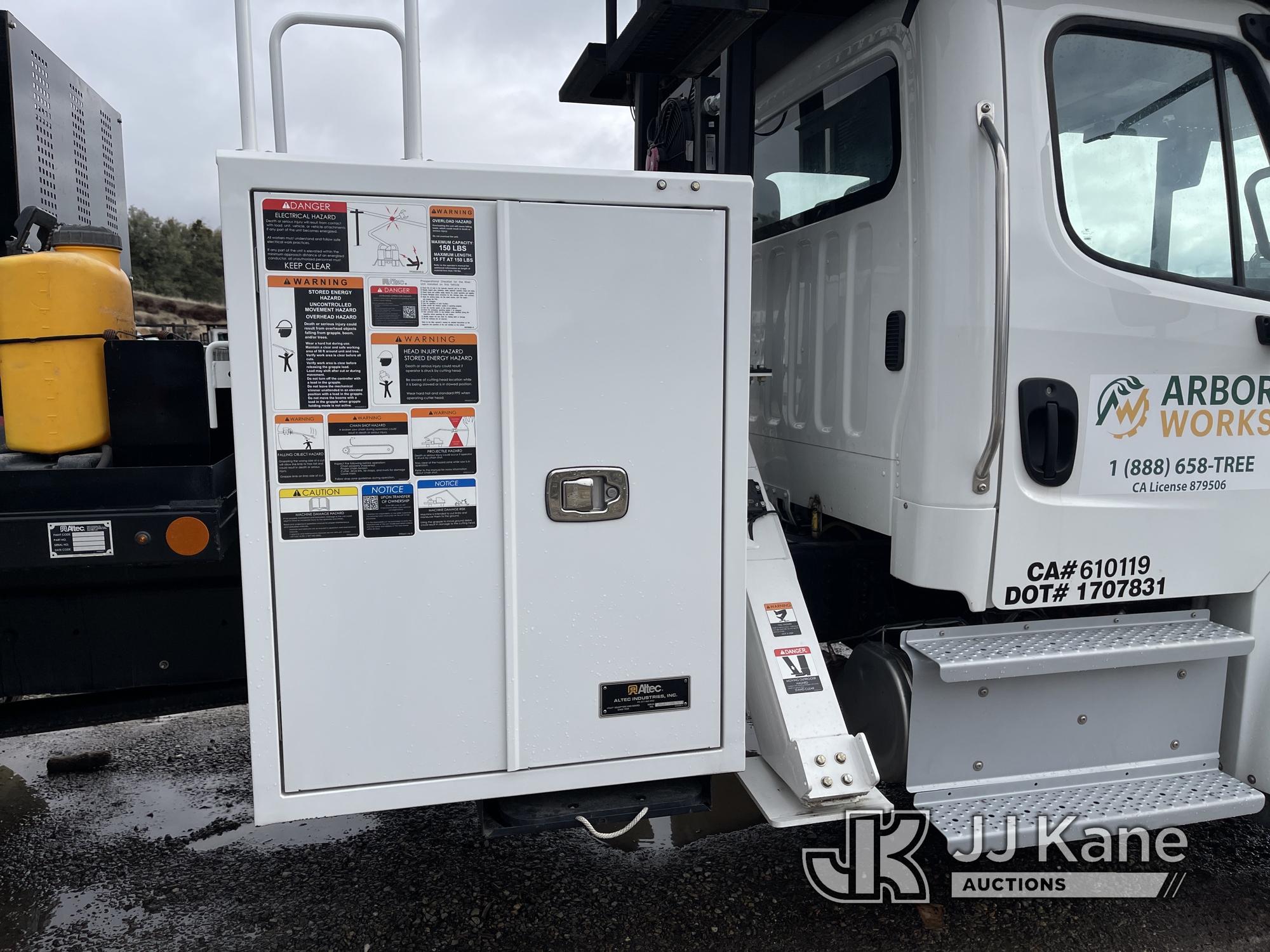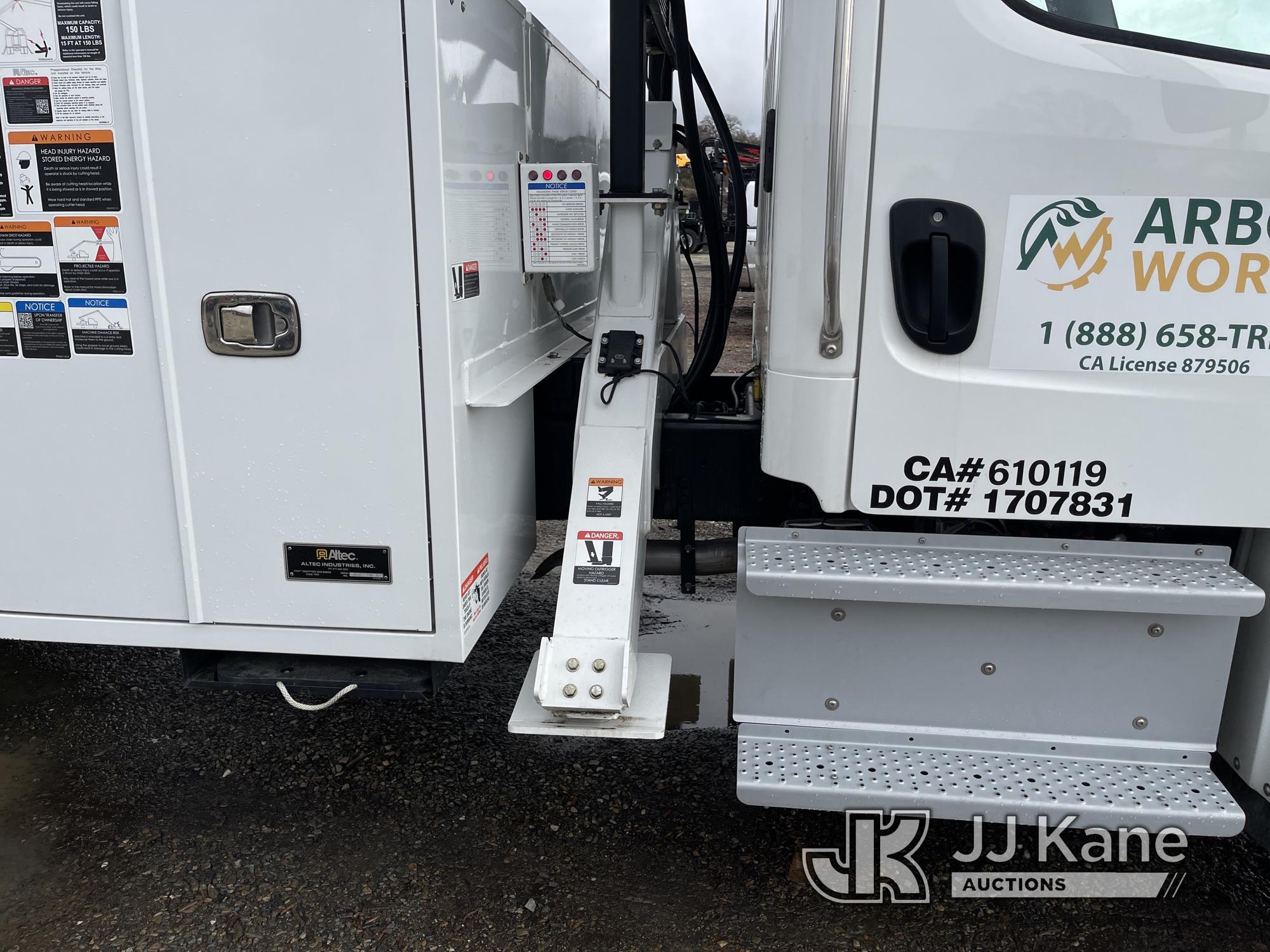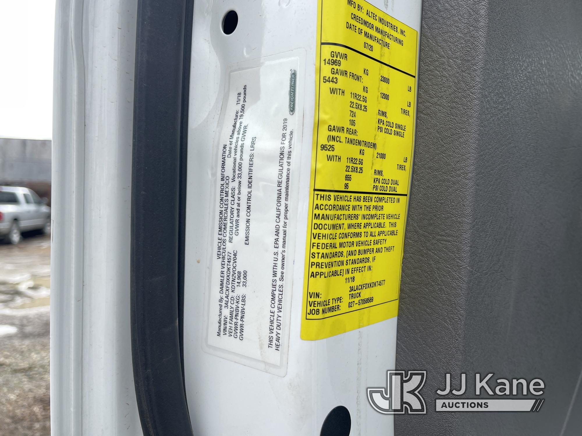 Altec MT66E76 Lancer, Lancer s/n 0820IIG110, rear mounted on 2019 Freightliner M2 106 lancer, 6.7L diesel, Allison Auto, A/C, (4,312 miles (unverified)) 76 foot max cut height, 8 inch max cut diameter with grapple, 150 max weight, Insulated to 46KV (Runs, drives and boom is operational) (Reads 69 hours) This is a Titled Item*