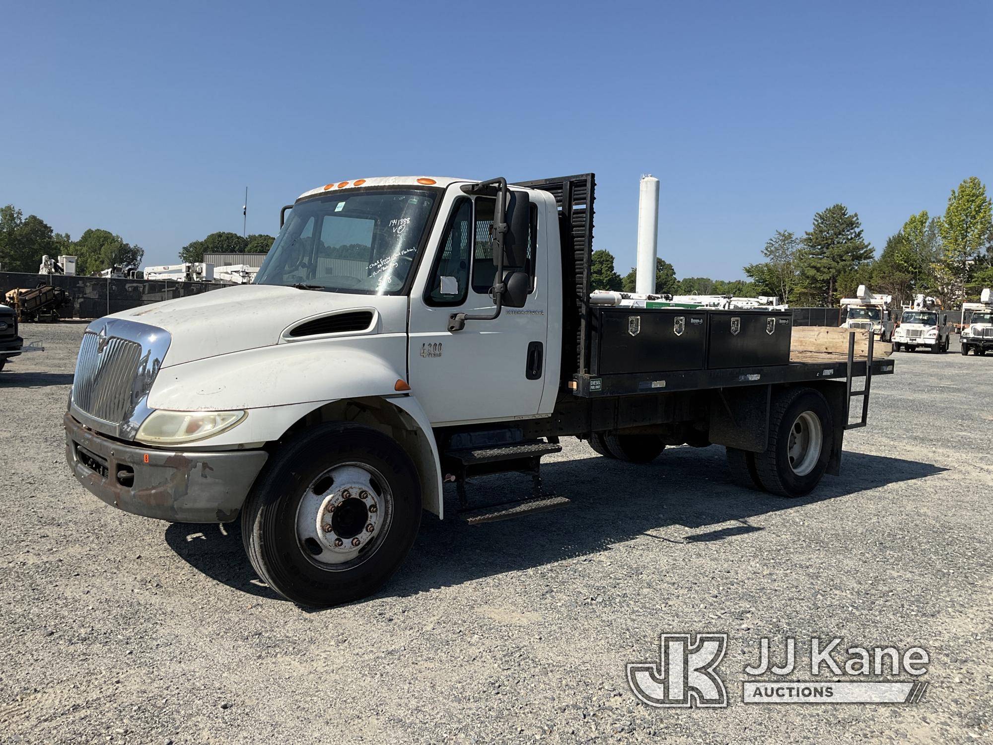 2005 International 4200 Flatbed Truck, VT365 diesel, Auto, A/C, with 15 ft bed, True Mileage Unknown (Not Running Condition Unknown, Check Engine Light On, Check Electrical System Light On, ABS Light On, Paint/Body Damage) This is a Titled Item*