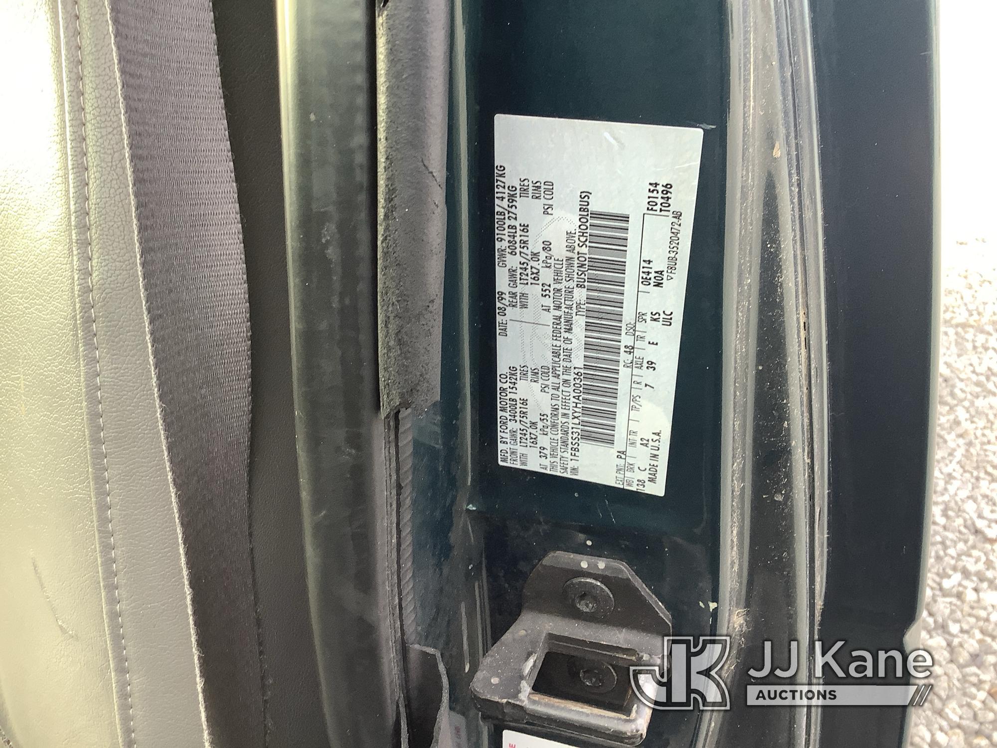 2000 Ford E350 Passenger Van, 8-cyl gas, Auto, A/C, (Exempt from Odometer Disclosure - Reads 172,549 miles) (Not Running, Condition Unknown, Rear Doors Will Not Open, Body/Paint/Rust Damage, Radio Removed) This is a Titled Item*