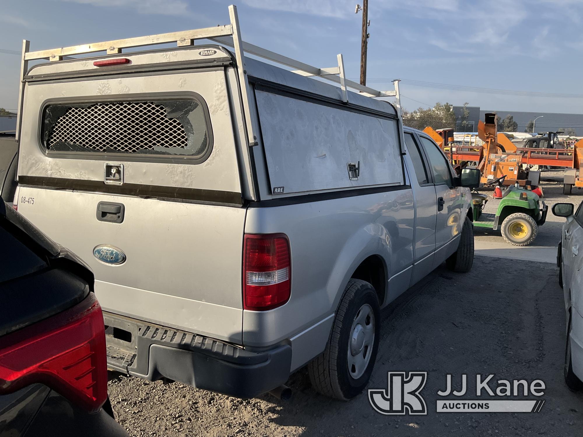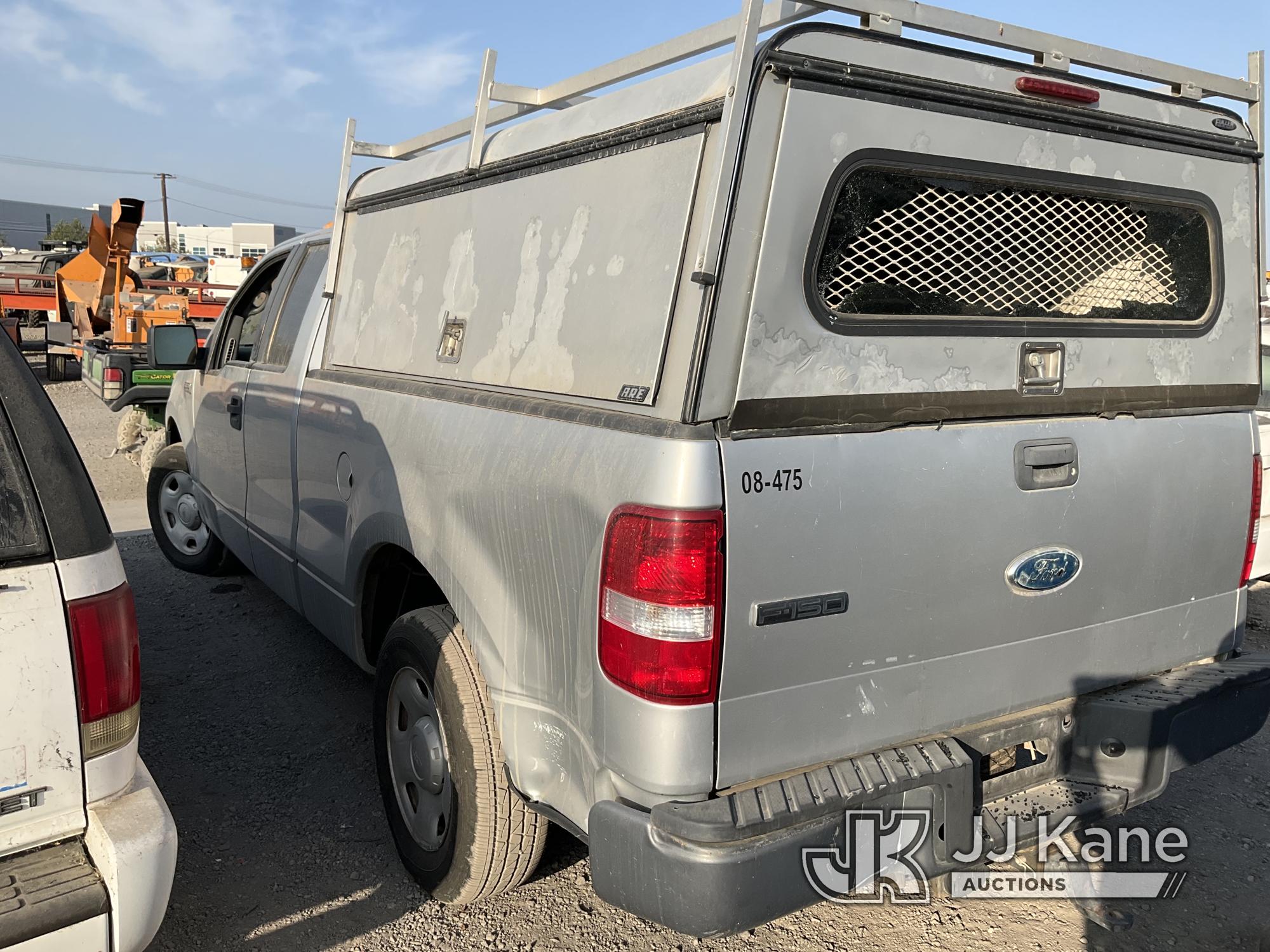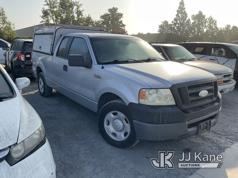 2008 Ford F150 Extended-Cab Pickup Truck, 8-cyl gas, Auto, A/C, with Tow Package, Camper Shell With Racks, (223,232 miles) (Not Running, Condition Unknown) (Camper Shell Rear Window Broken) (Body Damage) (Must Be Towed) (Bidding Restricted to Licensed Vehicle Dealers Only), This is a Titled Item*