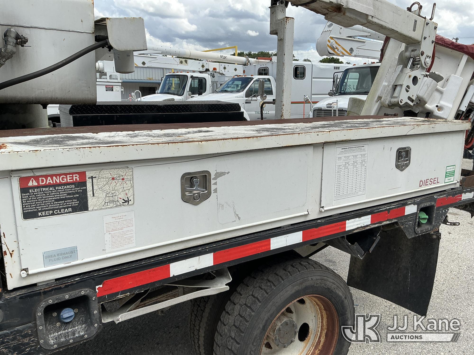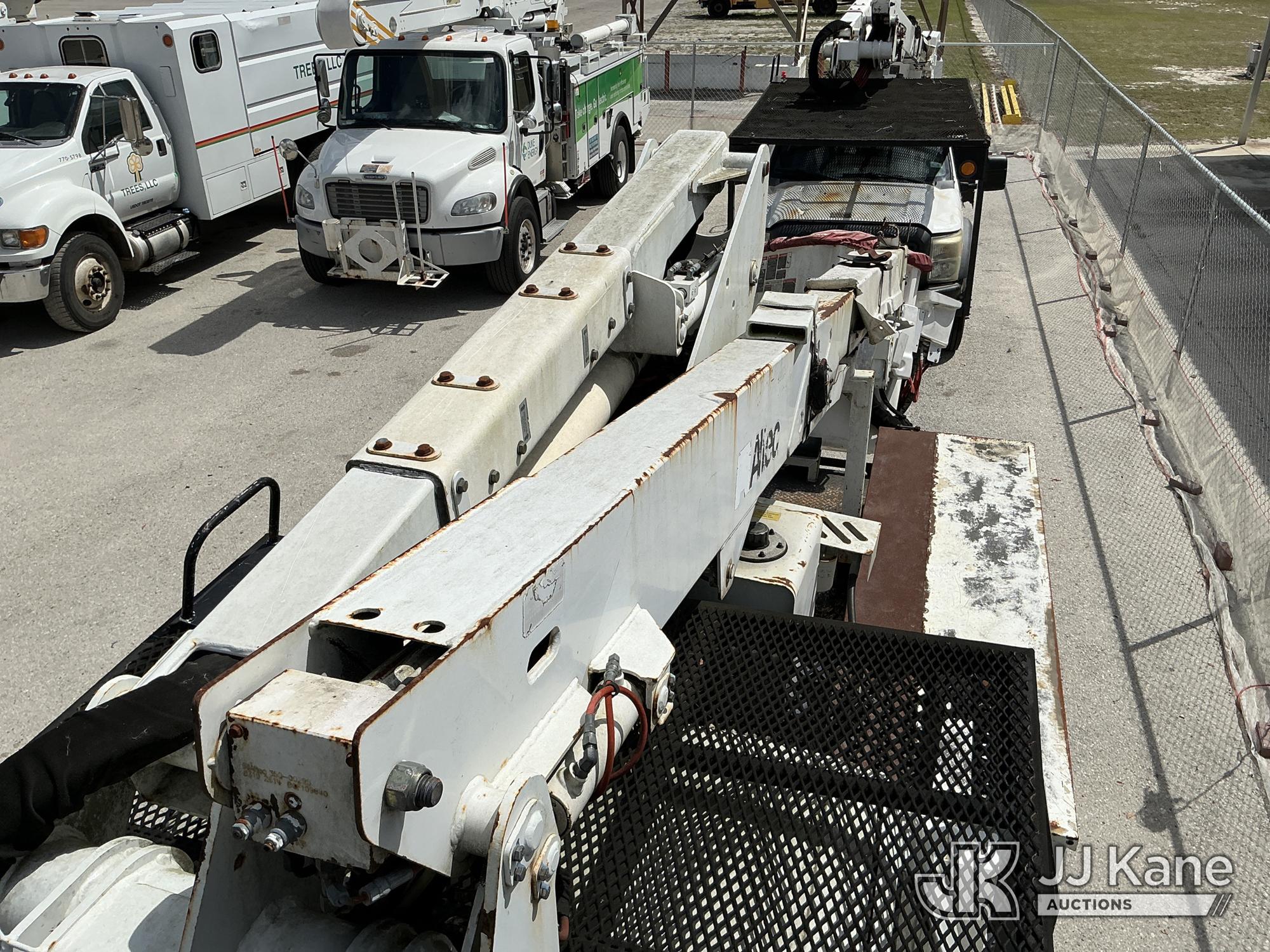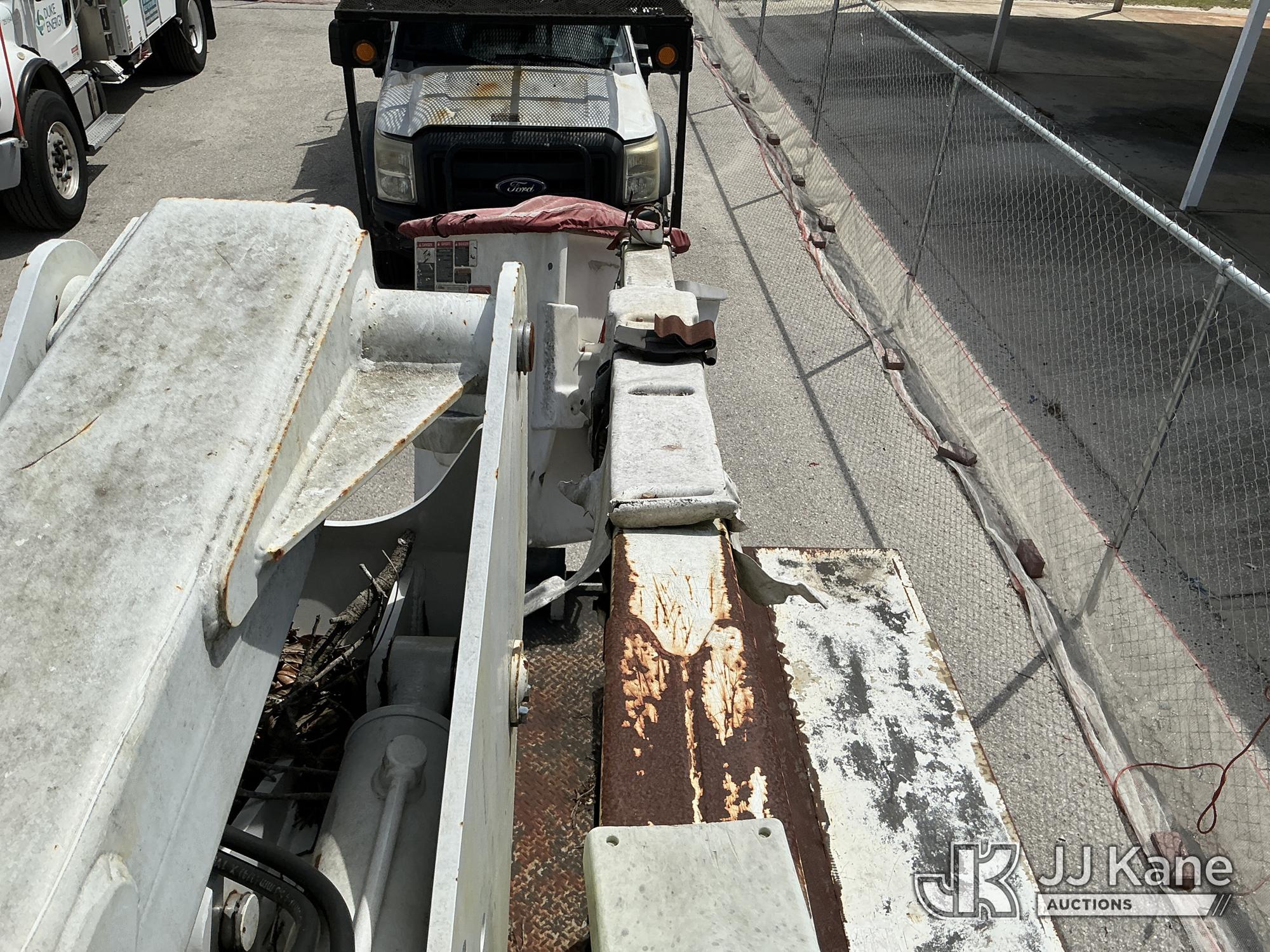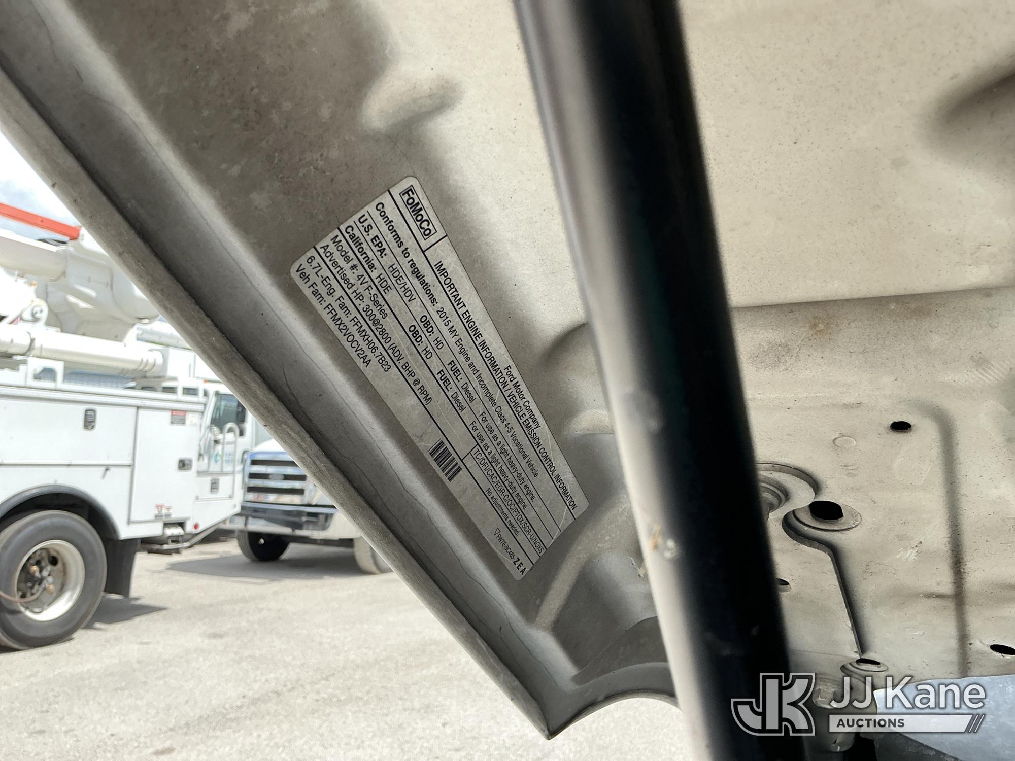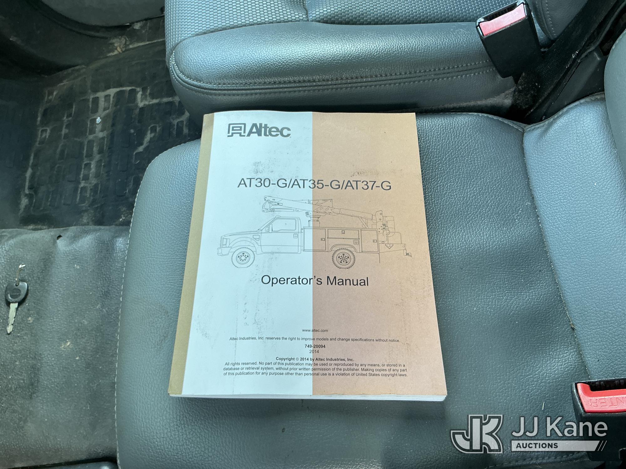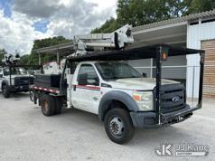 Altec AT37G, 42 ft, Articulating & Telescopic Bucket Truck s/n 0714DE16799, with single-man bucket & 2 hydraulic outriggers, mounted behind cab on 2015 Ford F550 4x4 Flatbed Truck, 6.7L diesel, Auto, A/C, (54,179 miles (unverified)) (**Dealer Only** Not Running, Condition Unknown) (Check Engine Light On, Body & Paint Damage); **Note**This item has been removed from service due to the listed safety repairs that were not completed. The safety items below must be completed by an approved OEM facility before the unit can return to service: REPLACE DAMAGED LOWER BOOM ASSEMBLY, REPLACE DAMAGED LOWER BOOM LIFT CYLINDER, COMPLETE ANSI INSPECTION, COMPLETE ANY REQUIRED TESTING AND REPAIRS AFTER INSPECTIONS ARE COMPLETED)(FL Residents Purchasing Titled Items - tax, title & registration fees will be collected at the maximum rate of $400.00 under 25,999 and $800.00 for Over 26,000 and $250.00 for Trailers - Proof of insurance is mandatory; Out of State Residents Purchasing Title Items - tax will be collected based upon your state rate.) (Bidding Restricted to Licensed Vehicle Dealers Only), This is a Titled Item*