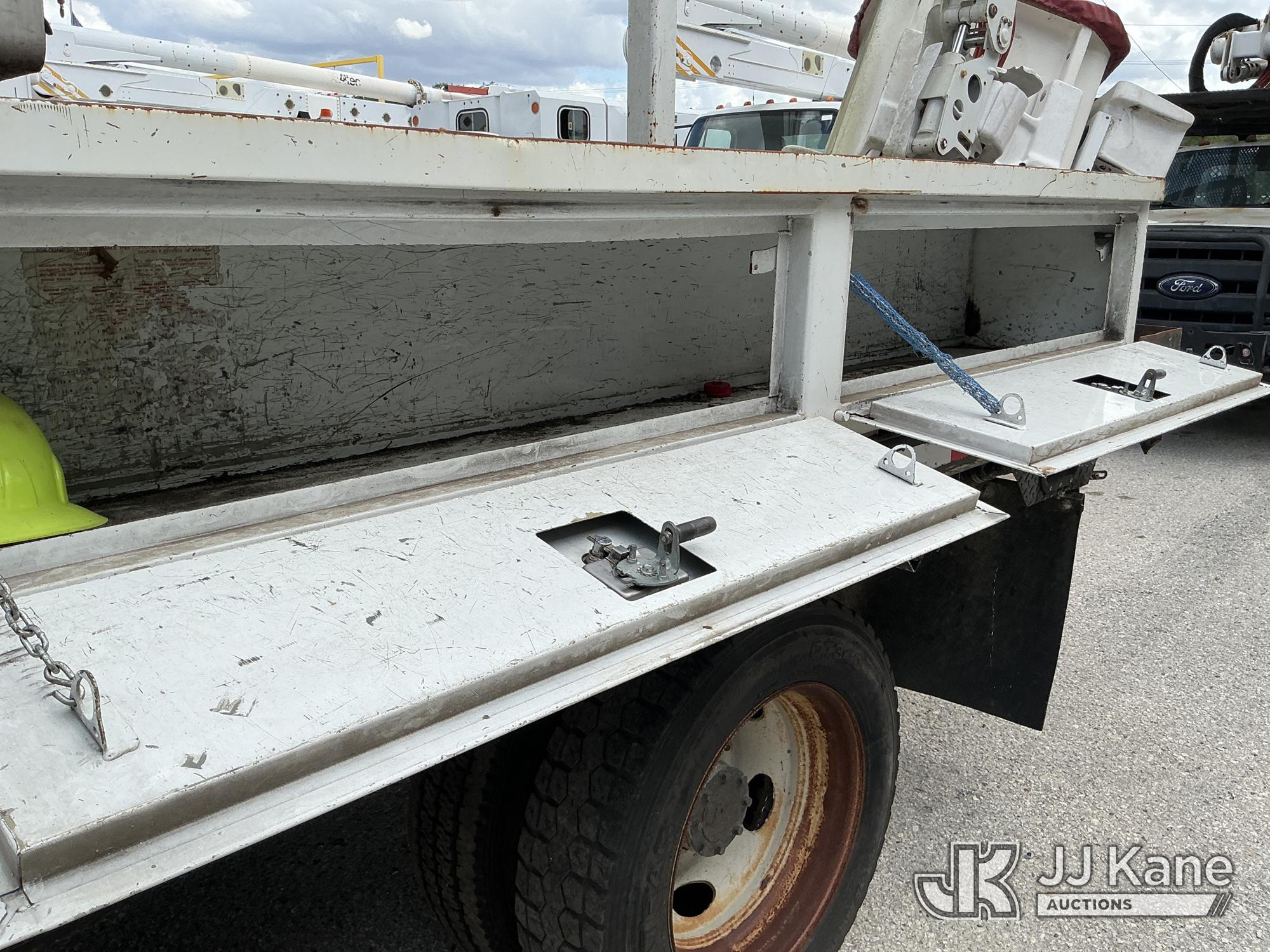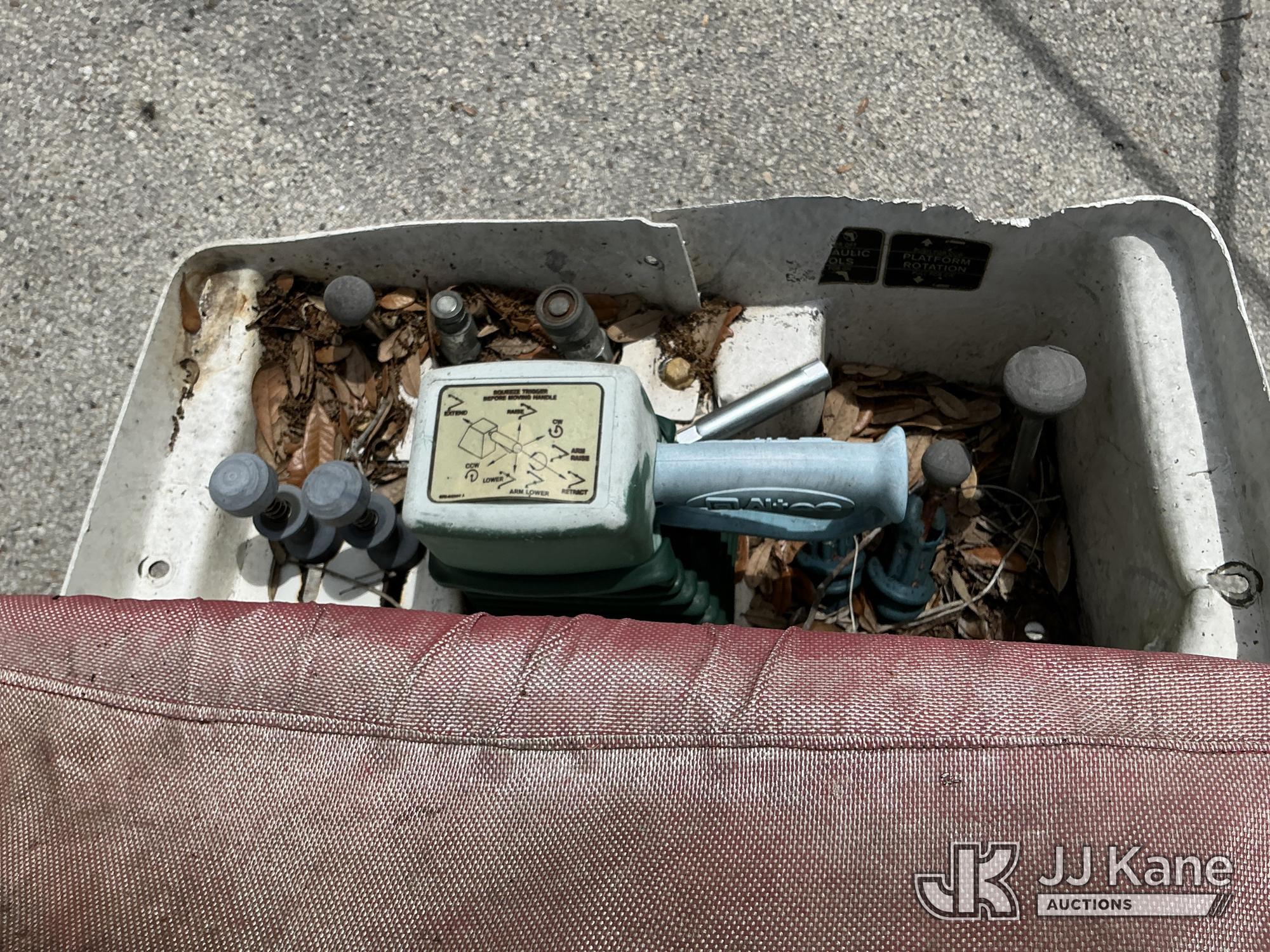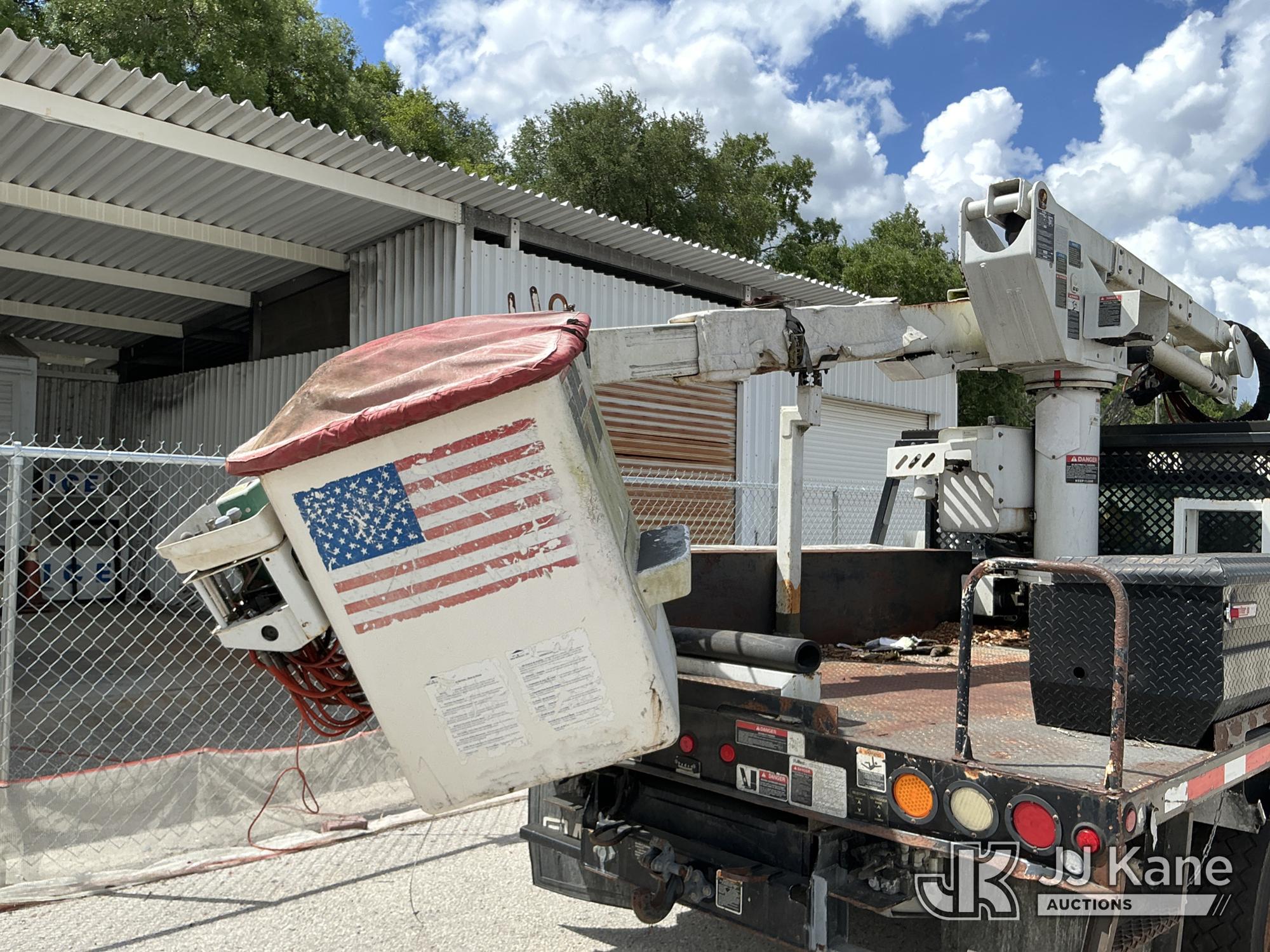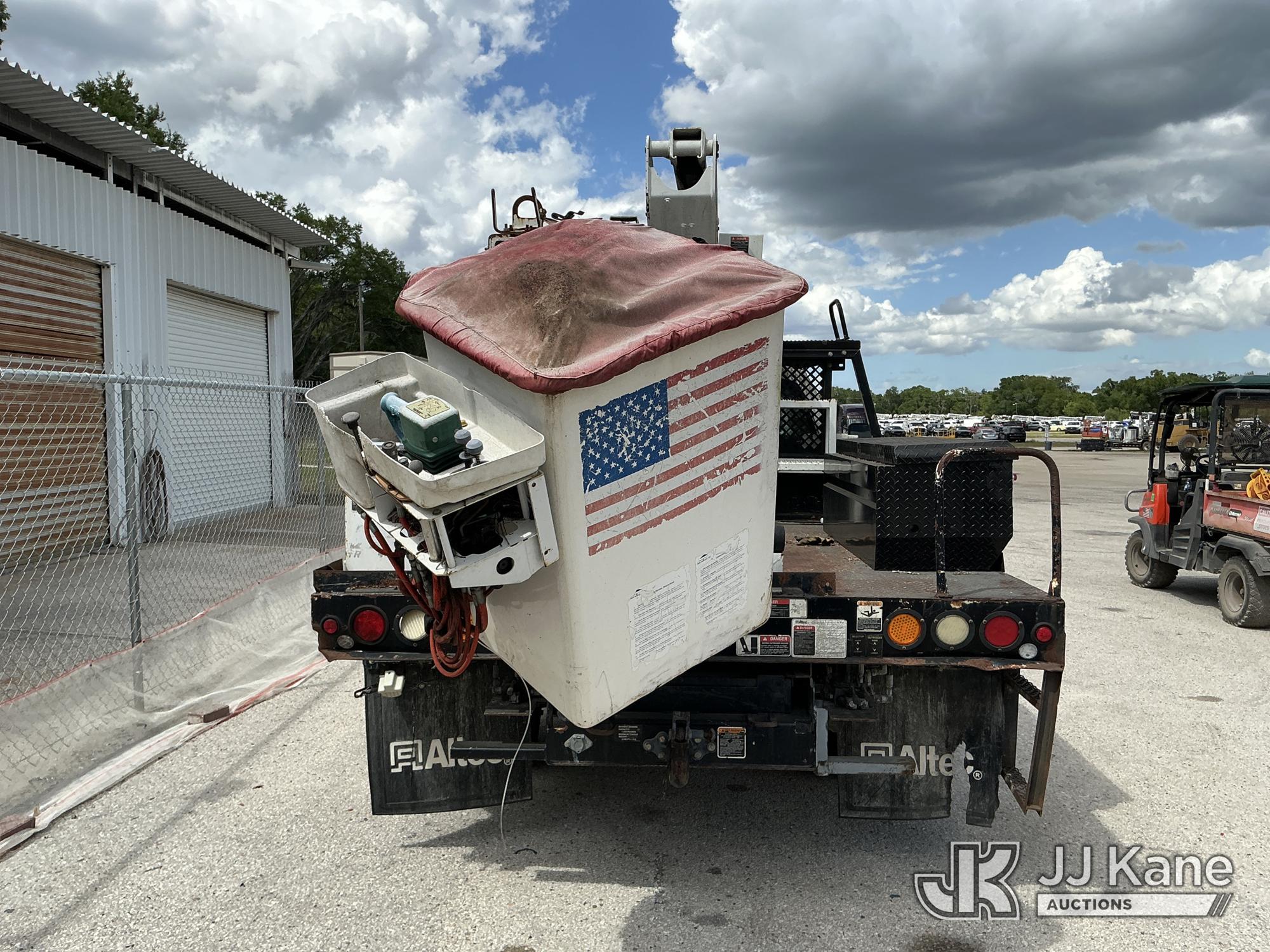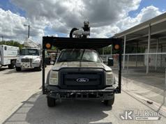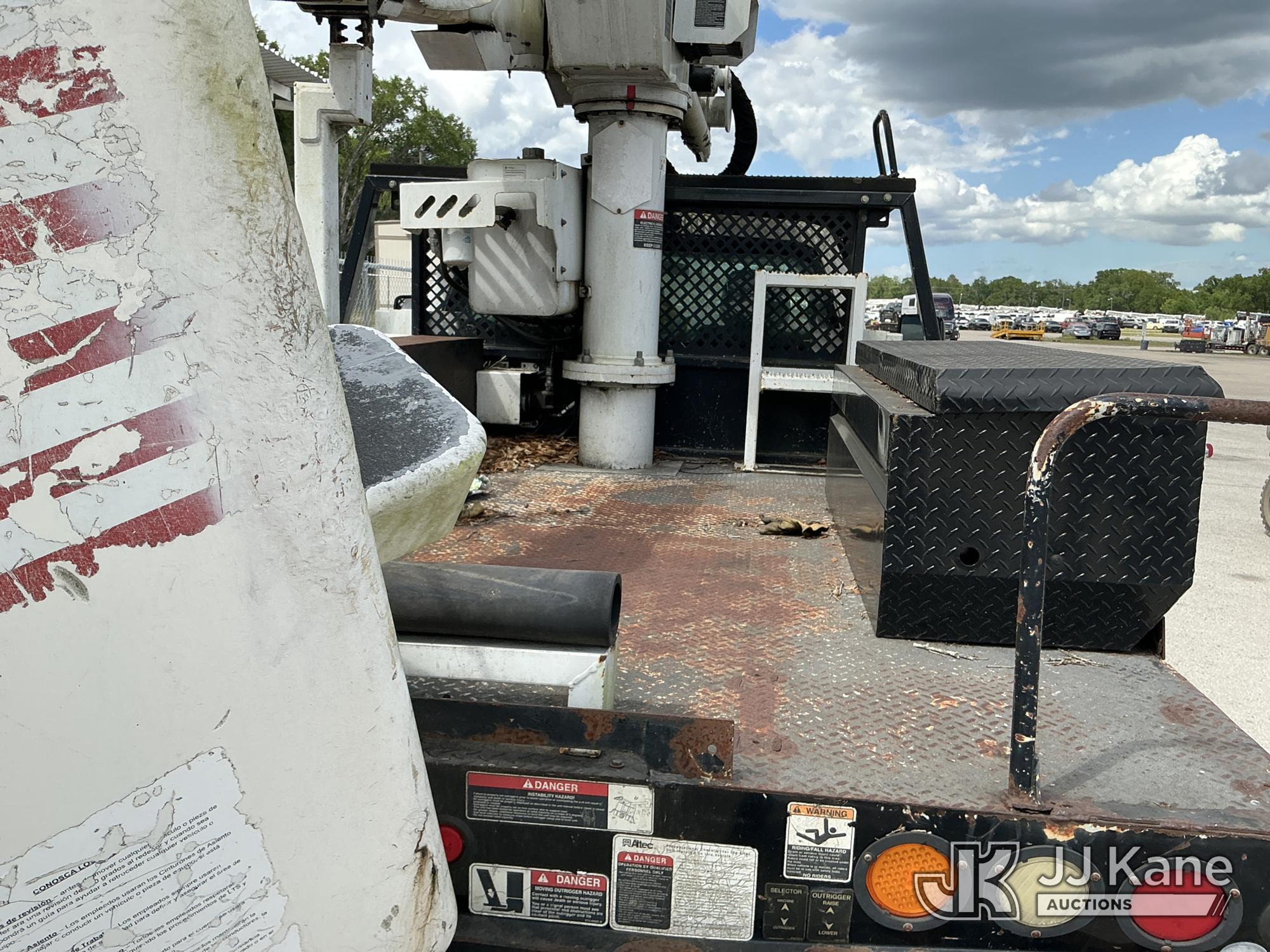 Altec AT37G, 42 ft, Articulating & Telescopic Bucket Truck s/n 0714DE16799, with single-man bucket & 2 hydraulic outriggers, mounted behind cab on 2015 Ford F550 4x4 Flatbed Truck, 6.7L diesel, Auto, A/C, (54,179 miles (unverified)) (**Dealer Only** Not Running, Condition Unknown) (Check Engine Light On, Body & Paint Damage); **Note**This item has been removed from service due to the listed safety repairs that were not completed. The safety items below must be completed by an approved OEM facility before the unit can return to service: REPLACE DAMAGED LOWER BOOM ASSEMBLY, REPLACE DAMAGED LOWER BOOM LIFT CYLINDER, COMPLETE ANSI INSPECTION, COMPLETE ANY REQUIRED TESTING AND REPAIRS AFTER INSPECTIONS ARE COMPLETED)(FL Residents Purchasing Titled Items - tax, title & registration fees will be collected at the maximum rate of $400.00 under 25,999 and $800.00 for Over 26,000 and $250.00 for Trailers - Proof of insurance is mandatory; Out of State Residents Purchasing Title Items - tax will be collected based upon your state rate.) (Bidding Restricted to Licensed Vehicle Dealers Only), This is a Titled Item*