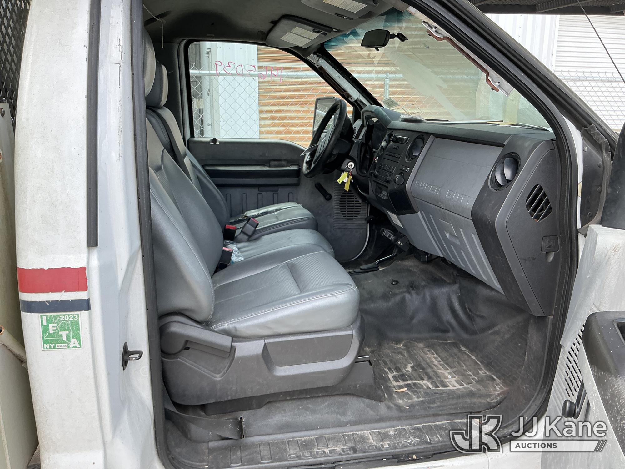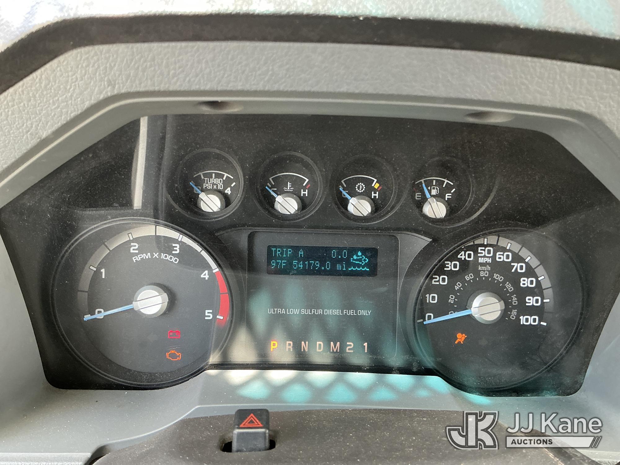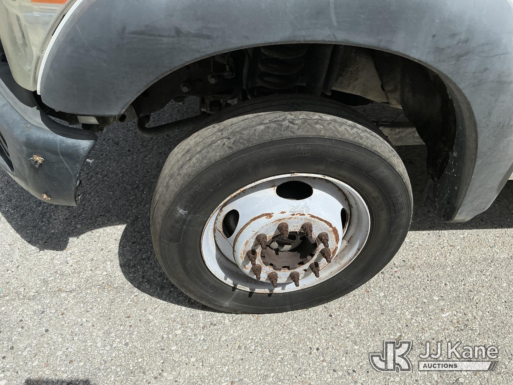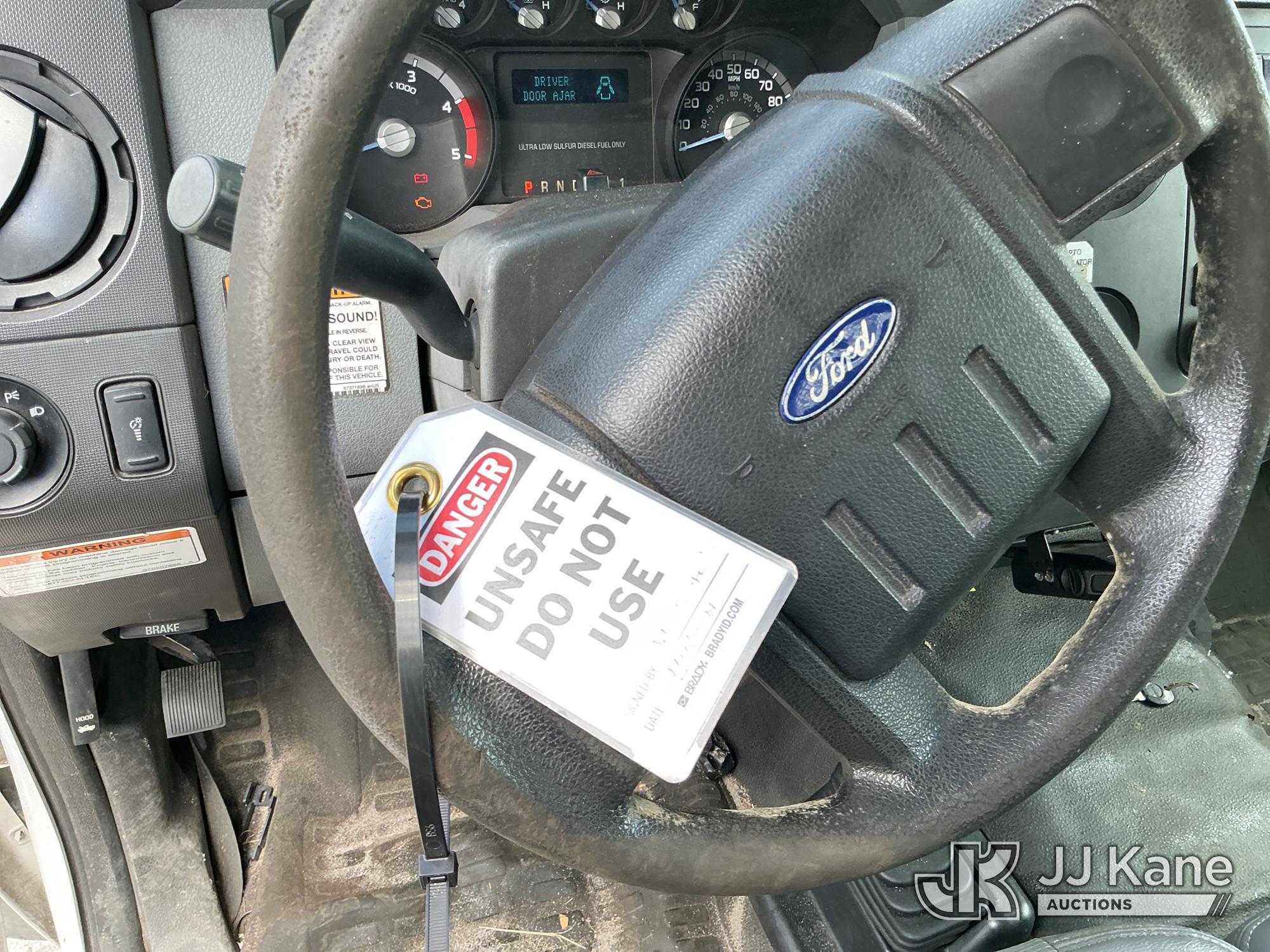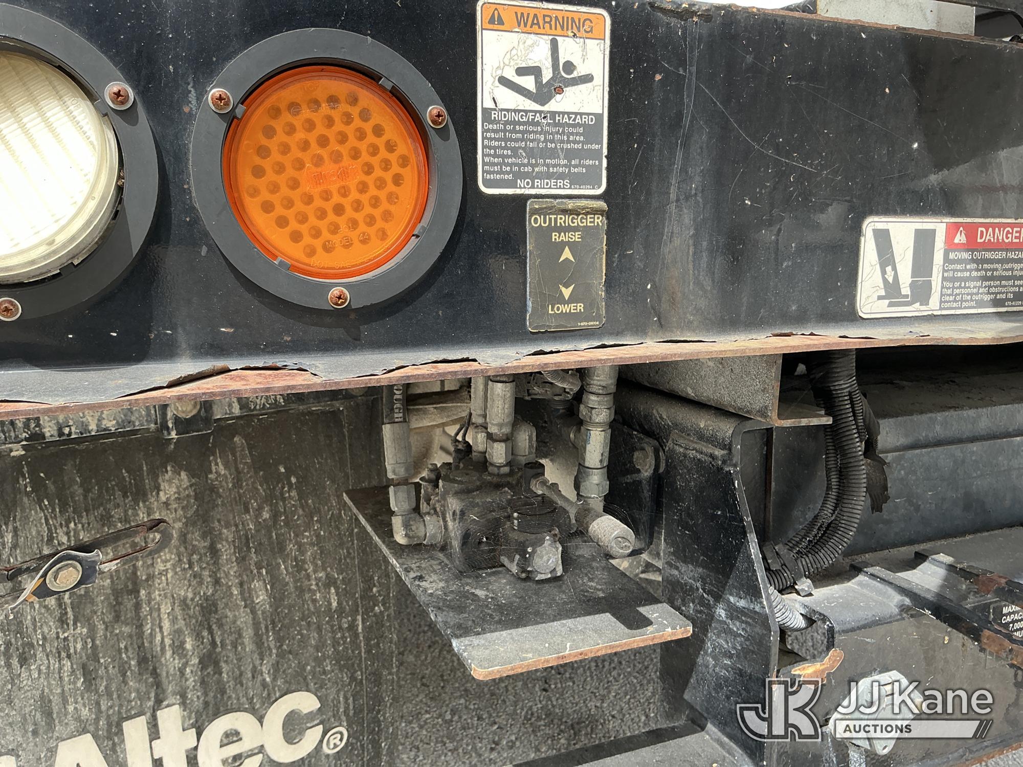 Altec AT37G, 42 ft, Articulating & Telescopic Bucket Truck s/n 0714DE16799, with single-man bucket & 2 hydraulic outriggers, mounted behind cab on 2015 Ford F550 4x4 Flatbed Truck, 6.7L diesel, Auto, A/C, (54,179 miles (unverified)) (**Dealer Only** Not Running, Condition Unknown) (Check Engine Light On, Body & Paint Damage); **Note**This item has been removed from service due to the listed safety repairs that were not completed. The safety items below must be completed by an approved OEM facility before the unit can return to service: REPLACE DAMAGED LOWER BOOM ASSEMBLY, REPLACE DAMAGED LOWER BOOM LIFT CYLINDER, COMPLETE ANSI INSPECTION, COMPLETE ANY REQUIRED TESTING AND REPAIRS AFTER INSPECTIONS ARE COMPLETED)(FL Residents Purchasing Titled Items - tax, title & registration fees will be collected at the maximum rate of $400.00 under 25,999 and $800.00 for Over 26,000 and $250.00 for Trailers - Proof of insurance is mandatory; Out of State Residents Purchasing Title Items - tax will be collected based upon your state rate.) (Bidding Restricted to Licensed Vehicle Dealers Only), This is a Titled Item*