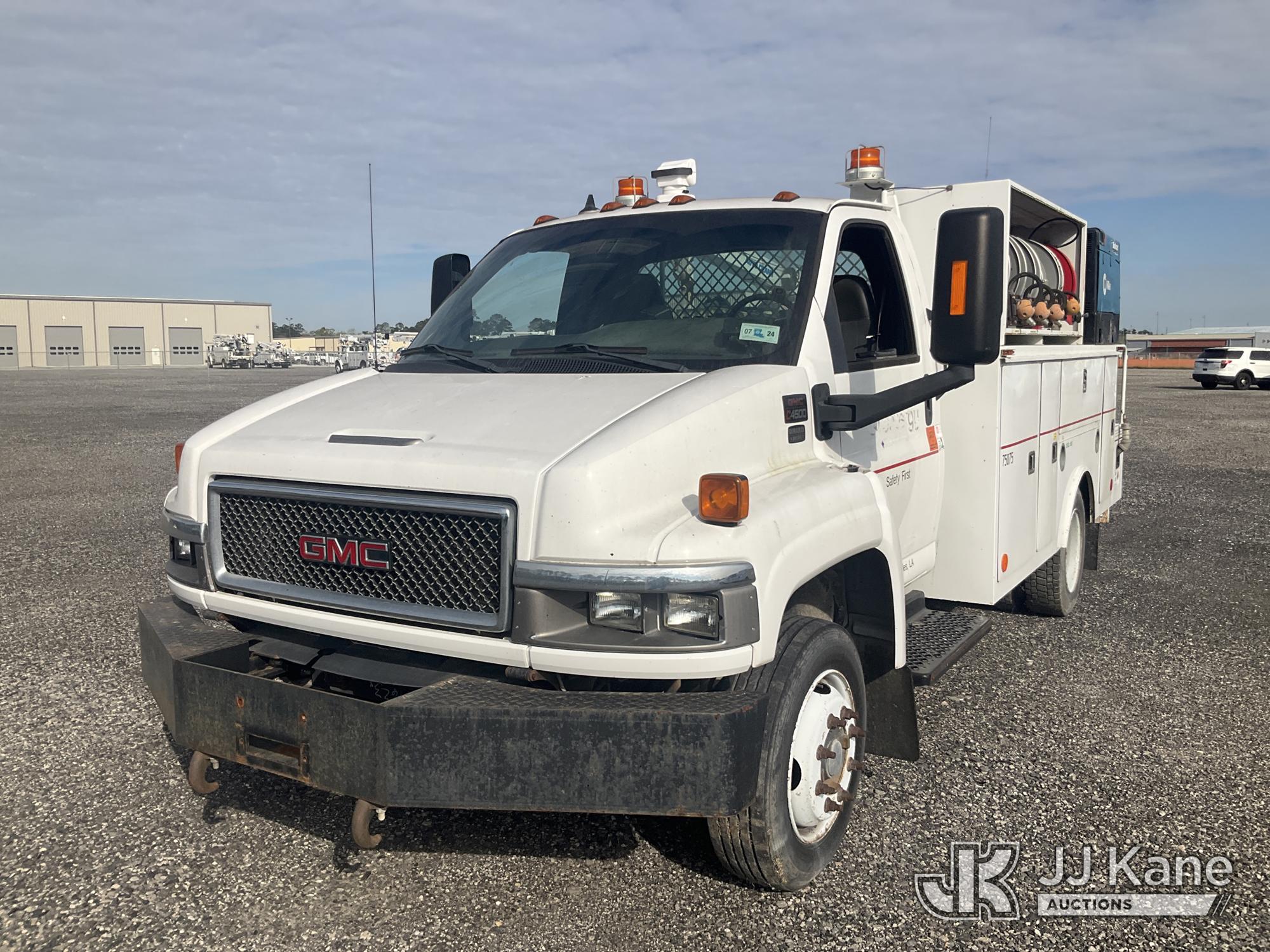 2008 GMC C4500 Mechanics Service Truck, diesel, Auto, A/C, with Auto Crane Service Crane, Generator, Crane, Air Compressor, Fuel Tank, (108,107 miles) (Runs & Moves) (Check Engine Light On, Jump To Start, Dies When Jump Pack Is Removed,) This is a Titled Item*