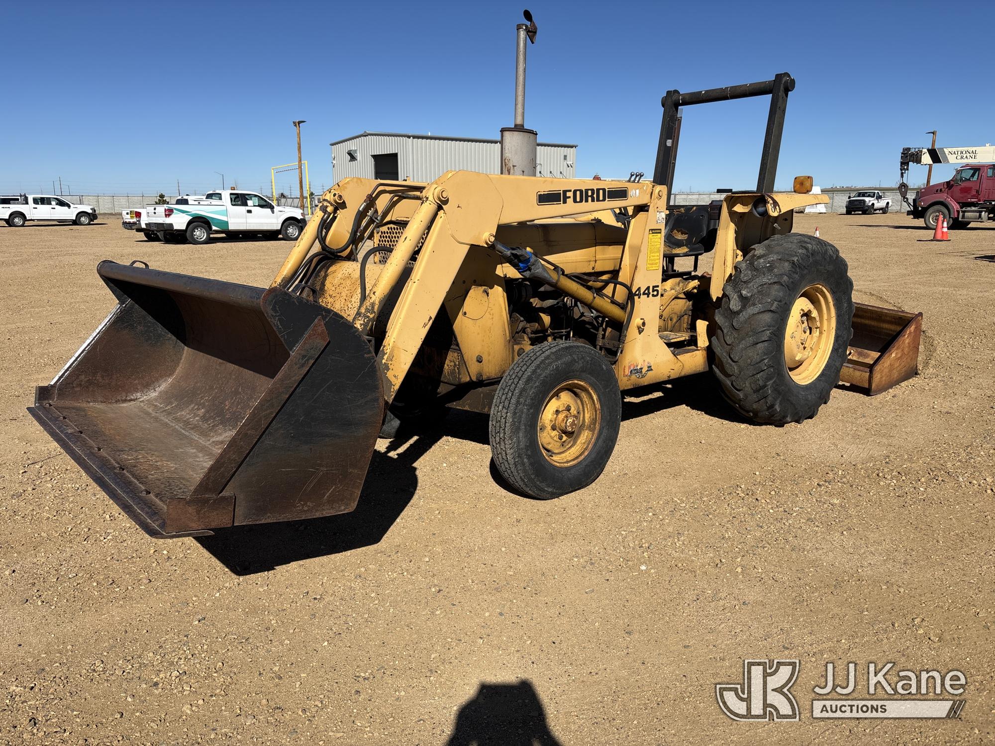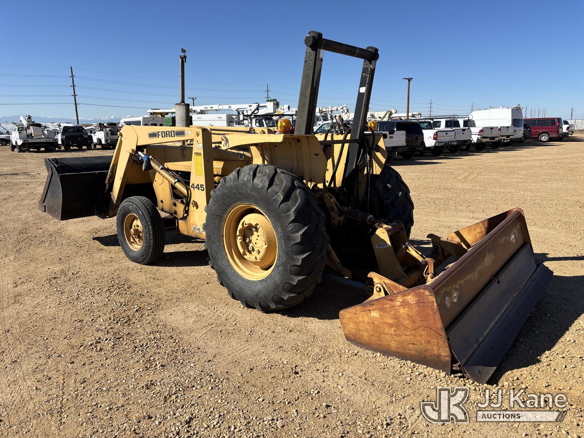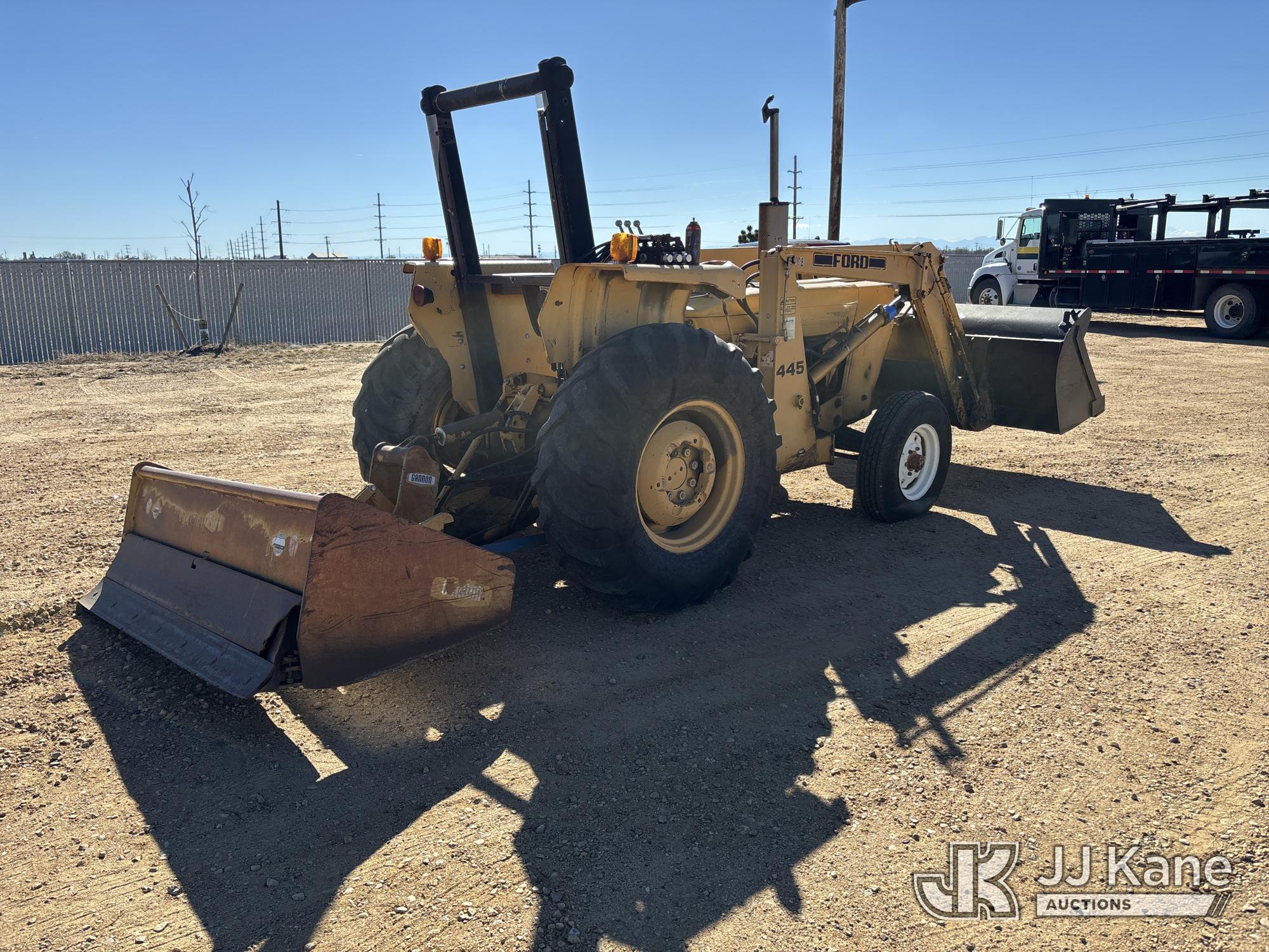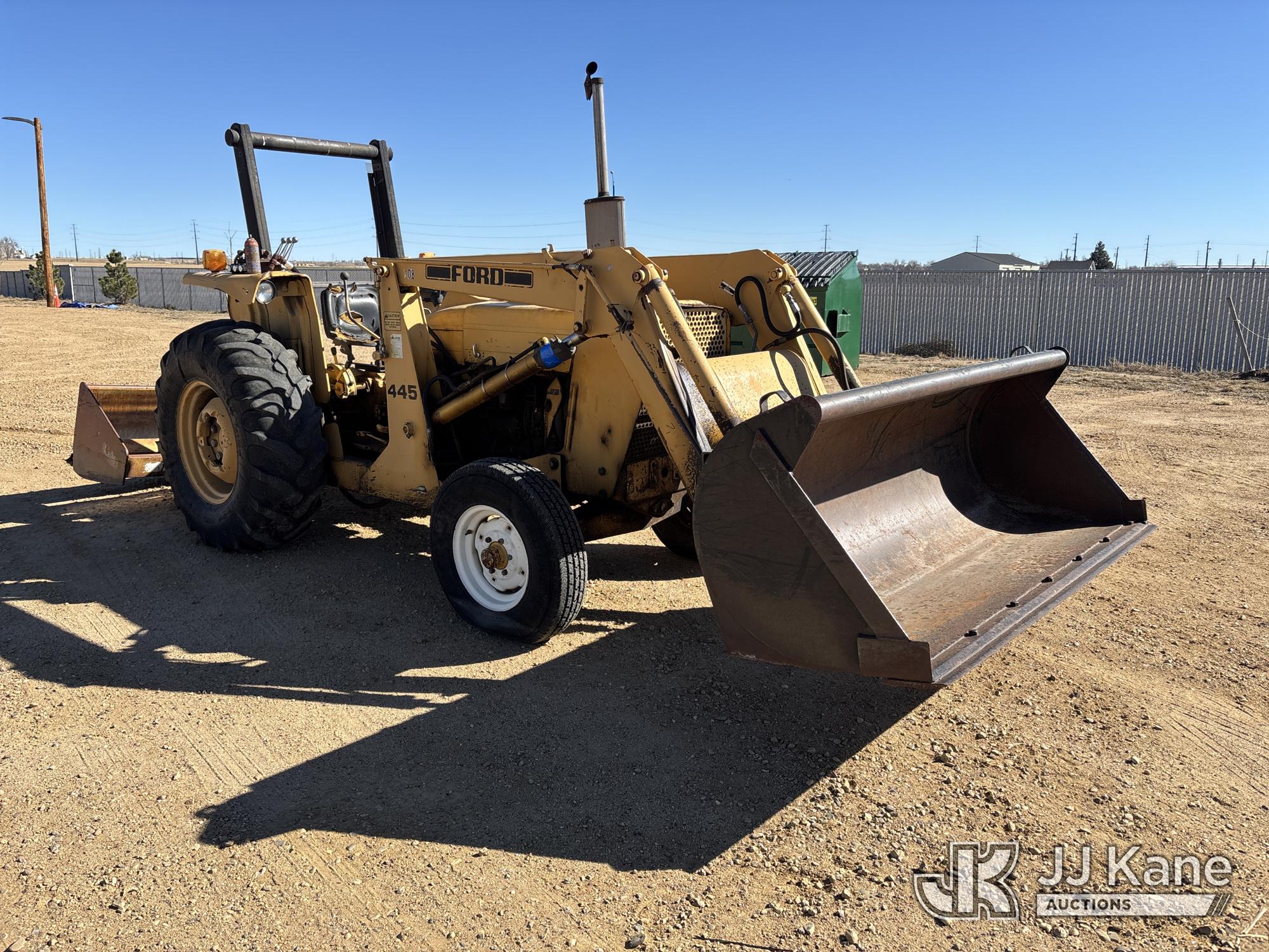 Ford 19-856 Utility Tractor Loader, s/n CL38119, diesel, manual, with GP loader bucket, box blade, ROPS posts, (Runs, Moves & Operates)(Jump to Start, Missing Left Hand Scraper Cylinder, Multiple Hyd/Oil Leaks, Right Front Flat Tire) (Reads 4,188 hours)*