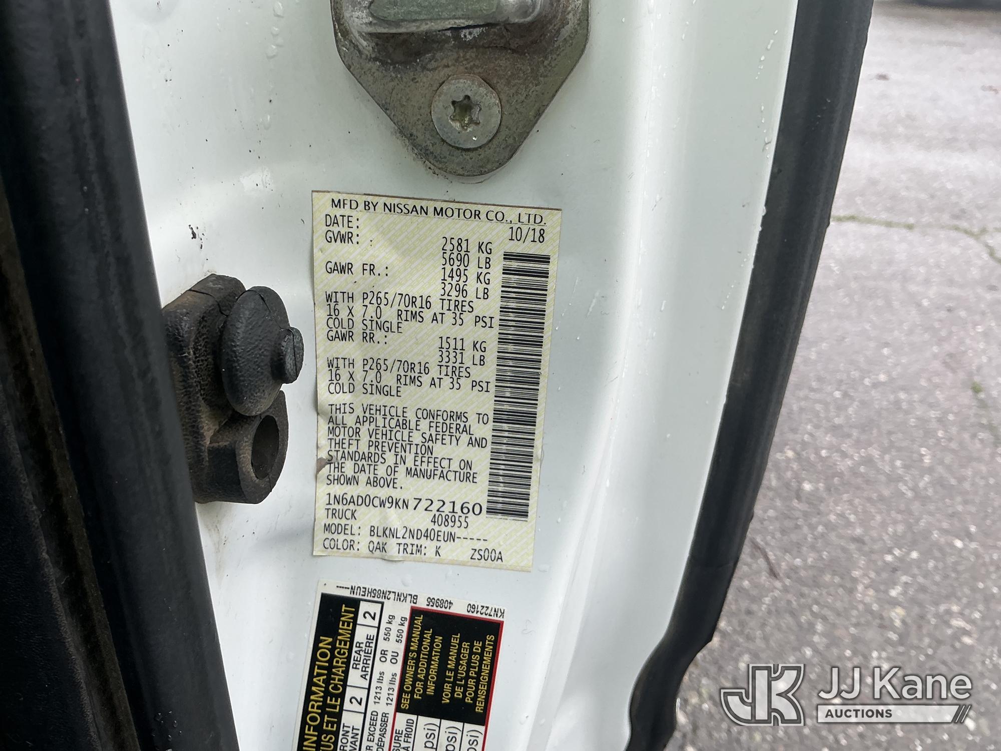 2019 Nissan Frontier Extended-Cab Pickup Truck, 4-cyl gas, 4wd, Auto, A/C, with Bed Cap, (216,426 miles) (Runs & Moves) (Check Engine Light On, Codes P0315 & P0101) (Bidding Restricted to Licensed Vehicle Dealers Only), This is a Titled Item*
