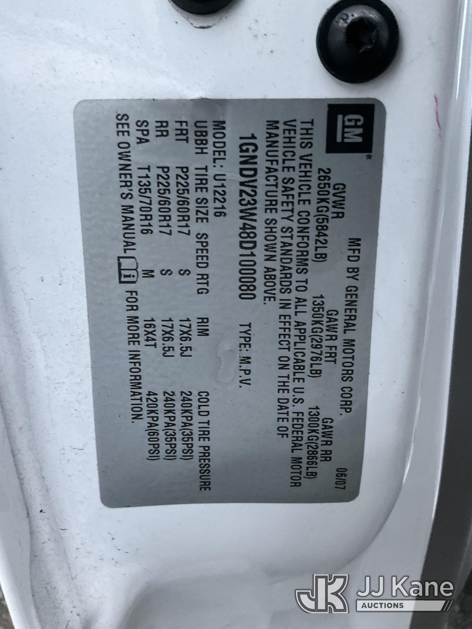 2008 Chevrolet Uplander Mini Passenger Van, s/n 1GNDV23W48D100080, 6-cyl gas, Auto, A/C, (85,862 miles) (Not Running, Conditions Unknown) (Needs Tires, Must Be Towed) (Bidding Restricted to Licensed Vehicle Dealers Only), This is a Titled Item*