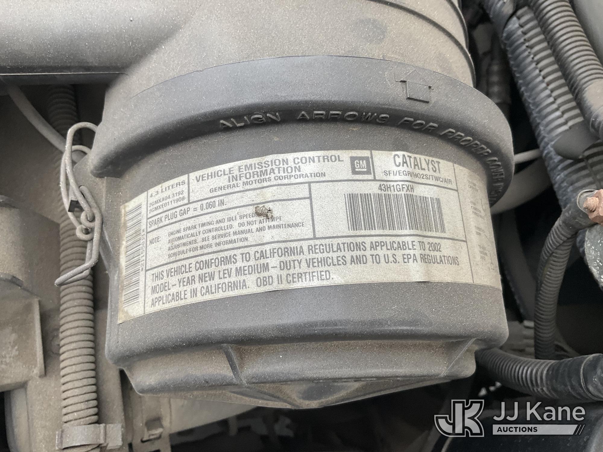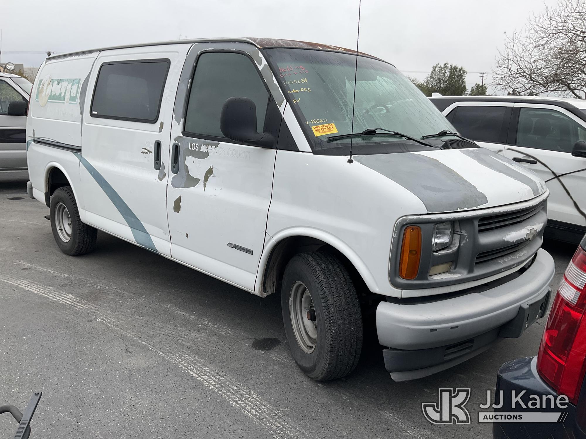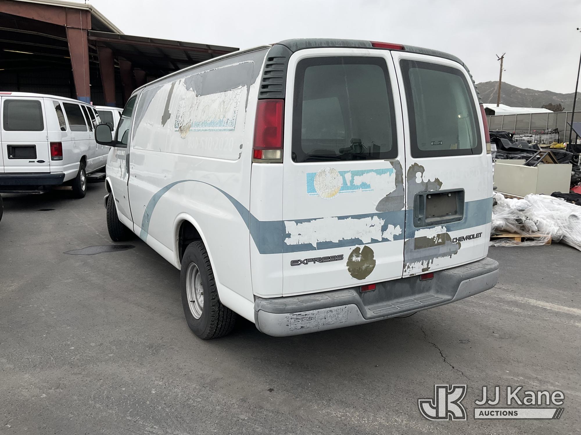 2002 Chevrolet Express 1500 Cargo Van, s/n 1GCFG15W121155811, 6-cyl gas, Auto, A/C, (Exempt from Odometer Disclosure - Reads 34,311 miles) (Runs & Moves) (Paint Damage, No EO#, Unable to Confirm Correct Catalytic Converter) (Bidding Restricted to Licensed Vehicle Dealers Only), This is a Titled Item*