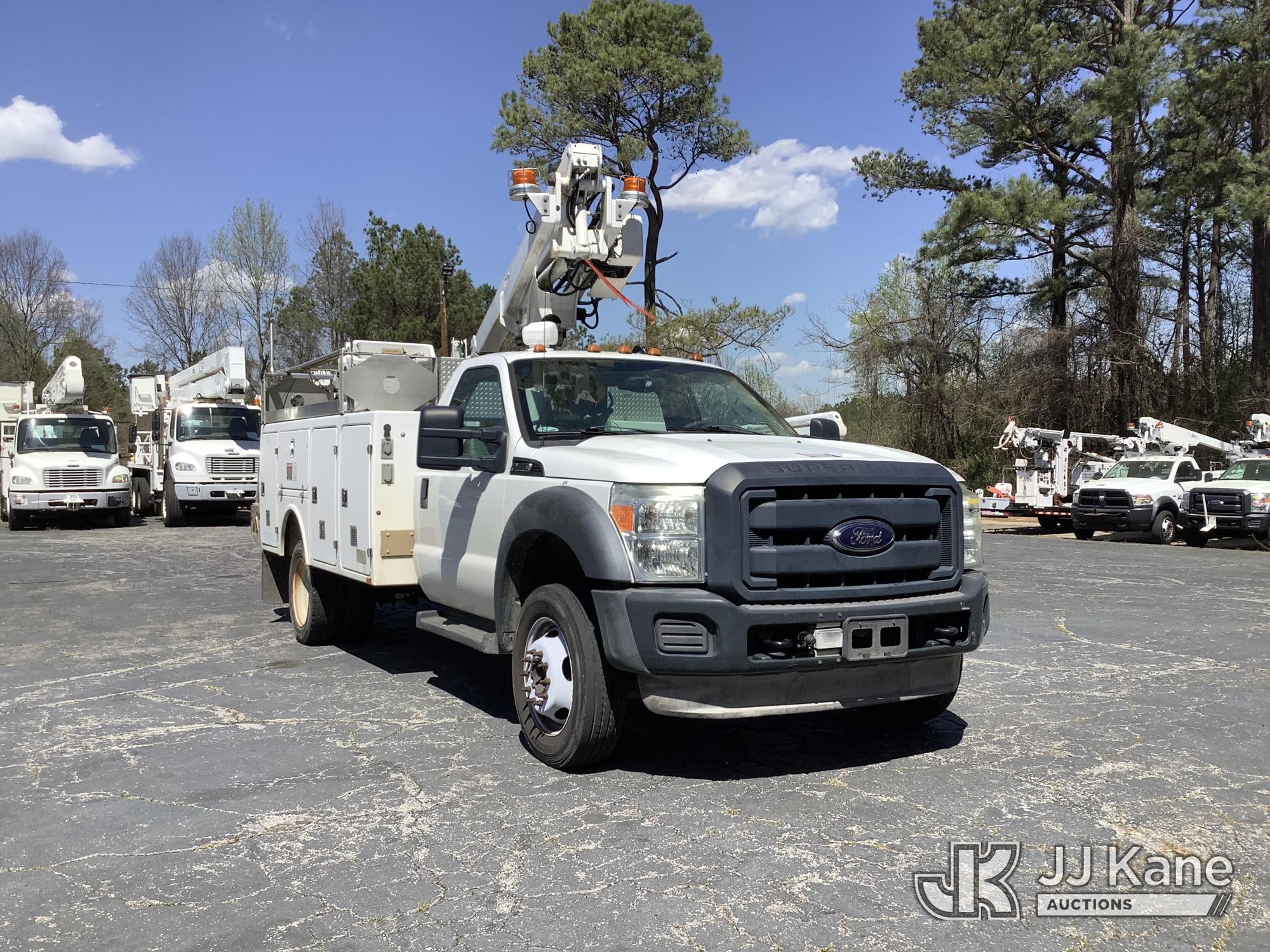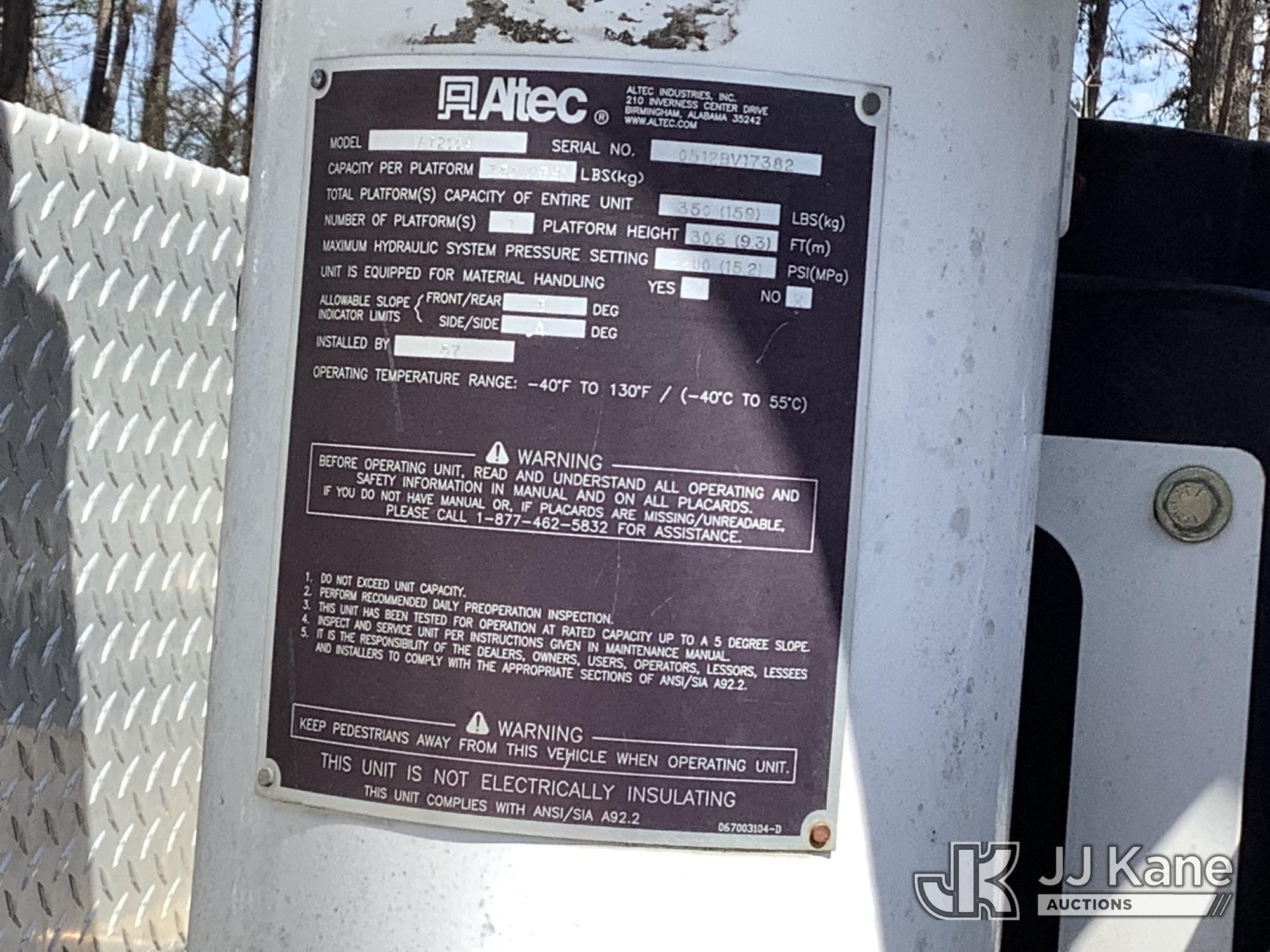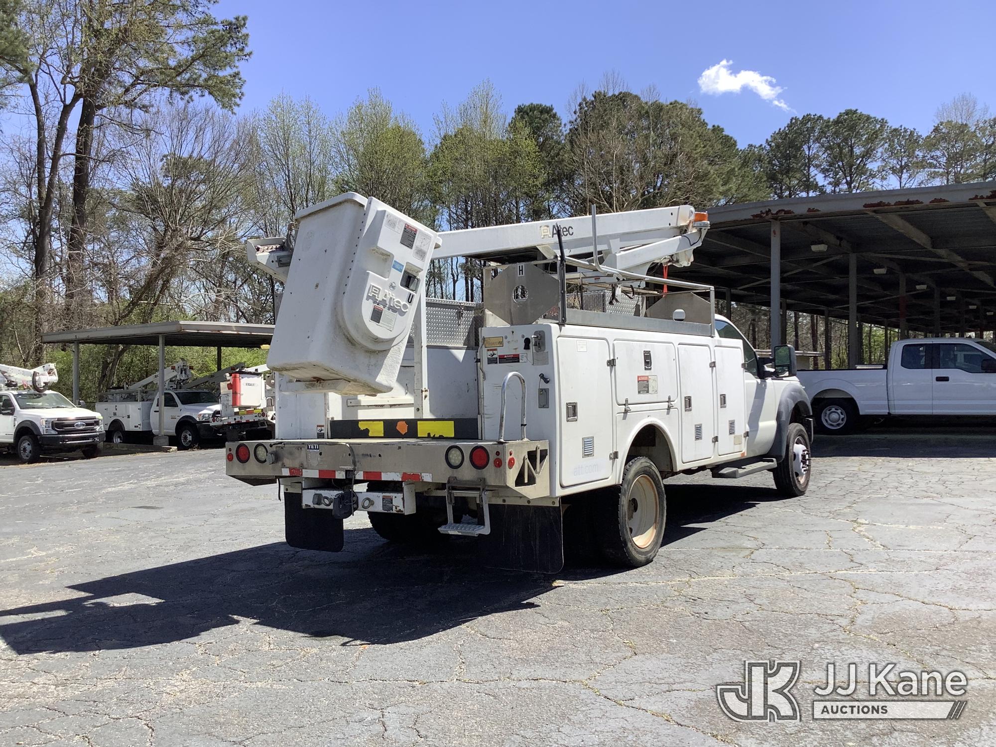 Altec AT200-A, 35 ft, Articulating & Telescopic Non-Insulated Bucket Truck s/n 0512BV17382, with Single Man Bucket, mounted behind cab on 2012 Ford F-450 SD Service Truck, 10-cyl gas, Auto, A/C, (140,186 miles) (Runs, Moves & Upper Condition Unknown) (Missing Generator, Minor Body Damage, PTO Will Not Engage) This is a Titled Item*