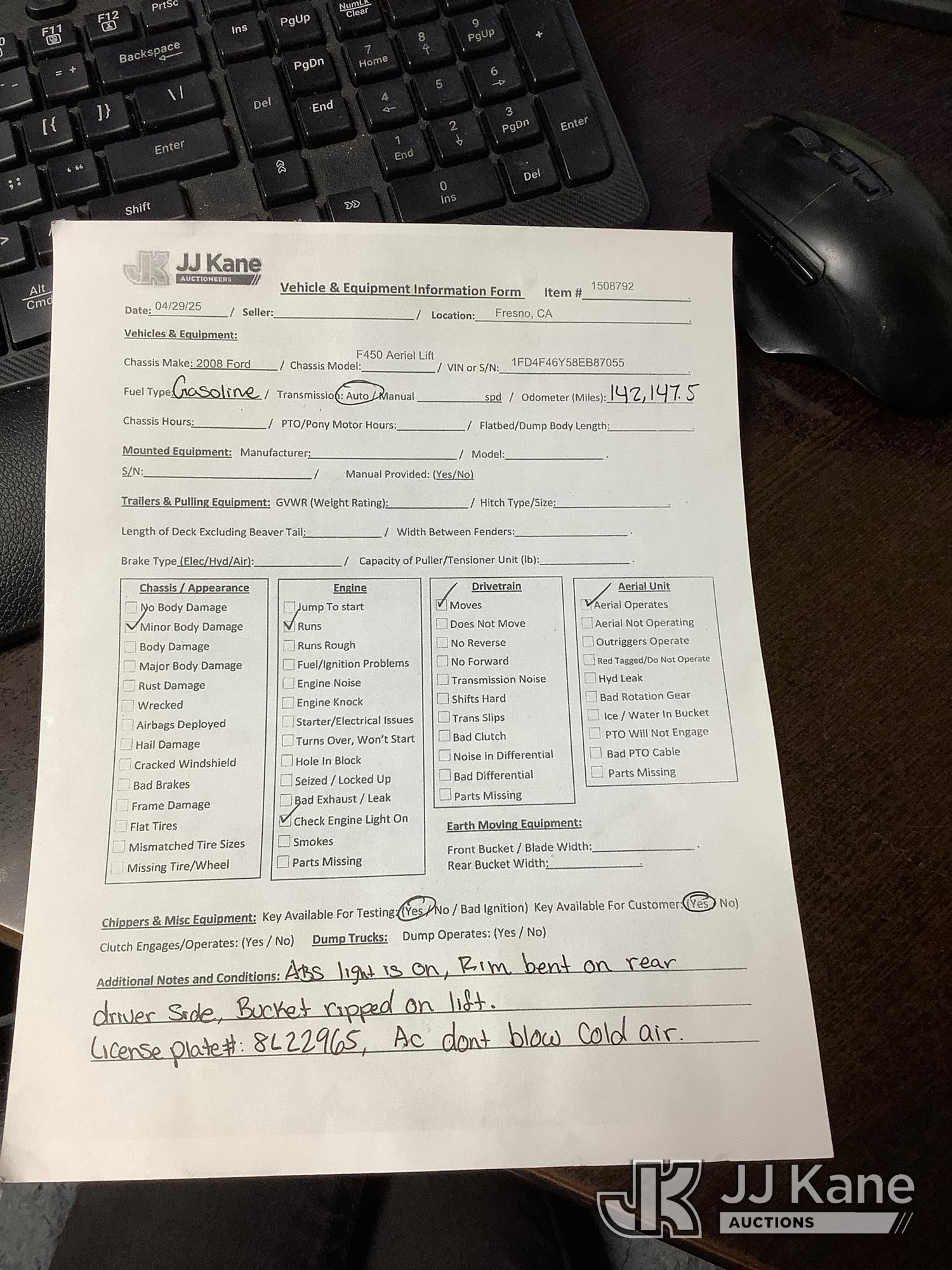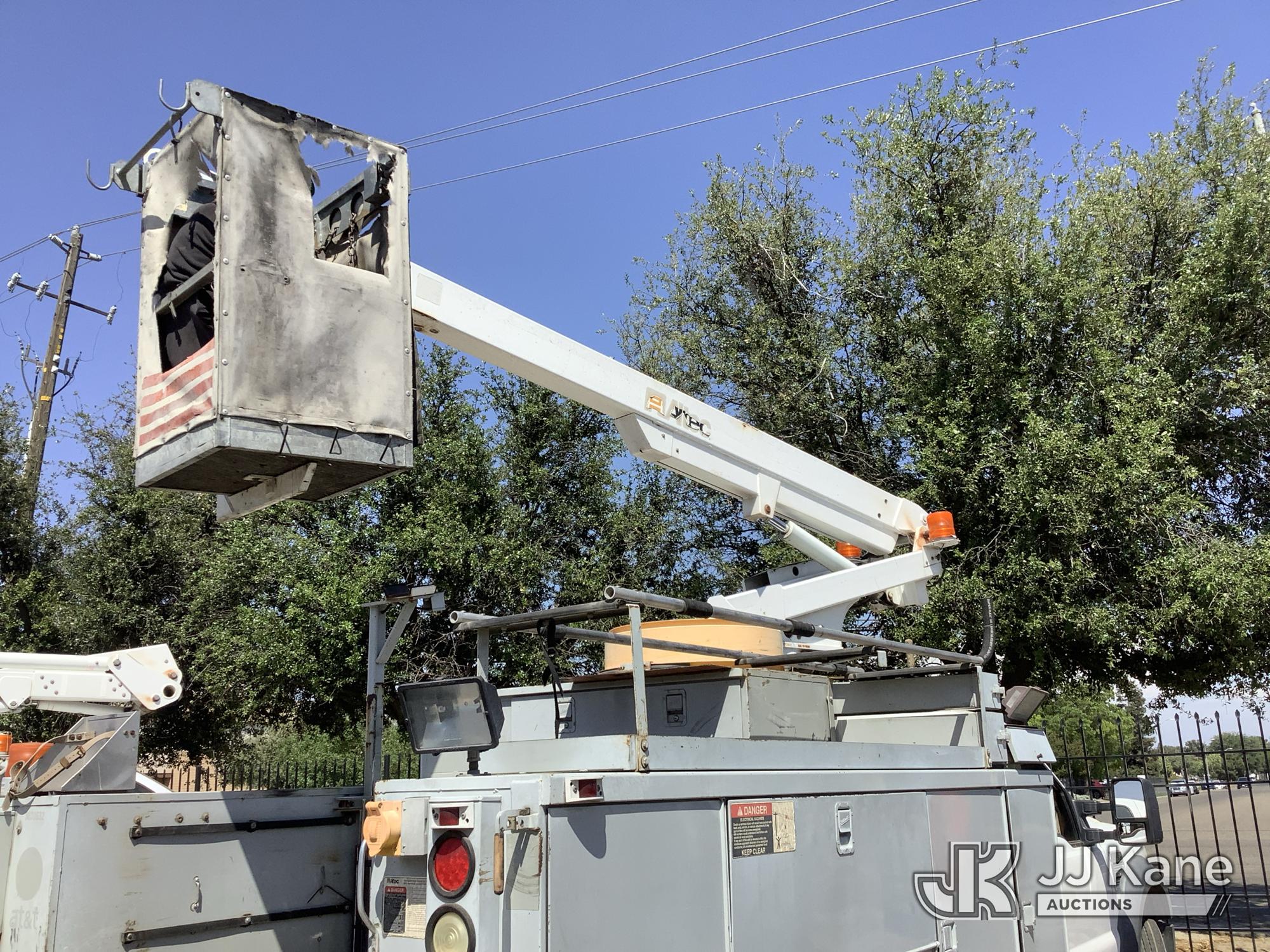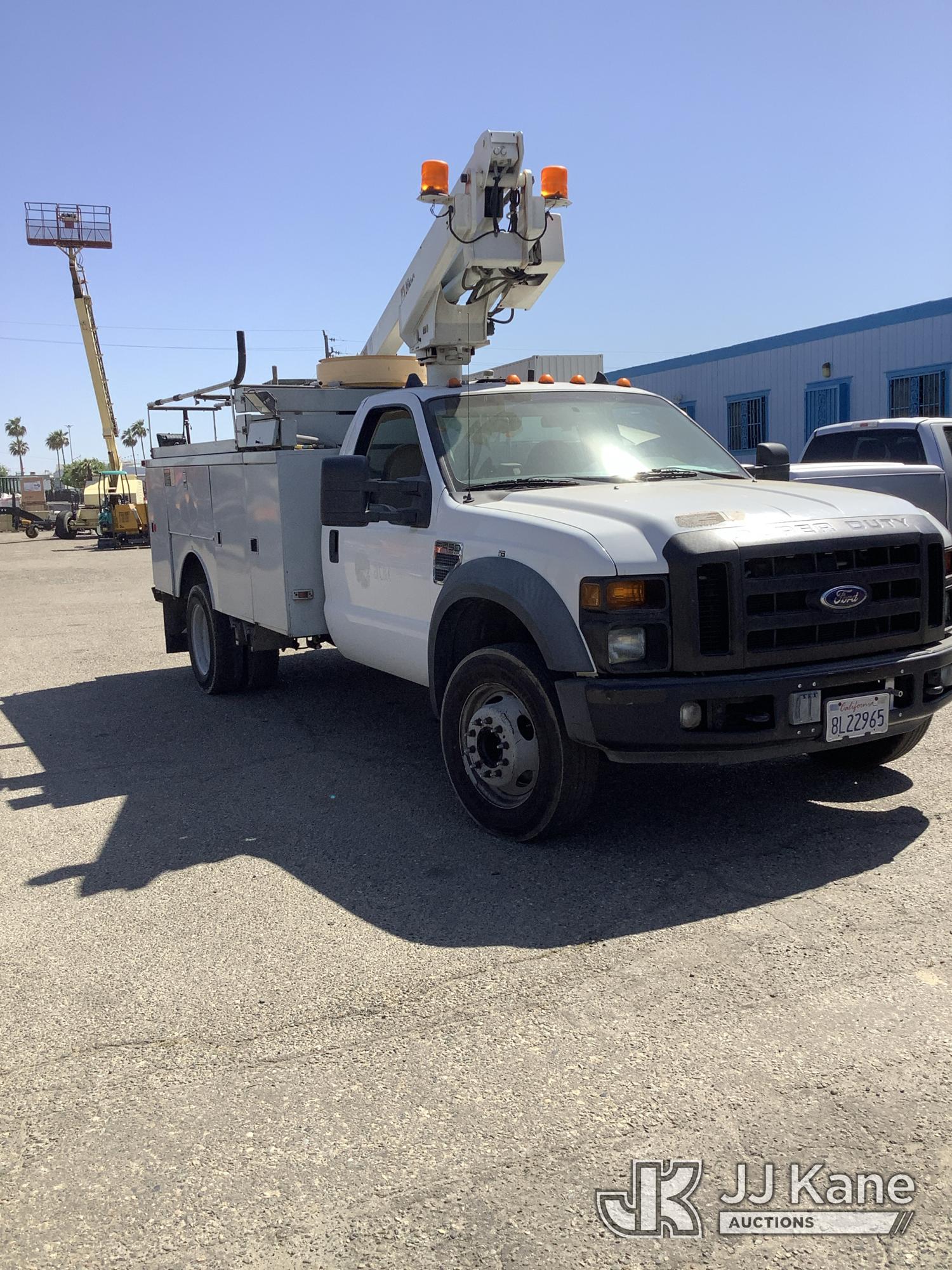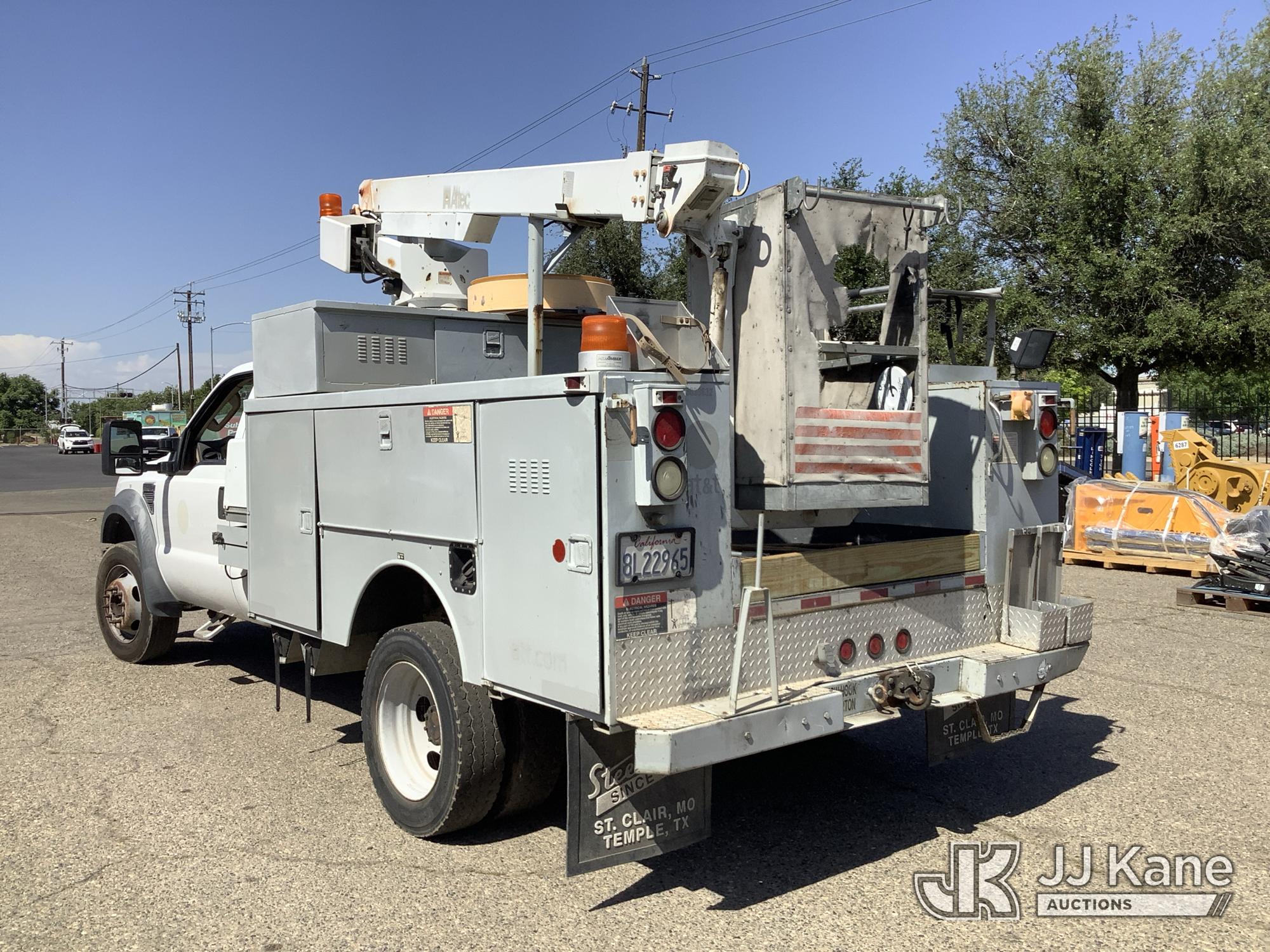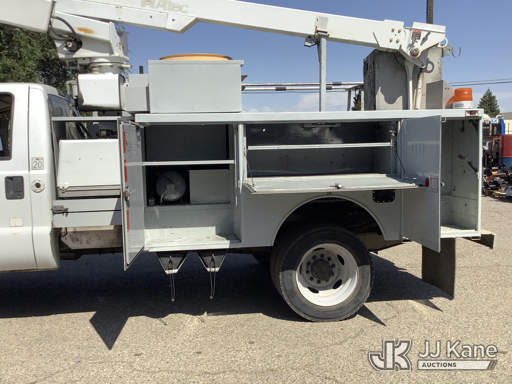 Altec AT200A, 35 ft, Telescopic Non-Insulated Bucket Truck s/n 0807BV13091, with single-man platform(non-insulated), mounted behind cab on 2008 Ford F-450 SD Service Truck, 10-cyl gas, 4X2, Auto, A/C, (142,147 miles) (Runs, Moves & Upper Operates) (Check Engine Light On, Minor Body Damage, ABS Light On, Rim Bent On Rear Drivers Side, Bucket Damaged, A/C Does Not Blow Cold Air) This is a Titled Item*