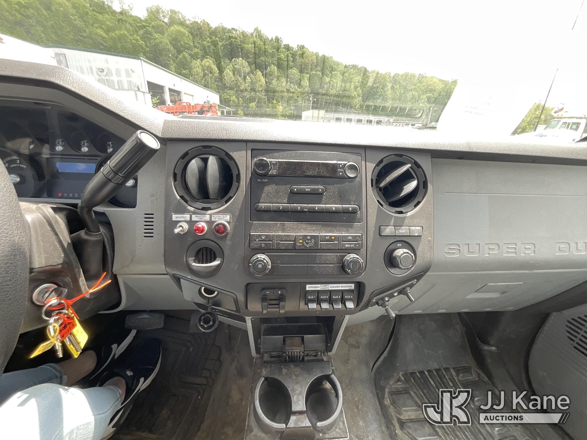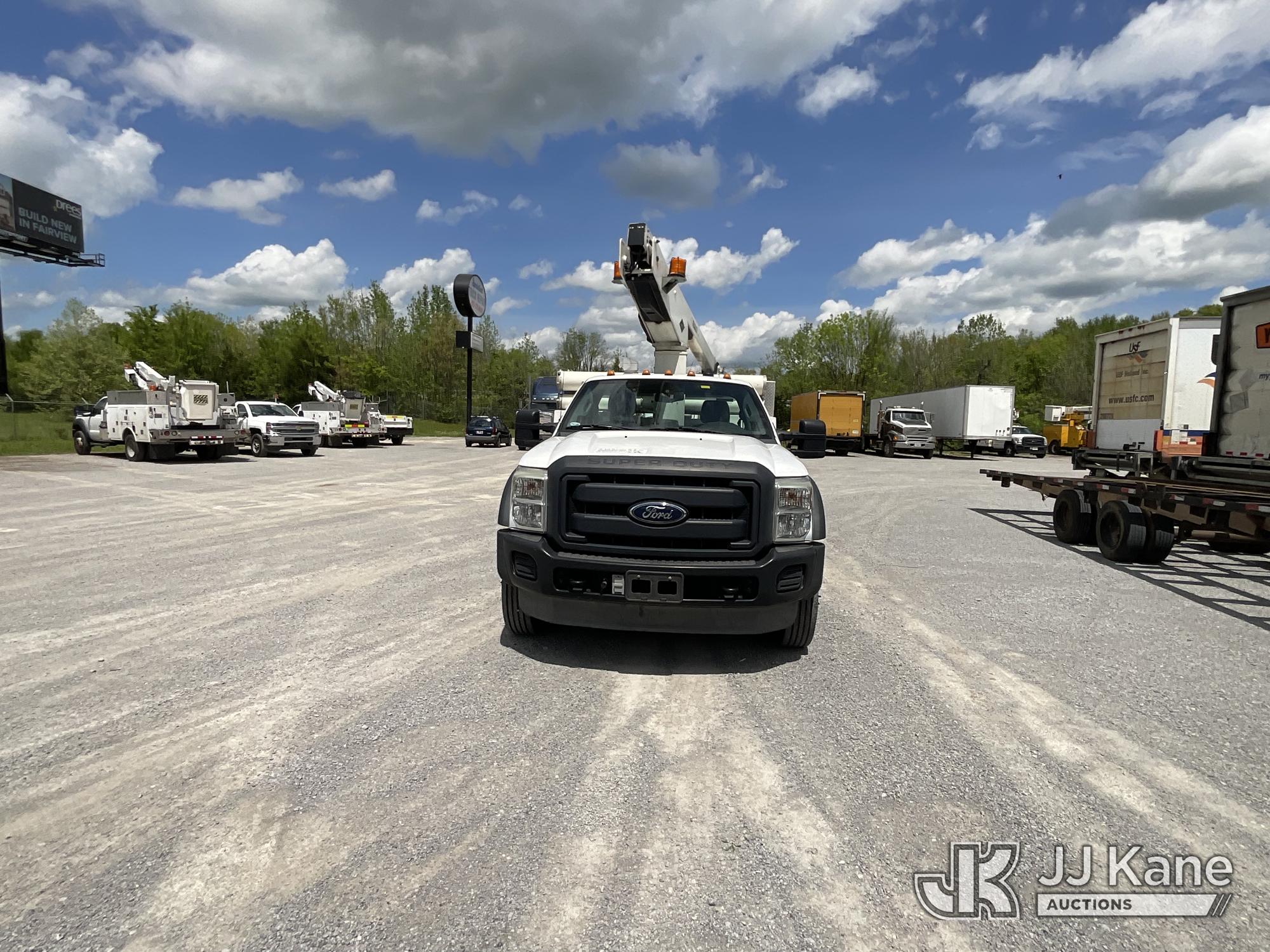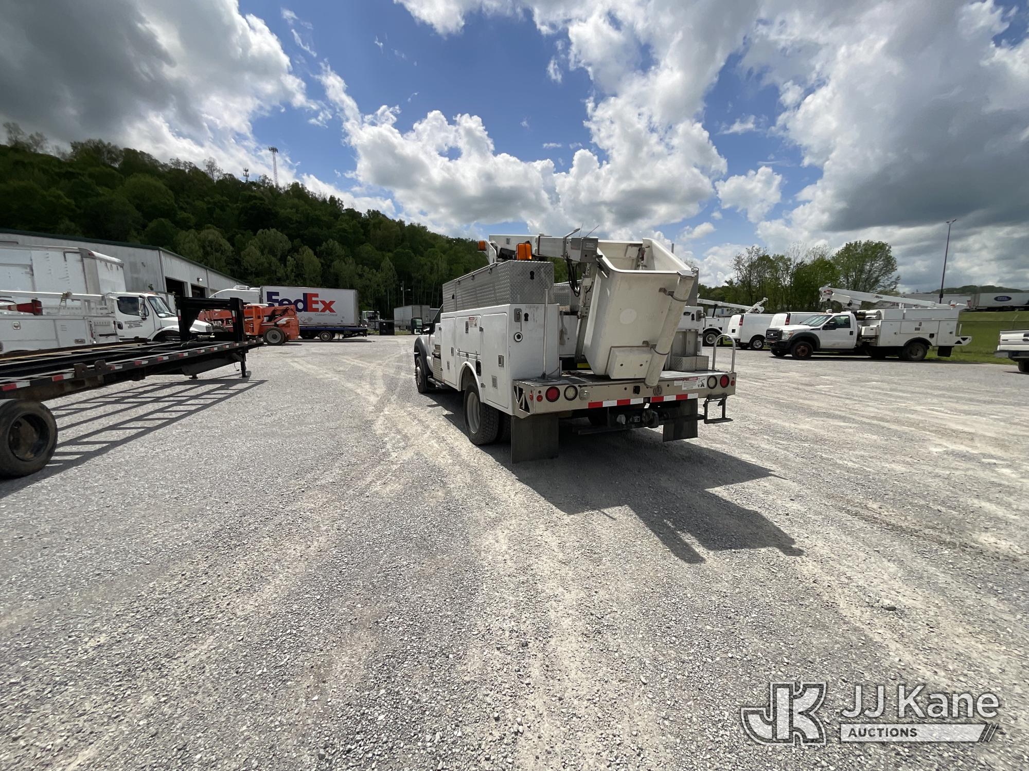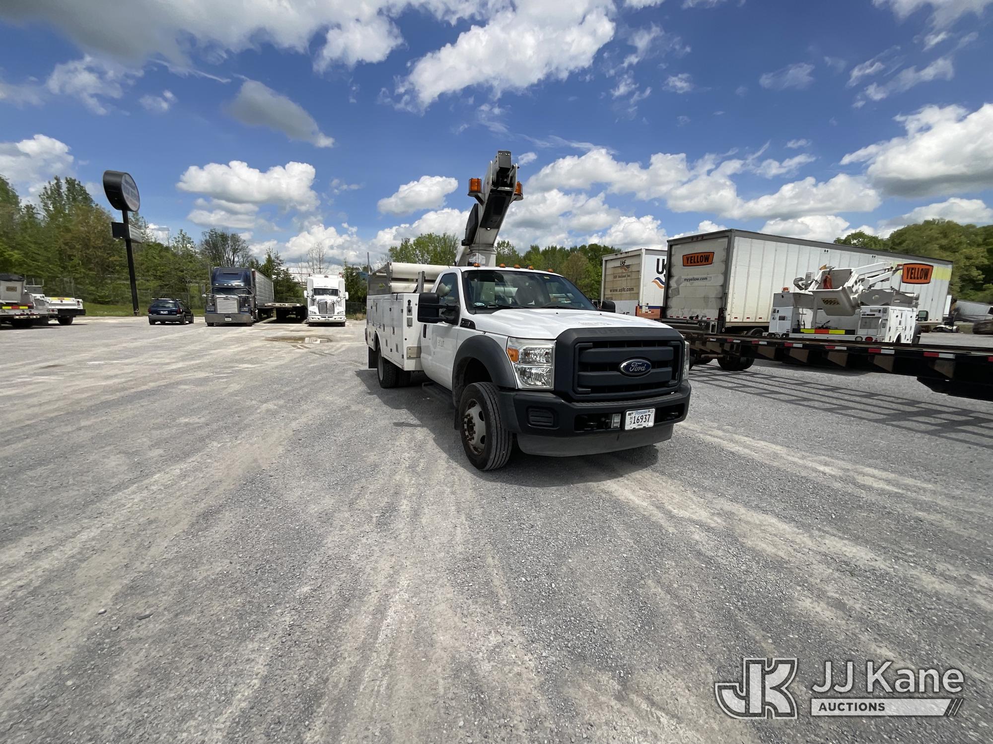 Versalift TEL29N-03, 34 ft, Telescopic Non-Insulated Bucket Truck s/n AG120256, with single-man bucket, mounted behind cab on 2012 Ford F450 Service Truck, 10-cyl gas, Auto, A/C, with Cummins/Onan generator, (107,745 miles) Element Lease Return (Runs, Moves & Upper Operates) (Body Damage) This is a Titled Item*