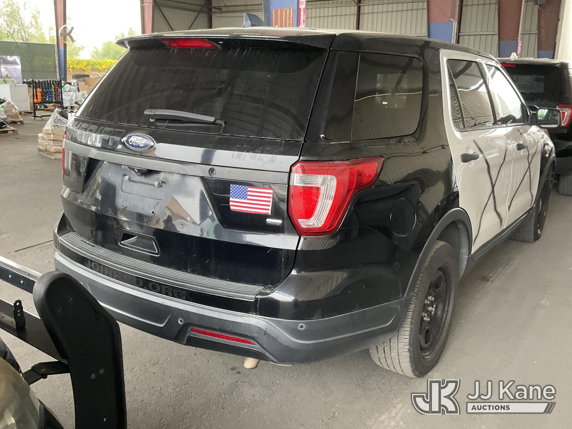 2018 Ford Explorer AWD Police Interceptor 4-Door Sport Utility Vehicle, s/n 1FM5K8AR0JGA37212, 6-cyl, gas, Auto, A/C, with spotlight, (133,720 miles) (Runs & Moves) (Interior Stripped Of Parts, Body Damage, Open Recall, Remedy Not Yet Available) (Bidding Restricted to Licensed Vehicle Dealers Only), This is a Titled Item*