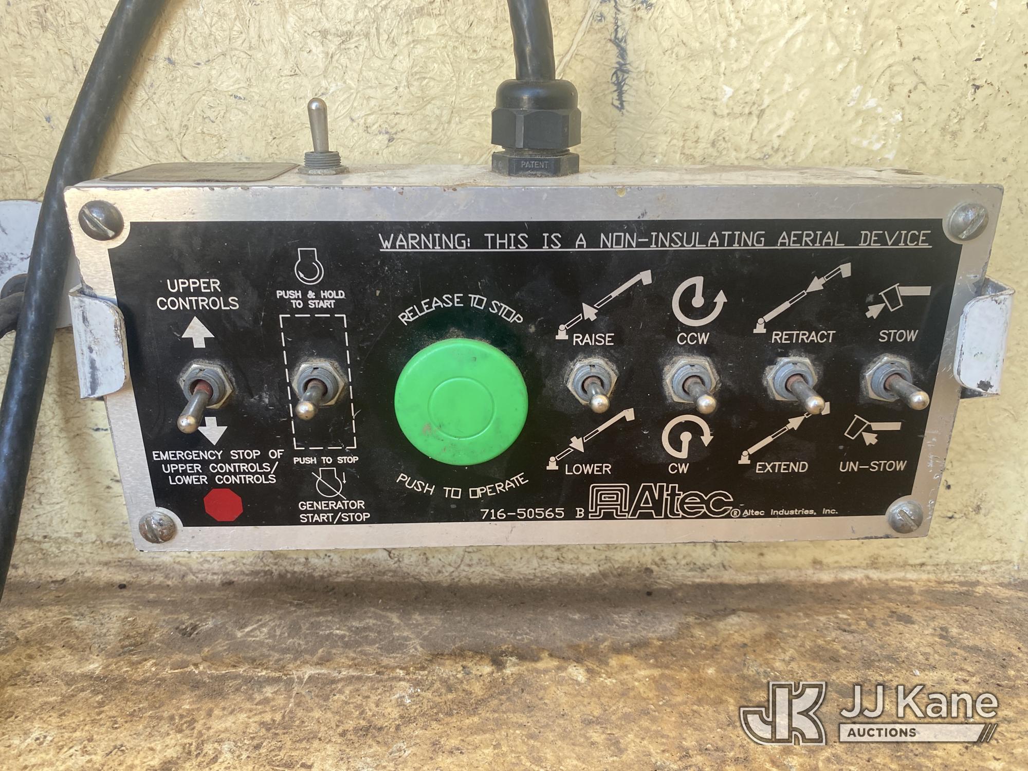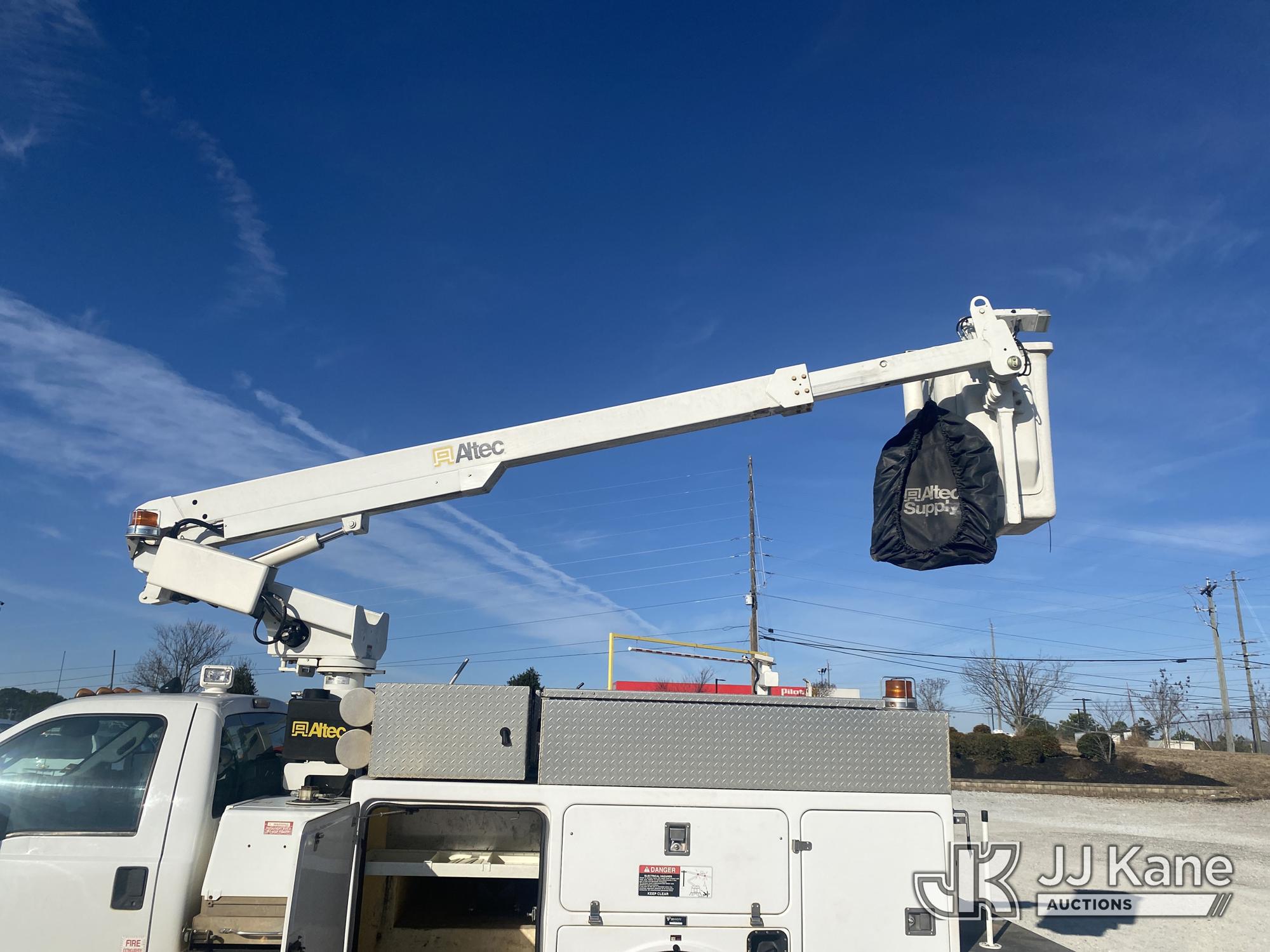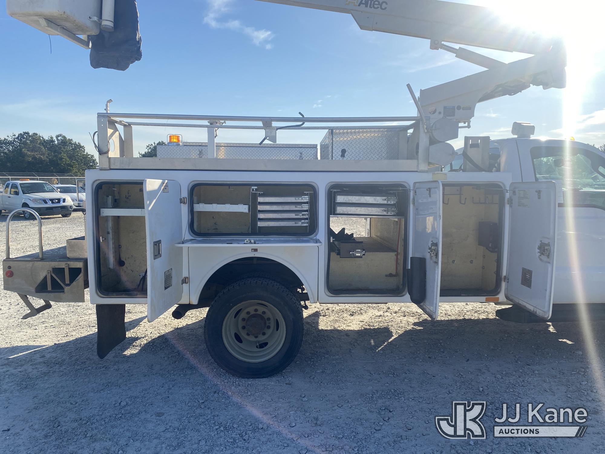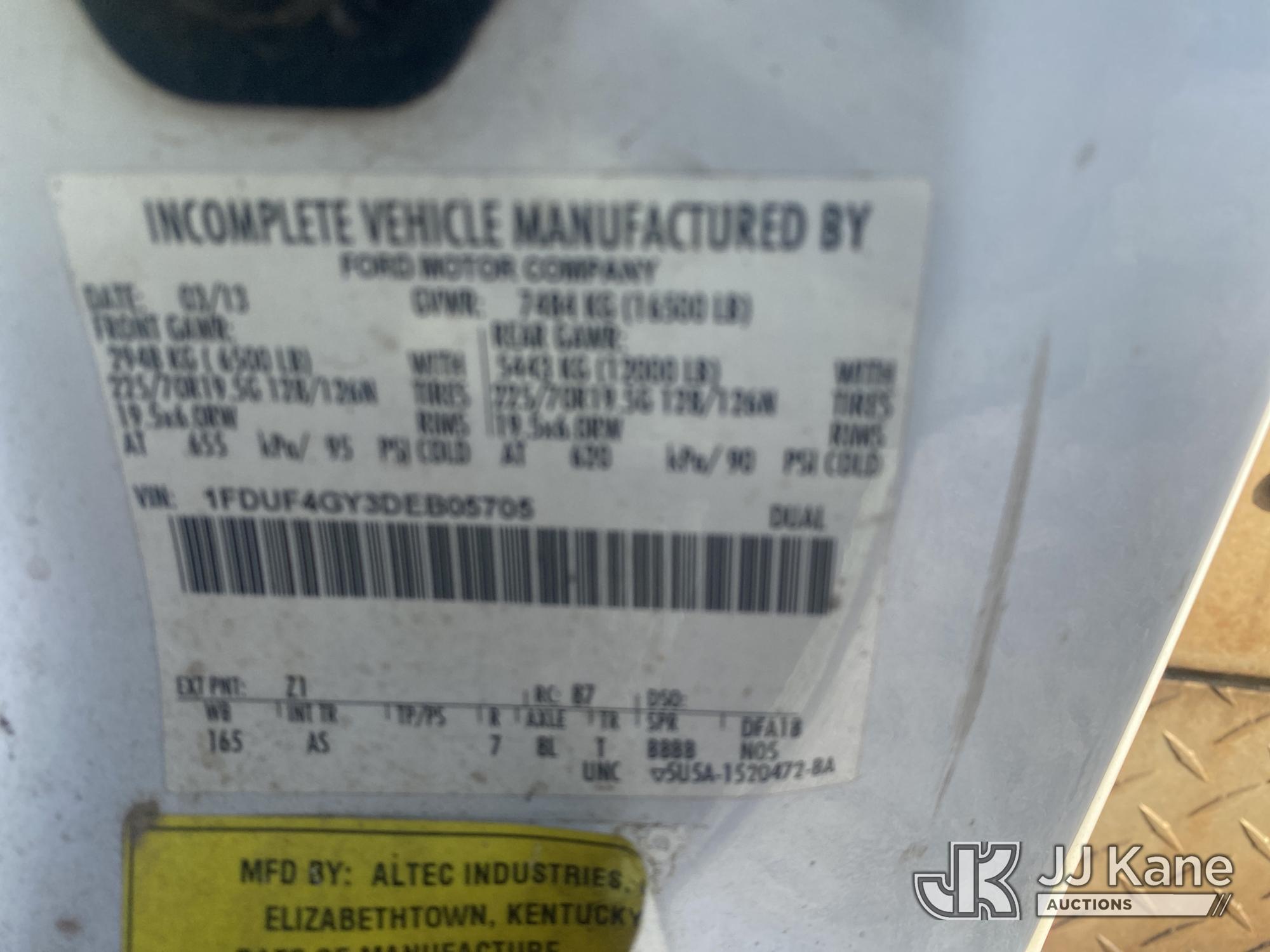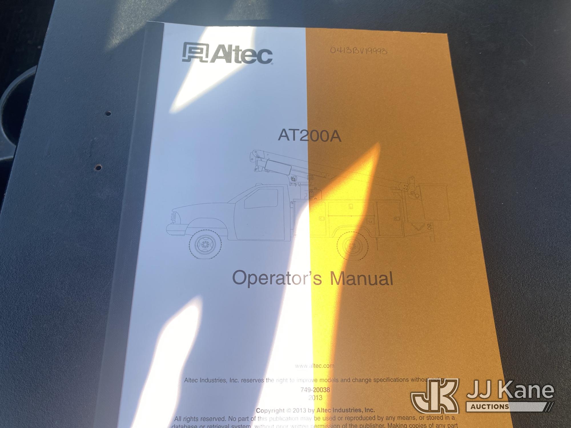 Altec AT200-A, 35 ft, Telescopic Non-Insulated Bucket Truck s/n 0413BV19993, with single-man bucket, mounted behind cab on 2013 Ford F450 Service Truck, 10-cyl gas, Auto, A/C, with Onan generator, (147,680 miles) (Runs, Moves & Upper Operates) (Jump To Start, Missing Upper Data Plate, Body/Paint Damage) This is a Titled Item*