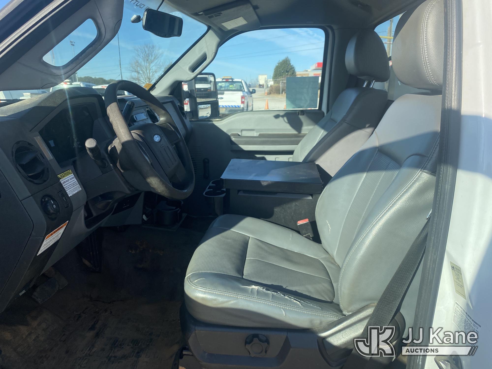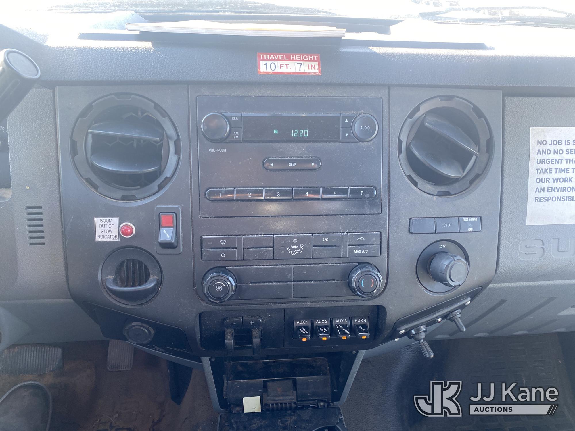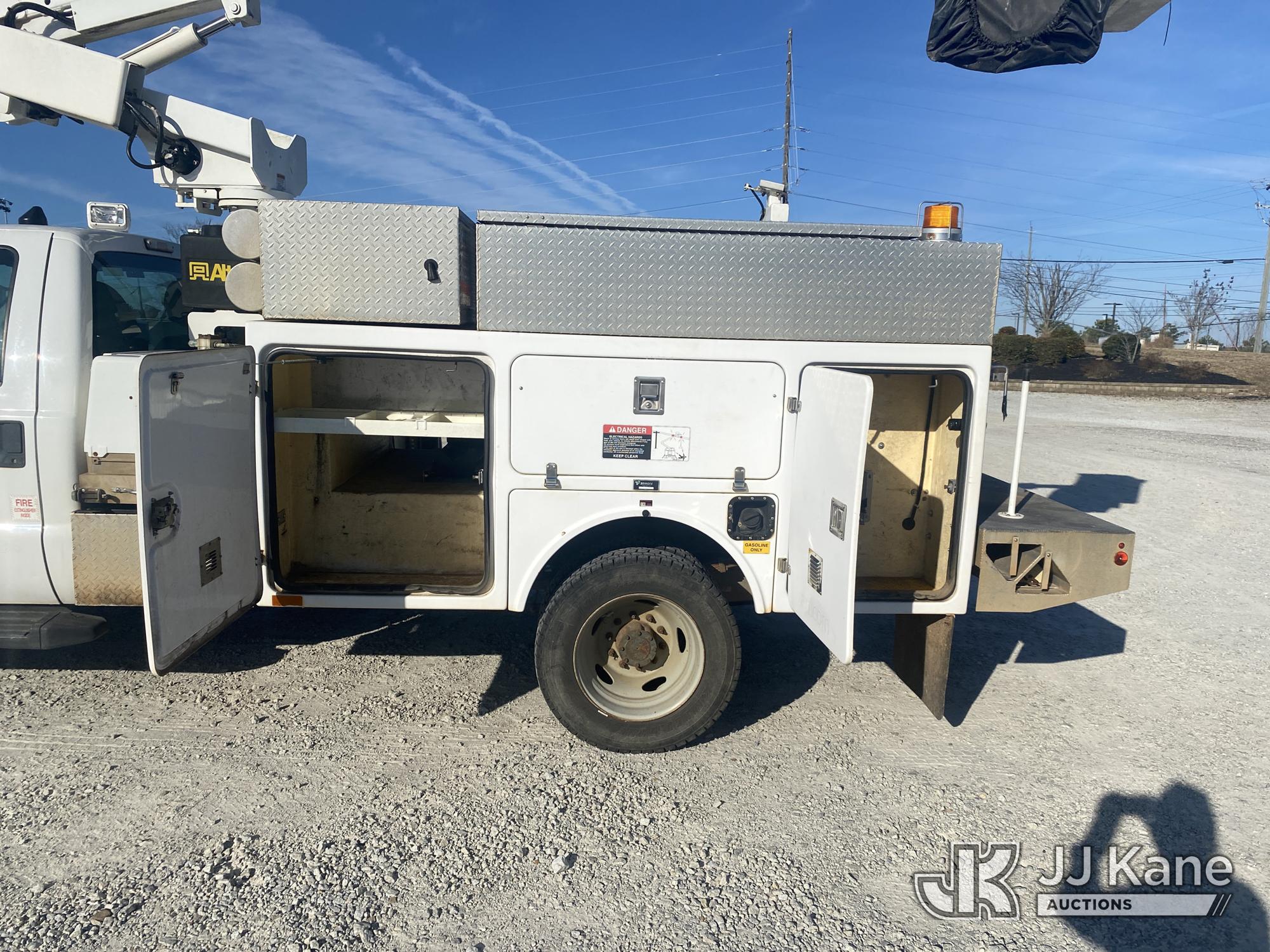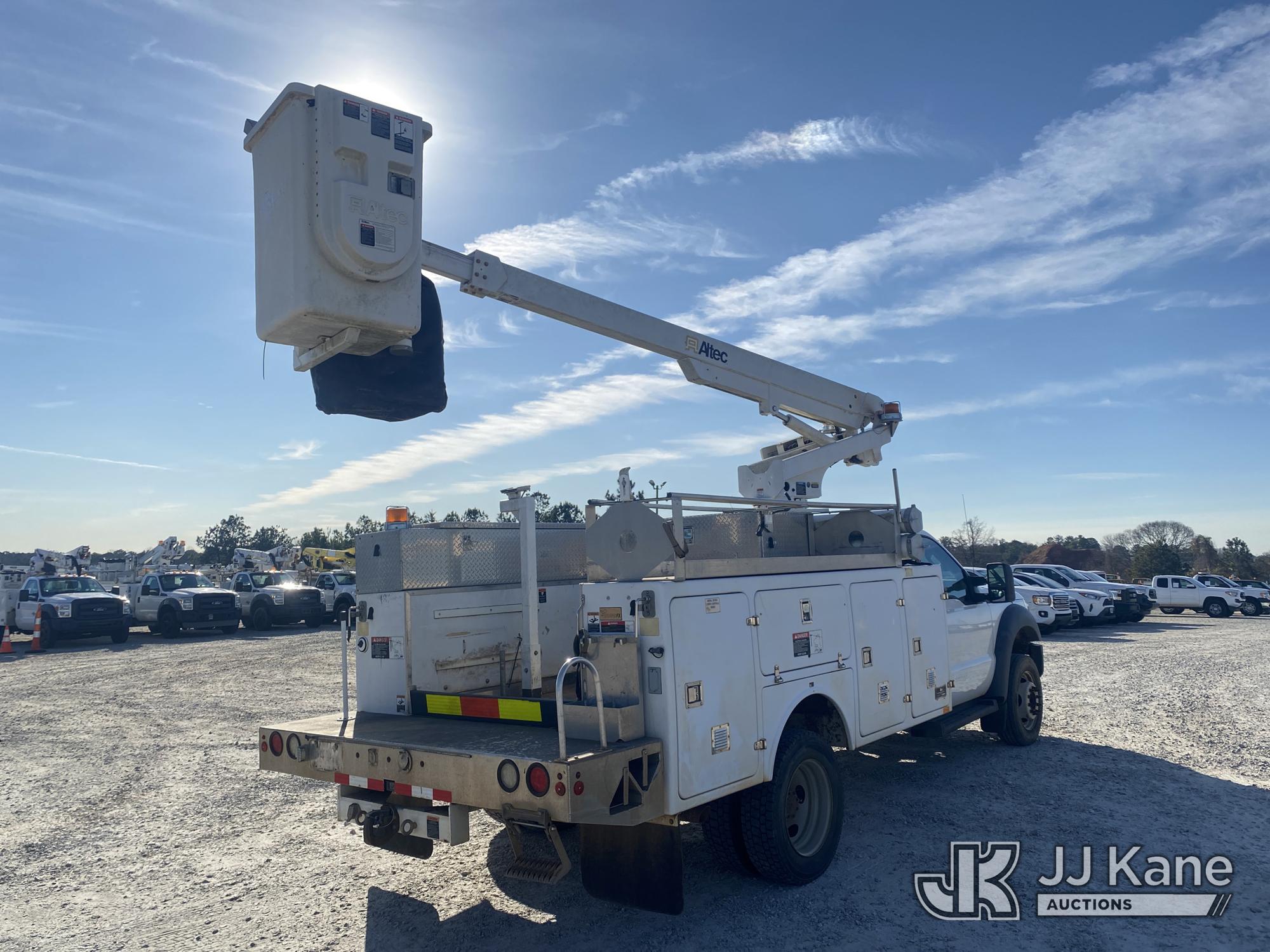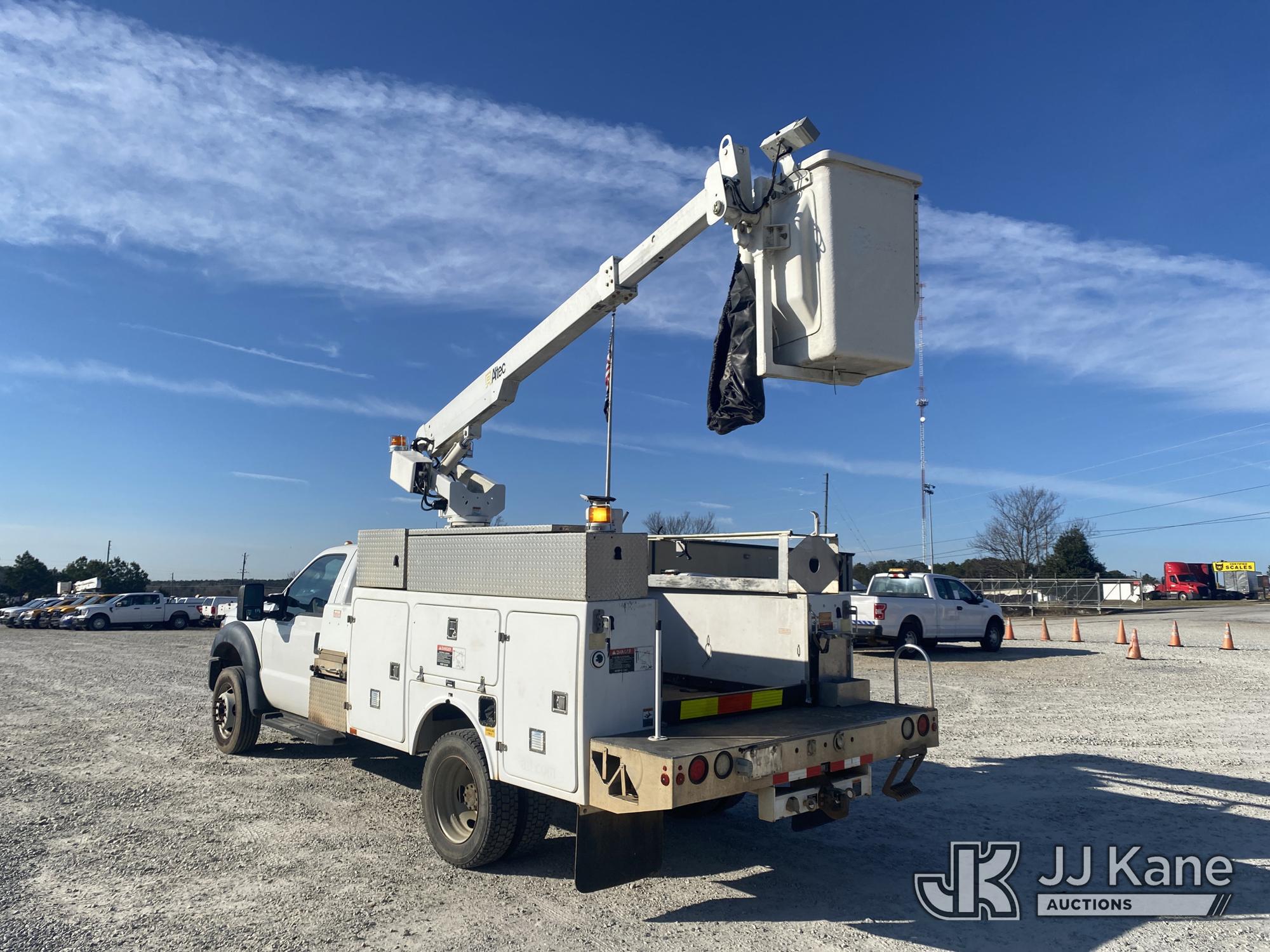 Altec AT200-A, 35 ft, Telescopic Non-Insulated Bucket Truck s/n 0413BV19993, with single-man bucket, mounted behind cab on 2013 Ford F450 Service Truck, 10-cyl gas, Auto, A/C, with Onan generator, (147,680 miles) (Runs, Moves & Upper Operates) (Jump To Start, Missing Upper Data Plate, Body/Paint Damage) This is a Titled Item*