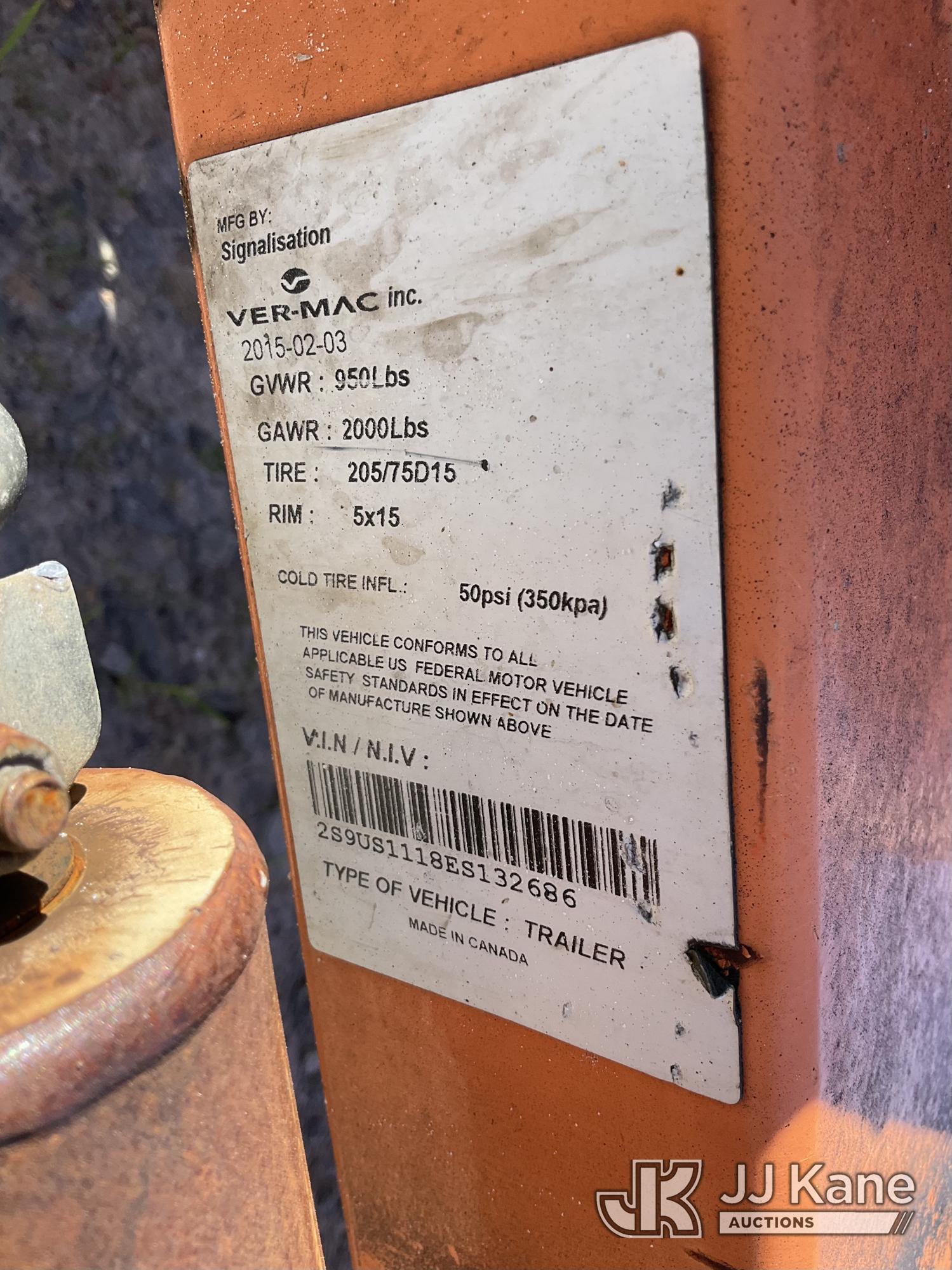 2015 VER-MAC ST-4815 Arrowboard, battery powered, with GVWR: 950 LB, (Condition Unknown, Disassembled For Transport, Wires Cut) (Damaged Tail Lights, Damaged Light Up Board) This is a Titled Item*