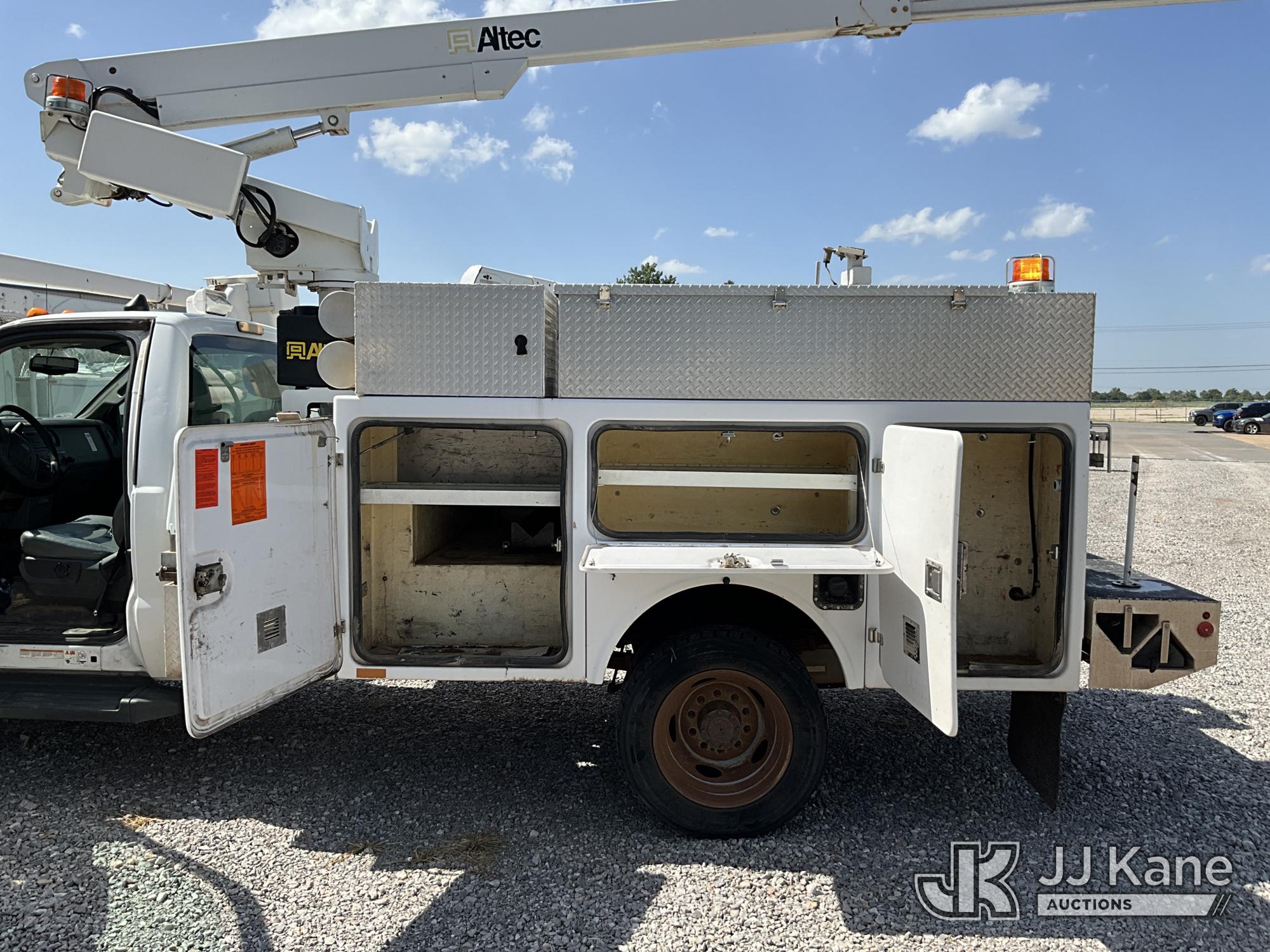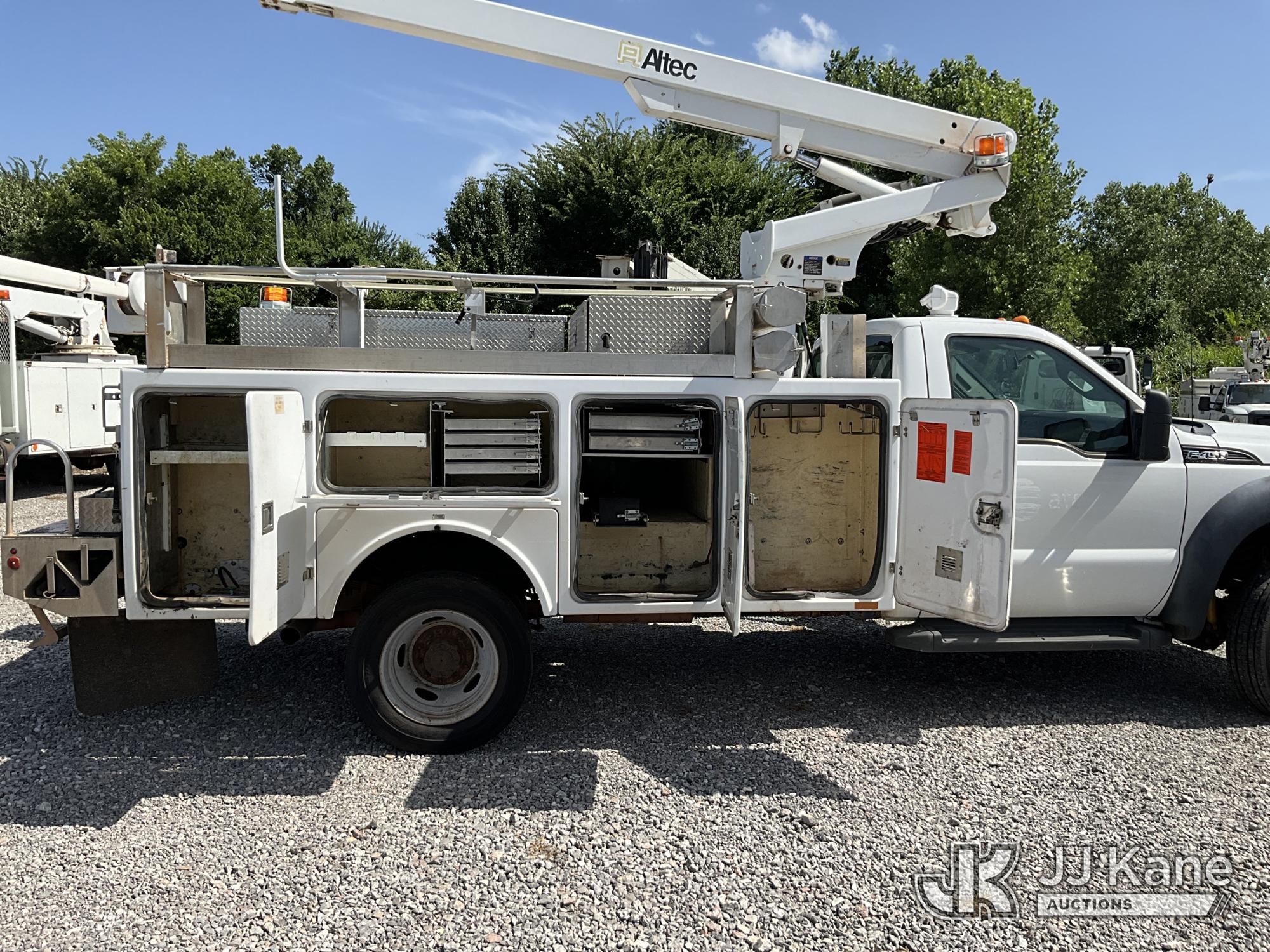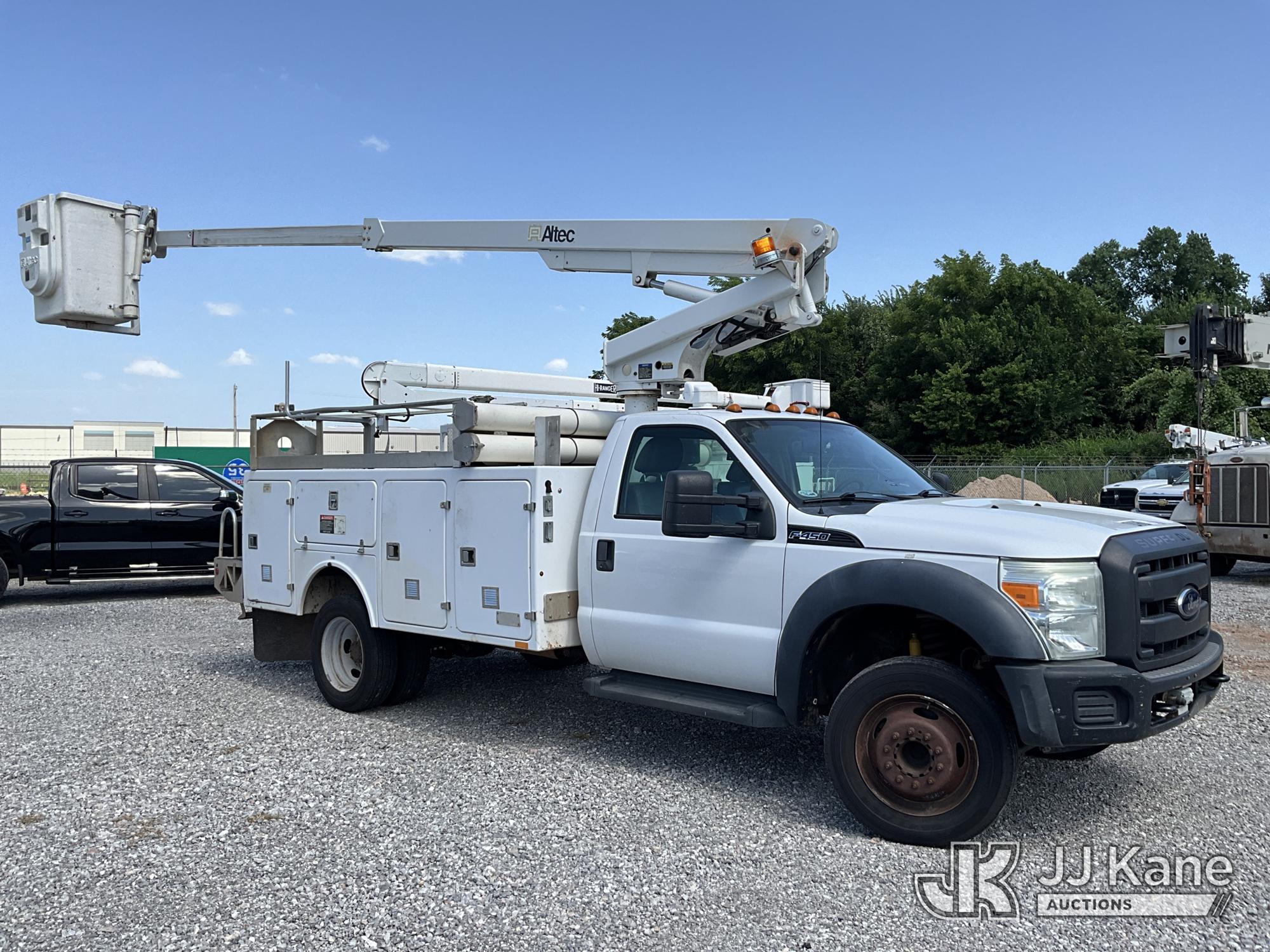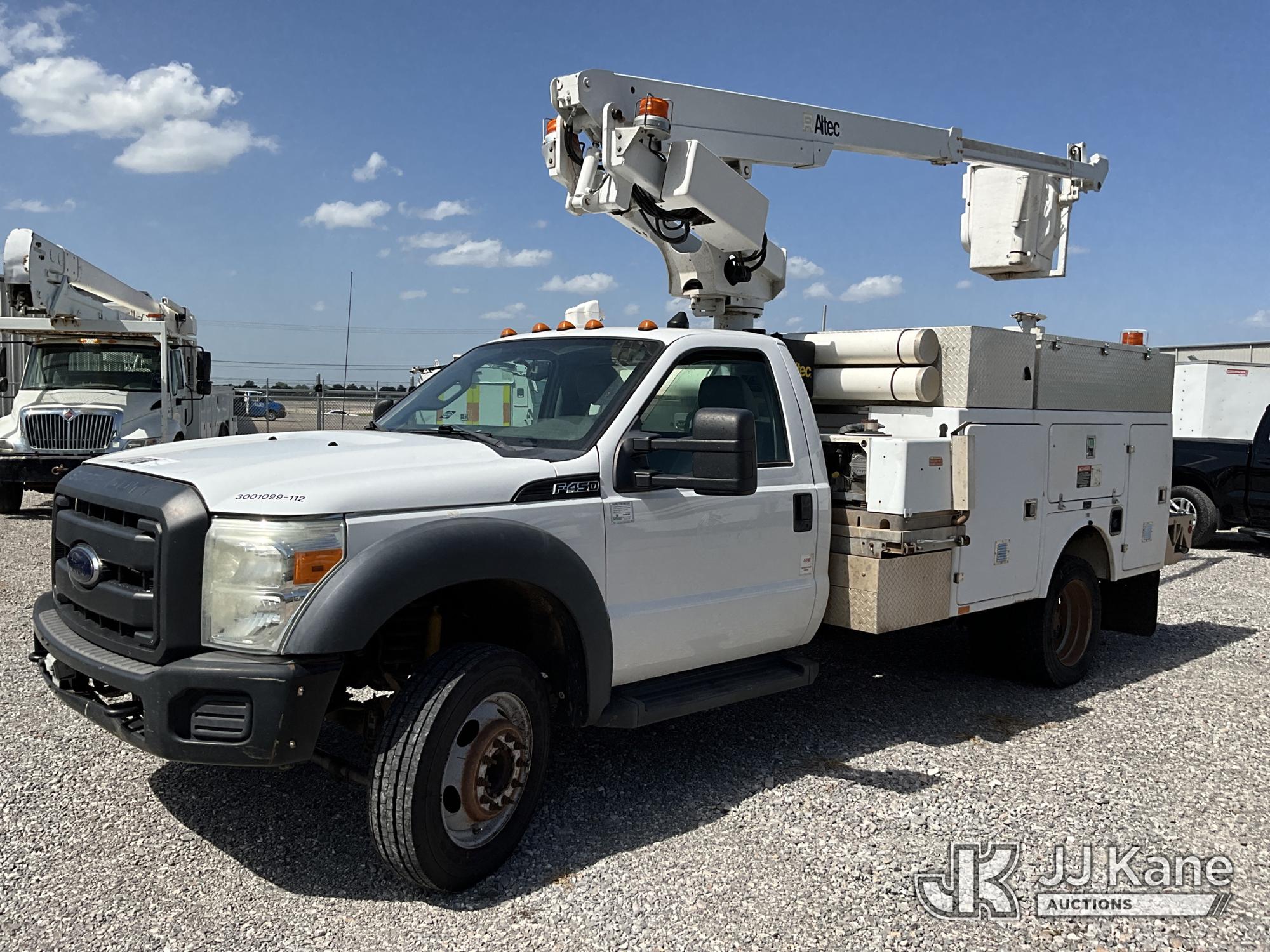 Altec AT200A, 35 ft, Telescopic Non-Insulated Bucket Truck s/n 0612BV17990, with Single-Man Bucket, mounted behind cab on 2012 Ford F450 Service Truck, 10-cyl gas, Auto, A/C, with Cummins Onan Commercial QG EFI Generator, Inverter, (172,306 miles) Element Lease Return (Runs, Moves & Operates) (Check Engine Light On) This is a Titled Item*