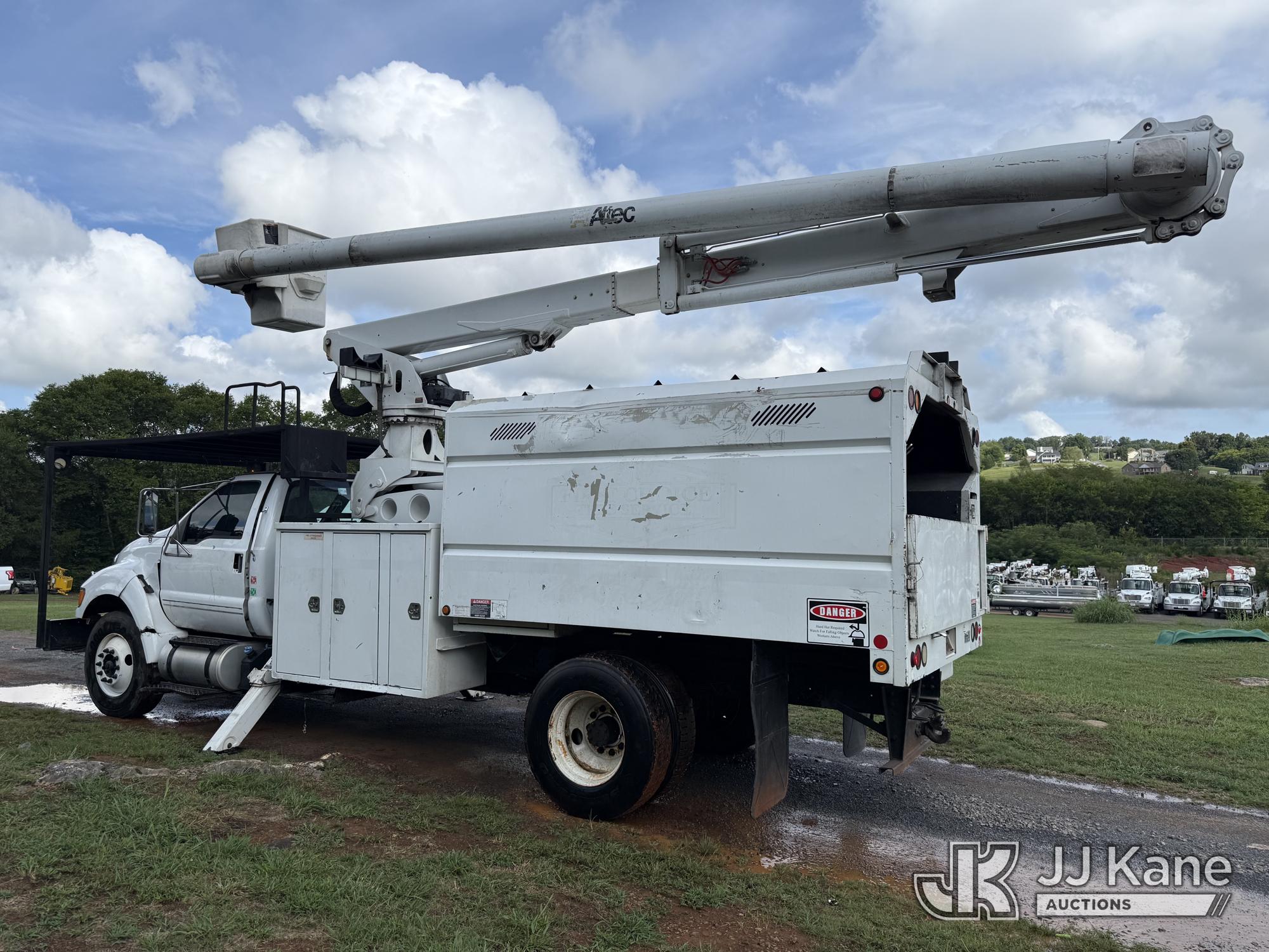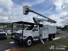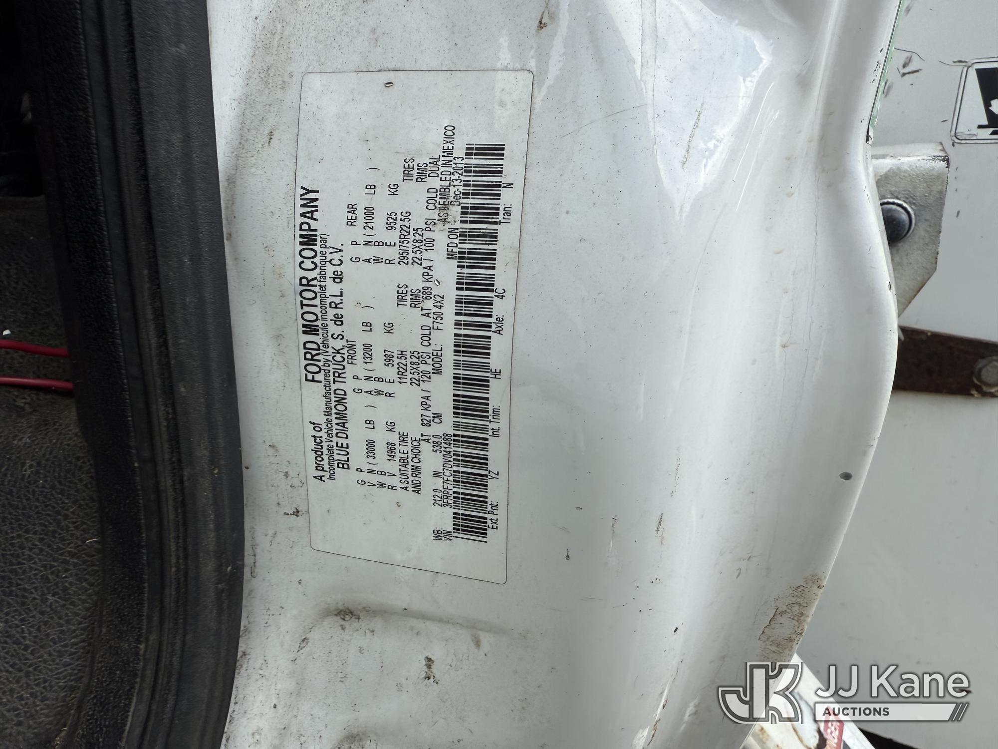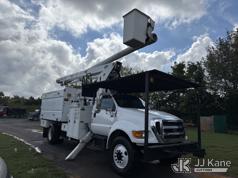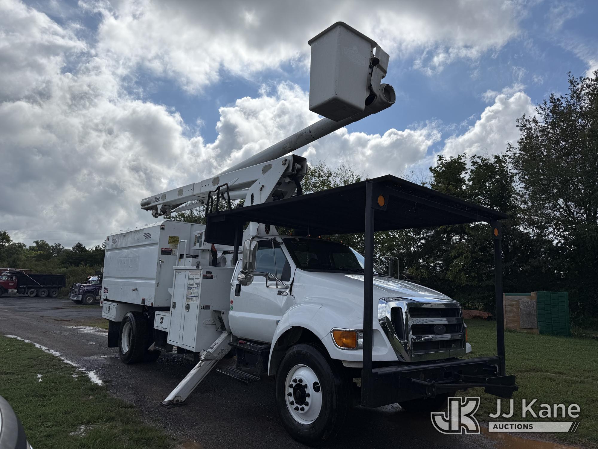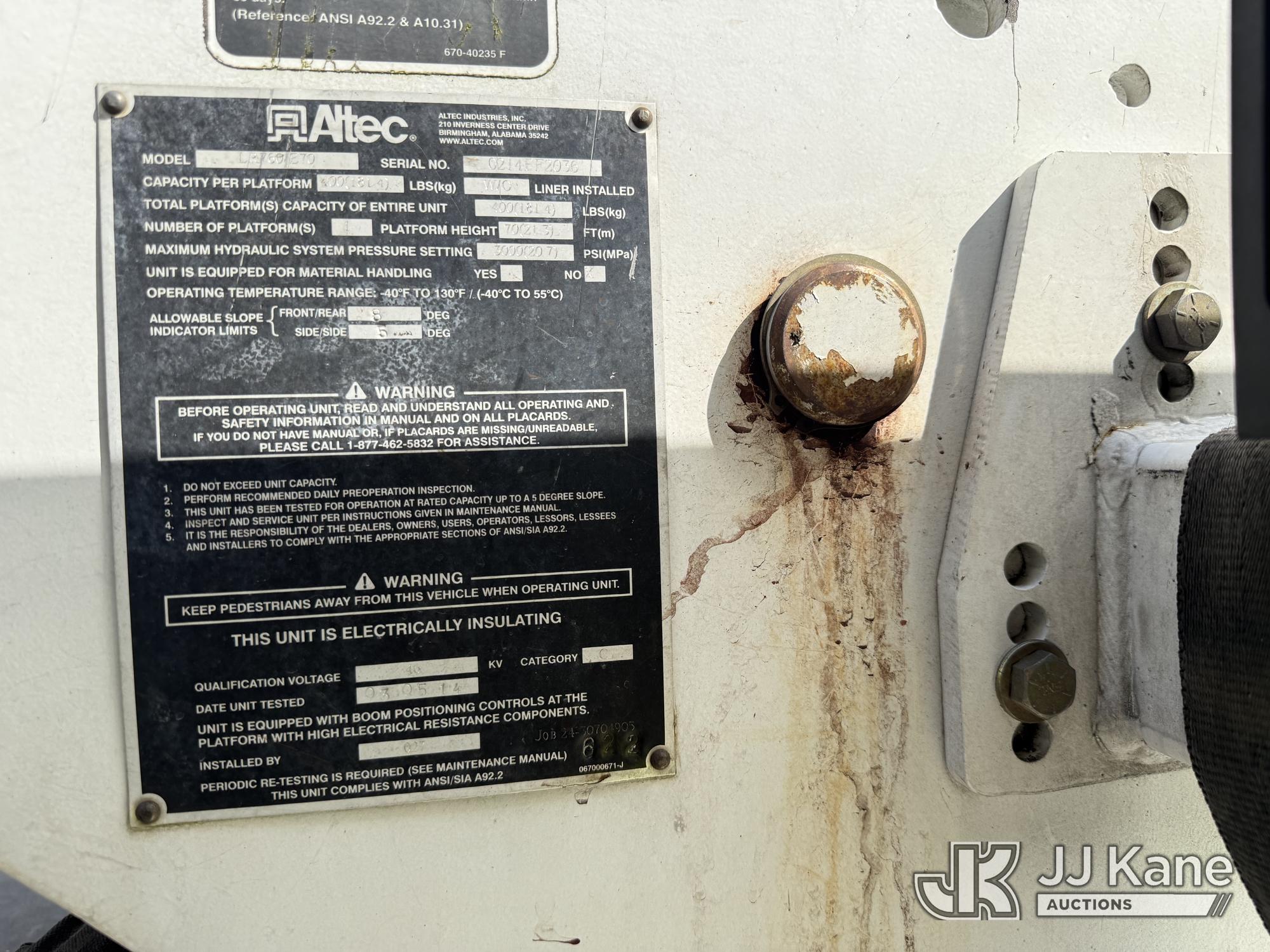 Altec LR760E70, 75 ft, Over-Center Elevator Bucket Truck s/n 0214FF2036, with single-man bucket & 2 hyd outriggers, mounted behind cab on 2013 Ford F750 Chipper Dump Truck, 6.7L diesel, manual, (100,822 miles) This is a Titled Item*