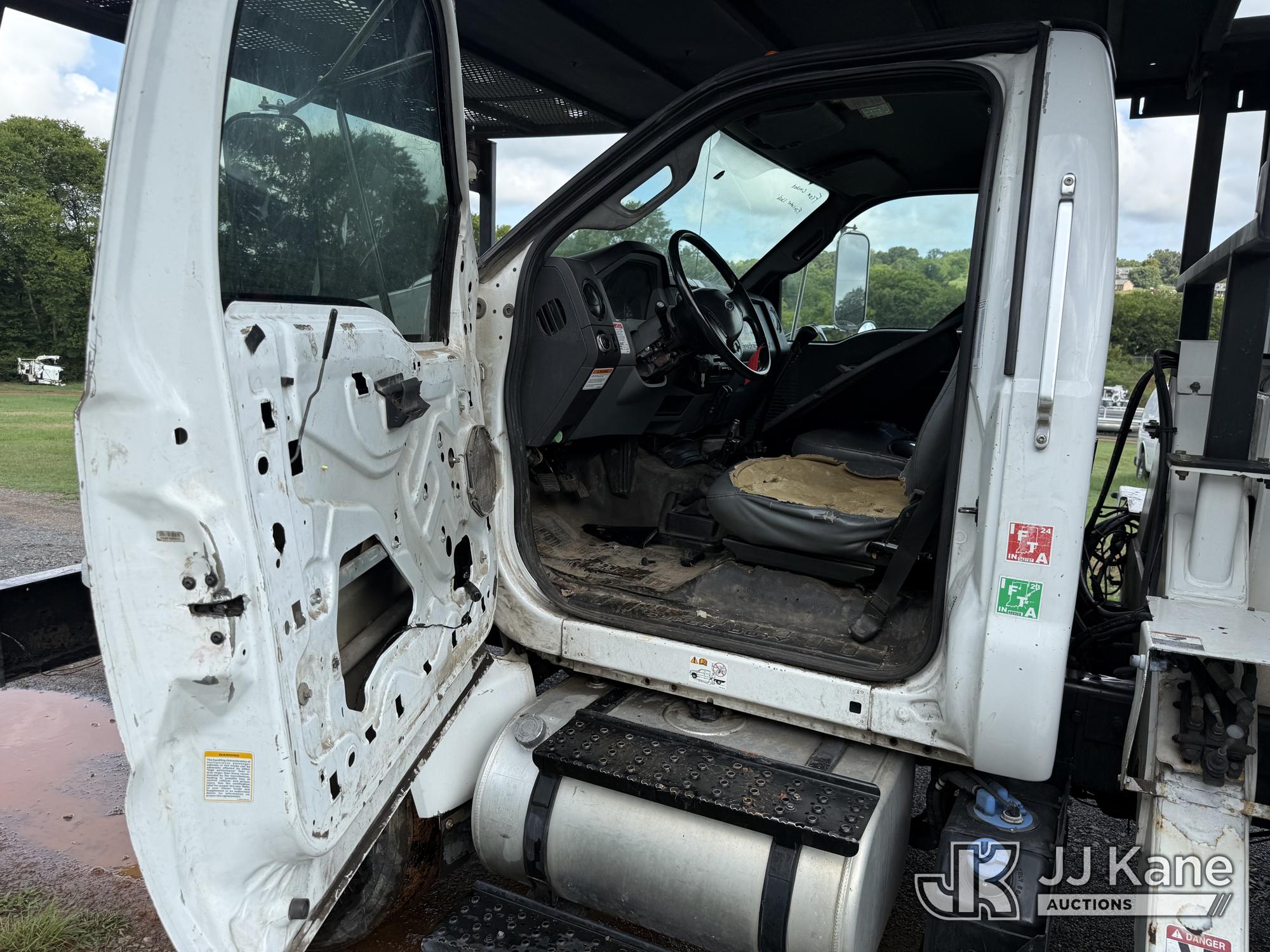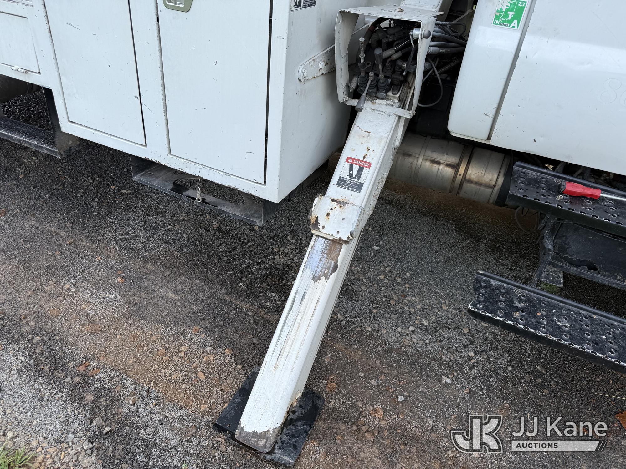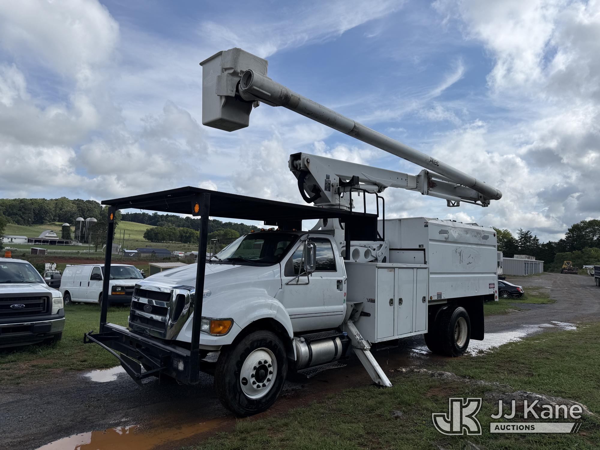 Altec LR760E70, 75 ft, Over-Center Elevator Bucket Truck s/n 0214FF2036, with single-man bucket & 2 hyd outriggers, mounted behind cab on 2013 Ford F750 Chipper Dump Truck, 6.7L diesel, manual, (100,822 miles) This is a Titled Item*