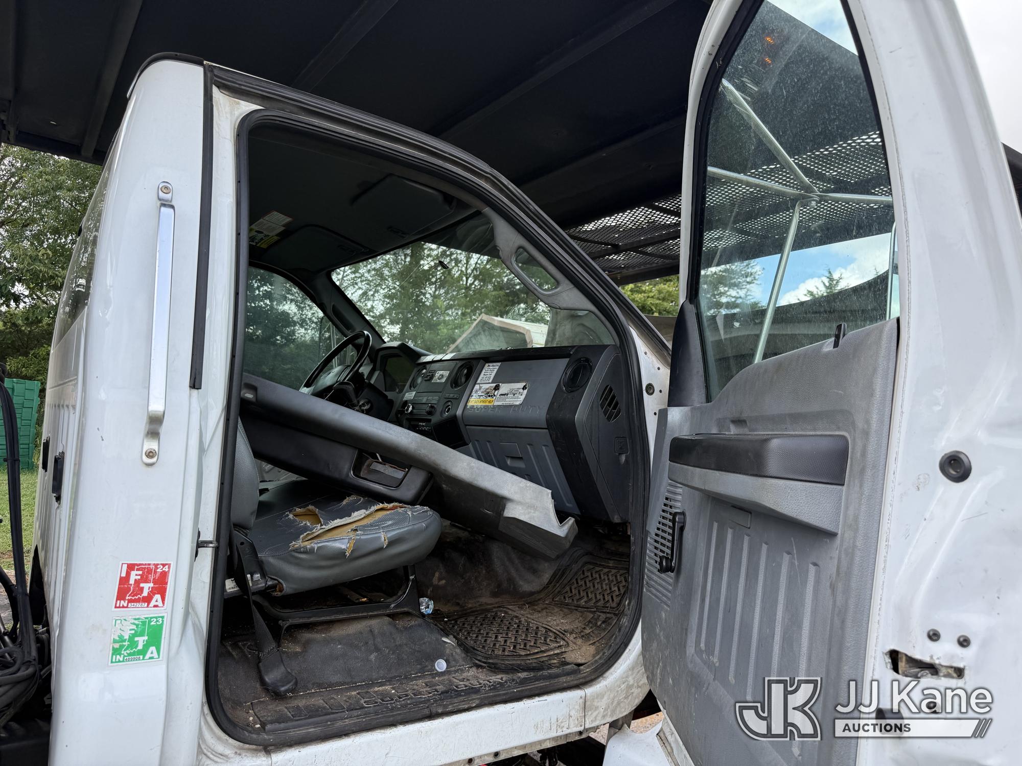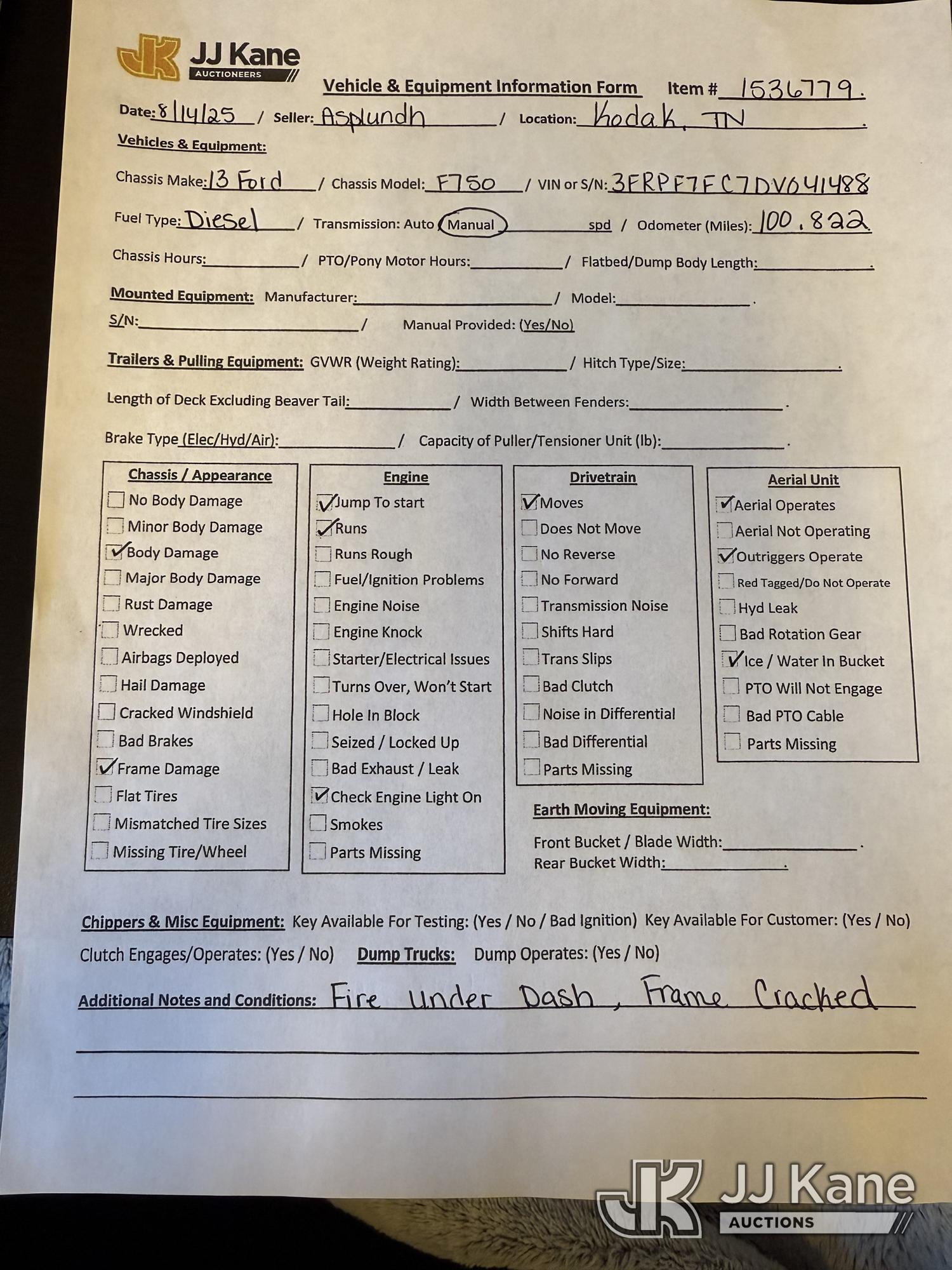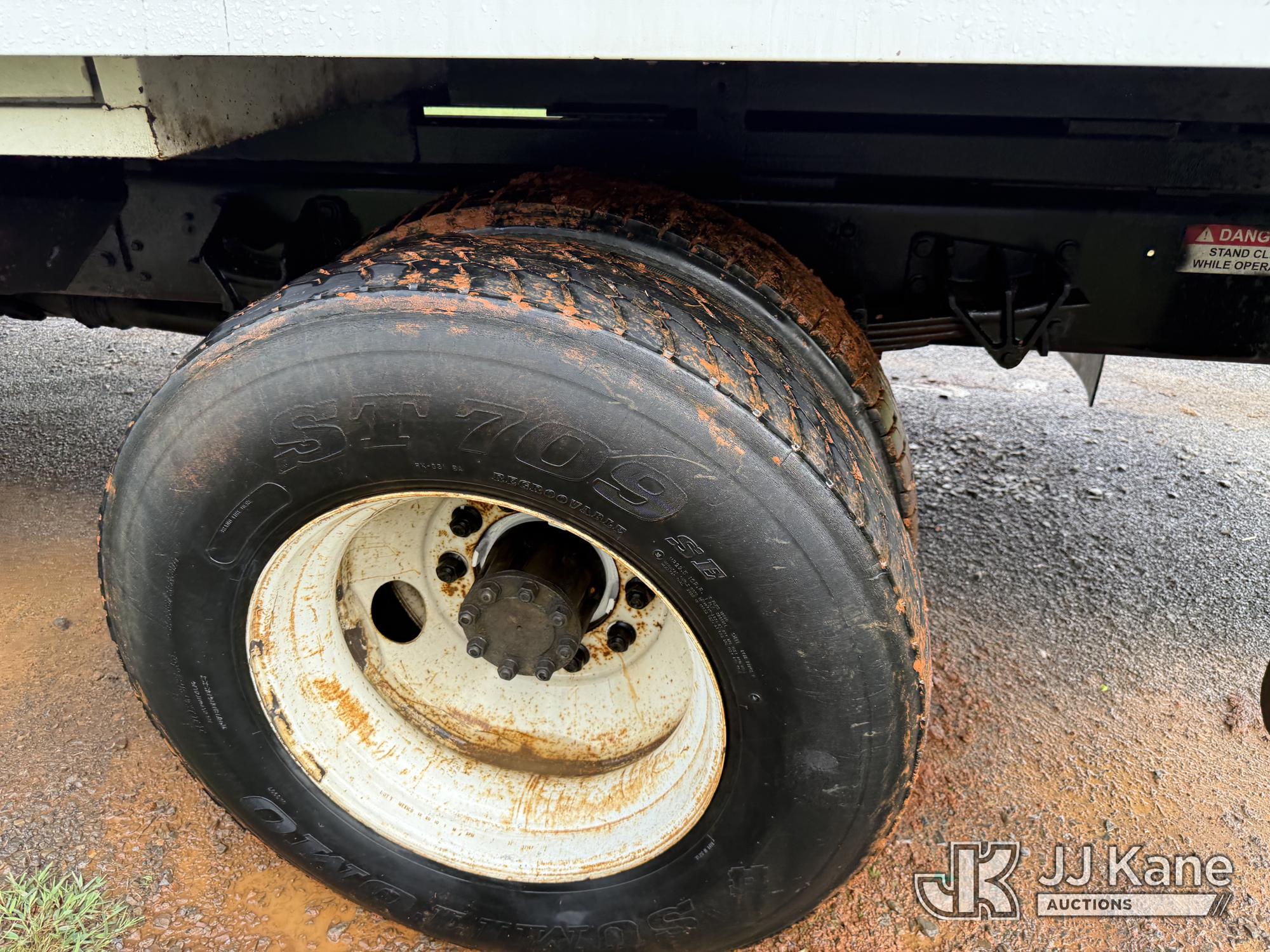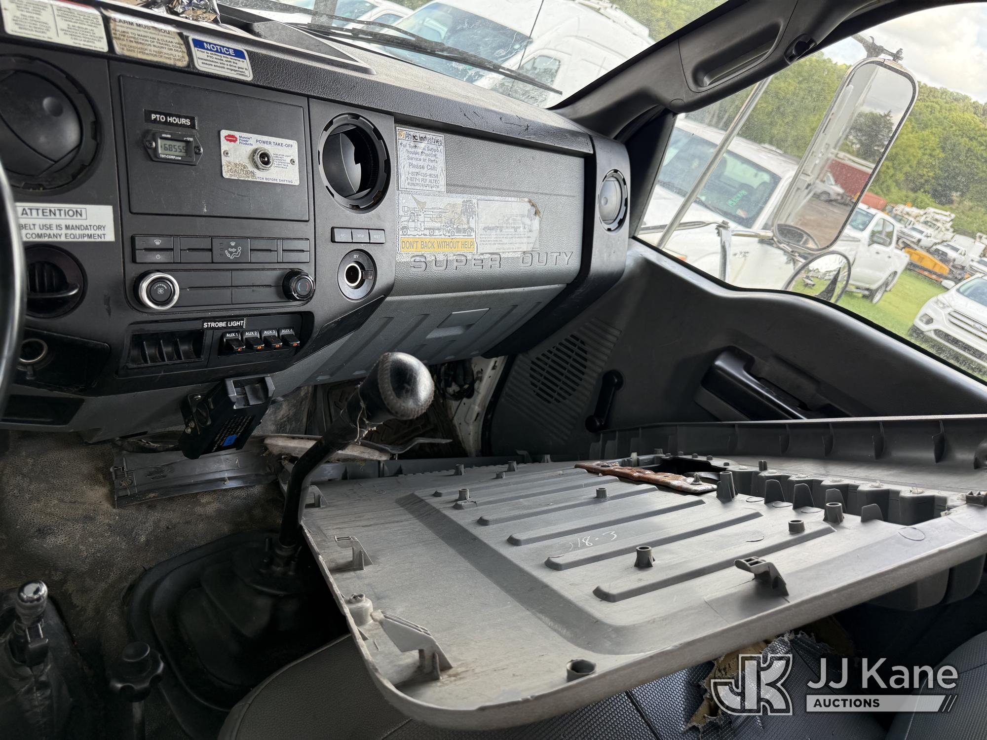 Altec LR760E70, 75 ft, Over-Center Elevator Bucket Truck s/n 0214FF2036, with single-man bucket & 2 hyd outriggers, mounted behind cab on 2013 Ford F750 Chipper Dump Truck, 6.7L diesel, manual, (100,822 miles) This is a Titled Item*