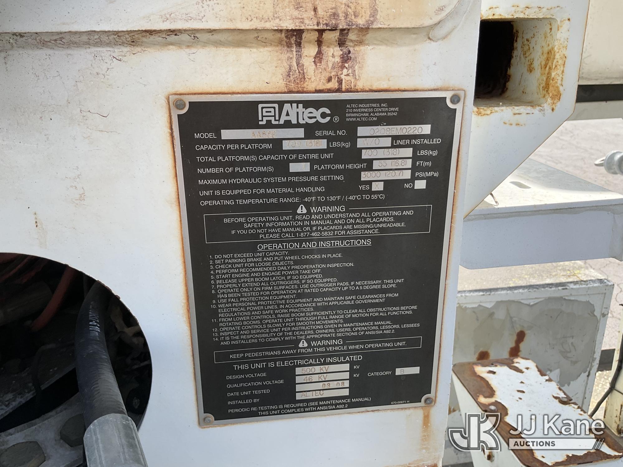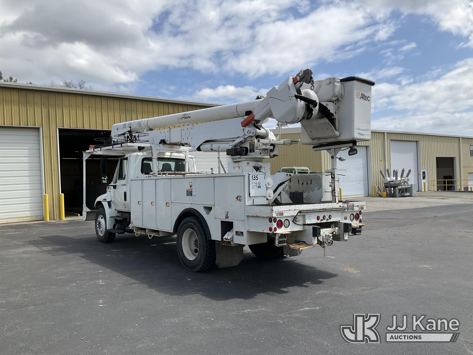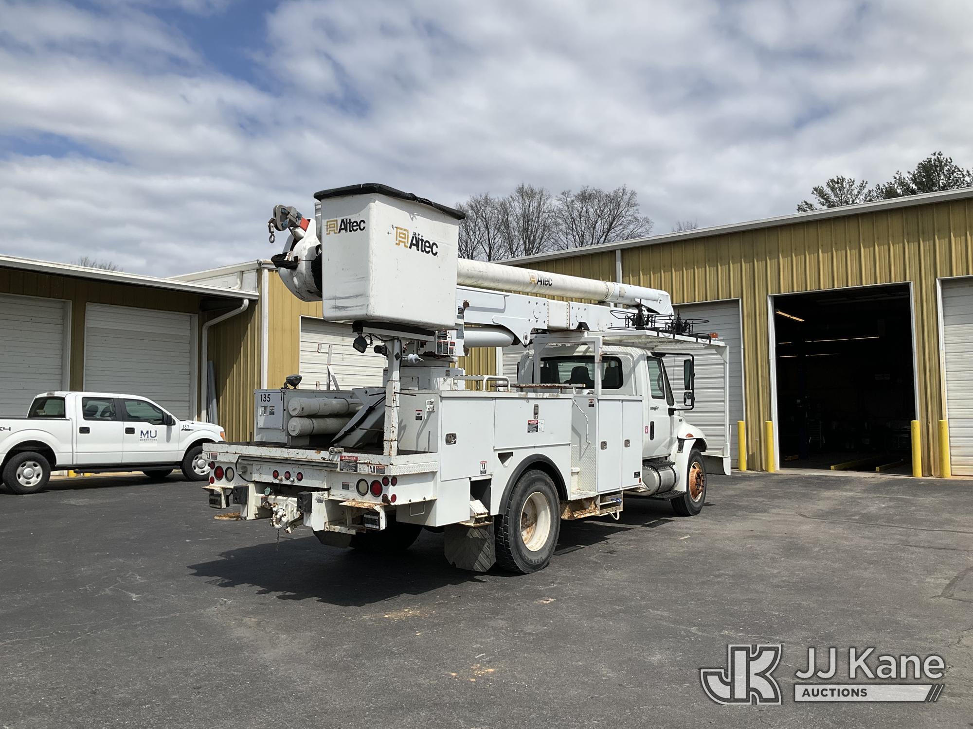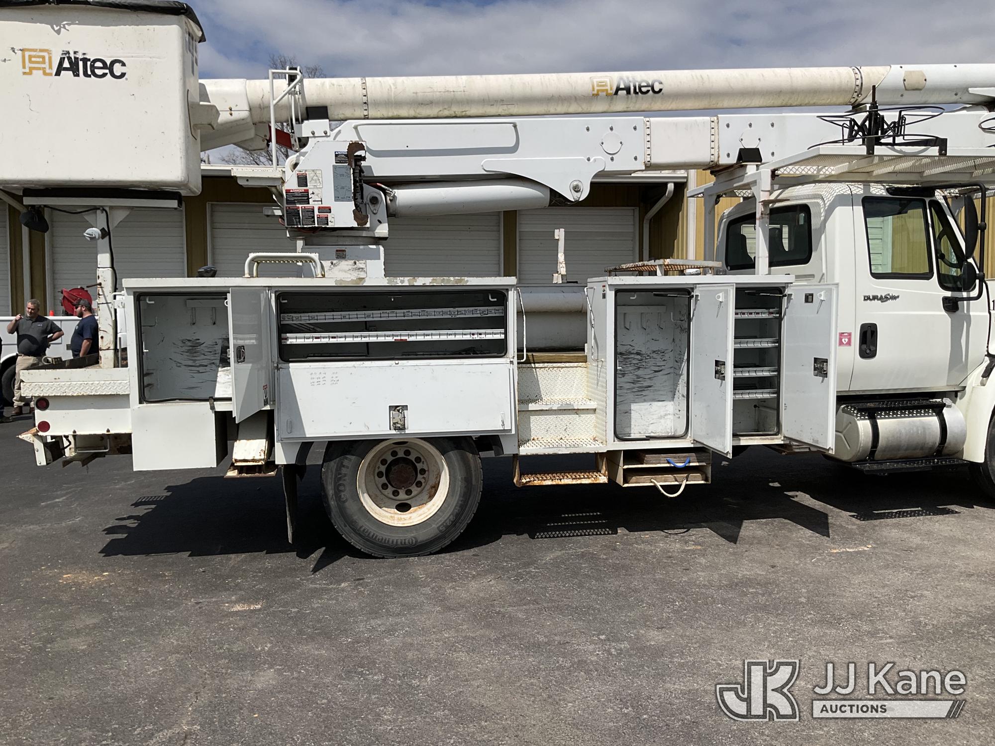 Altec AA55E, 60 ft, Material Handling Bucket Truck s/n 0208EM0220, with two-man bucket & 4 hyd outriggers, rear mounted on 2009 International 4300 Utility Truck, Maxxforce DT diesel, Auto, A/C, (72,772 miles) (Runs, Moves & Upper Operates) This is a Titled Item*