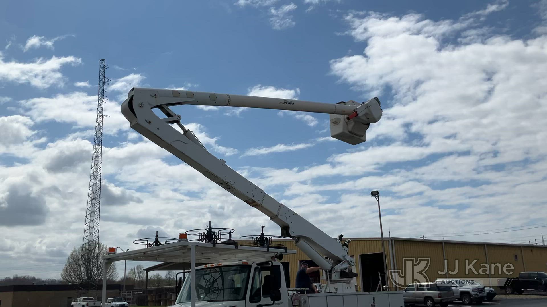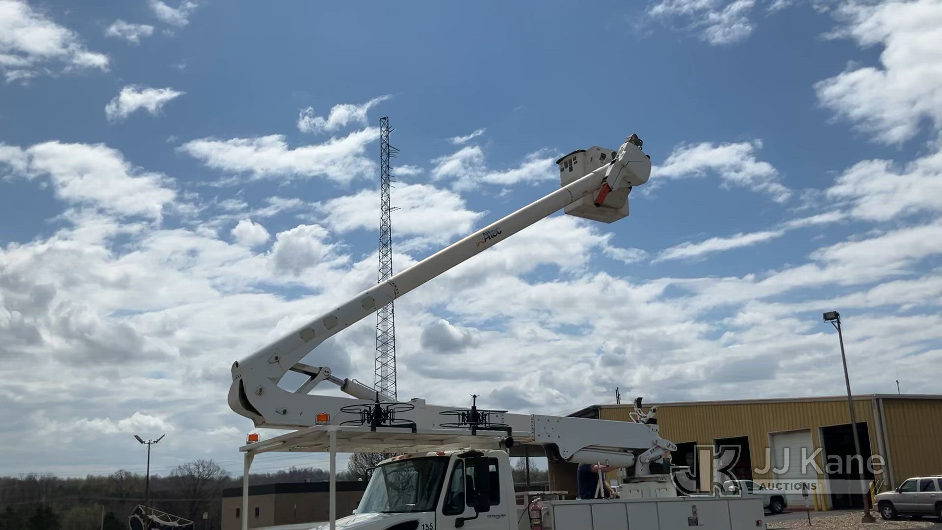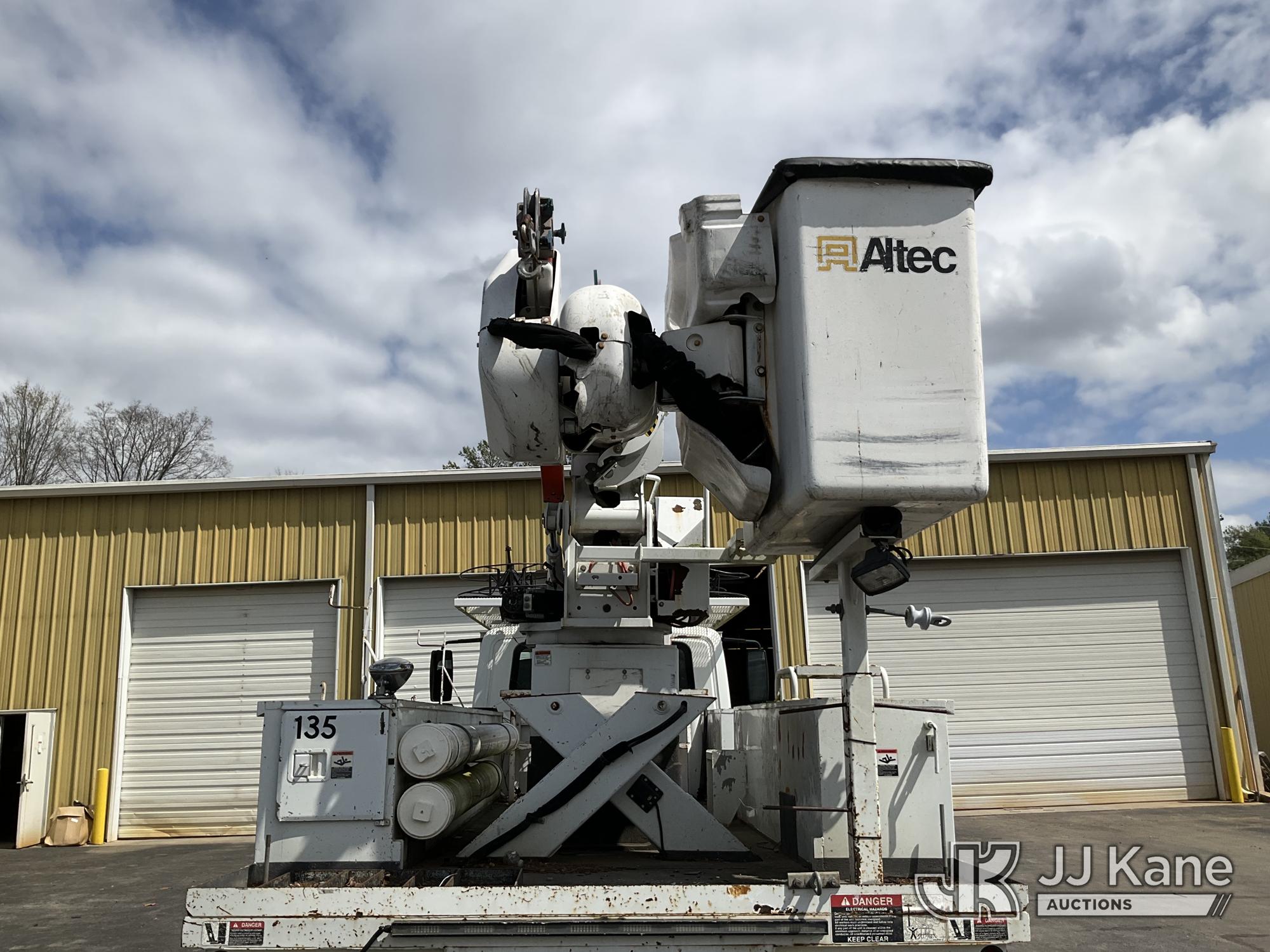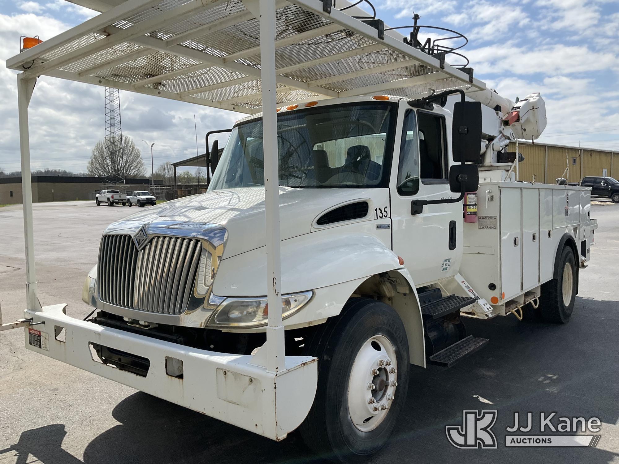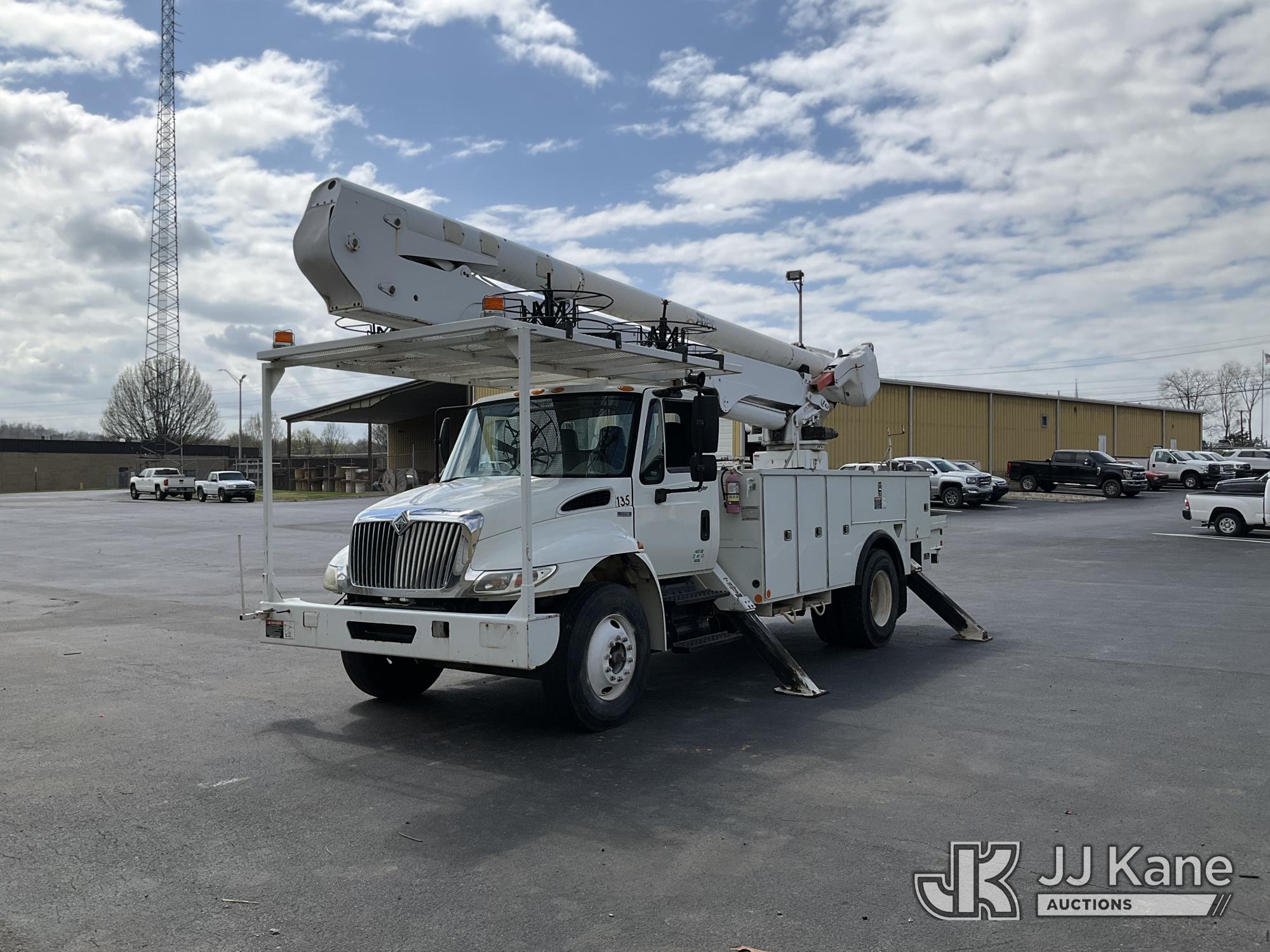 Altec AA55E, 60 ft, Material Handling Bucket Truck s/n 0208EM0220, with two-man bucket & 4 hyd outriggers, rear mounted on 2009 International 4300 Utility Truck, Maxxforce DT diesel, Auto, A/C, (72,772 miles) (Runs, Moves & Upper Operates) This is a Titled Item*