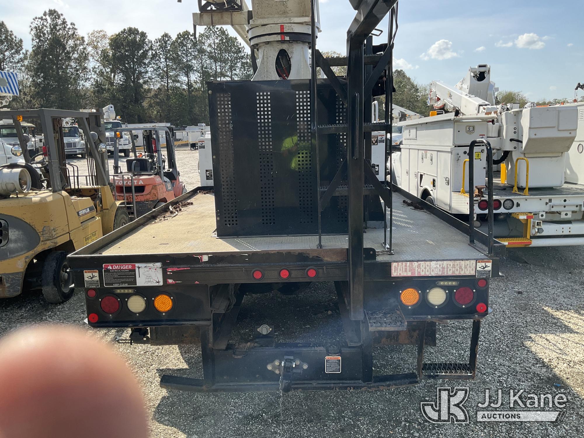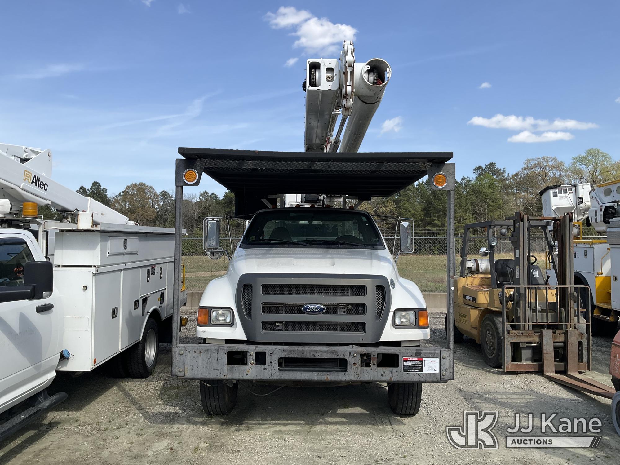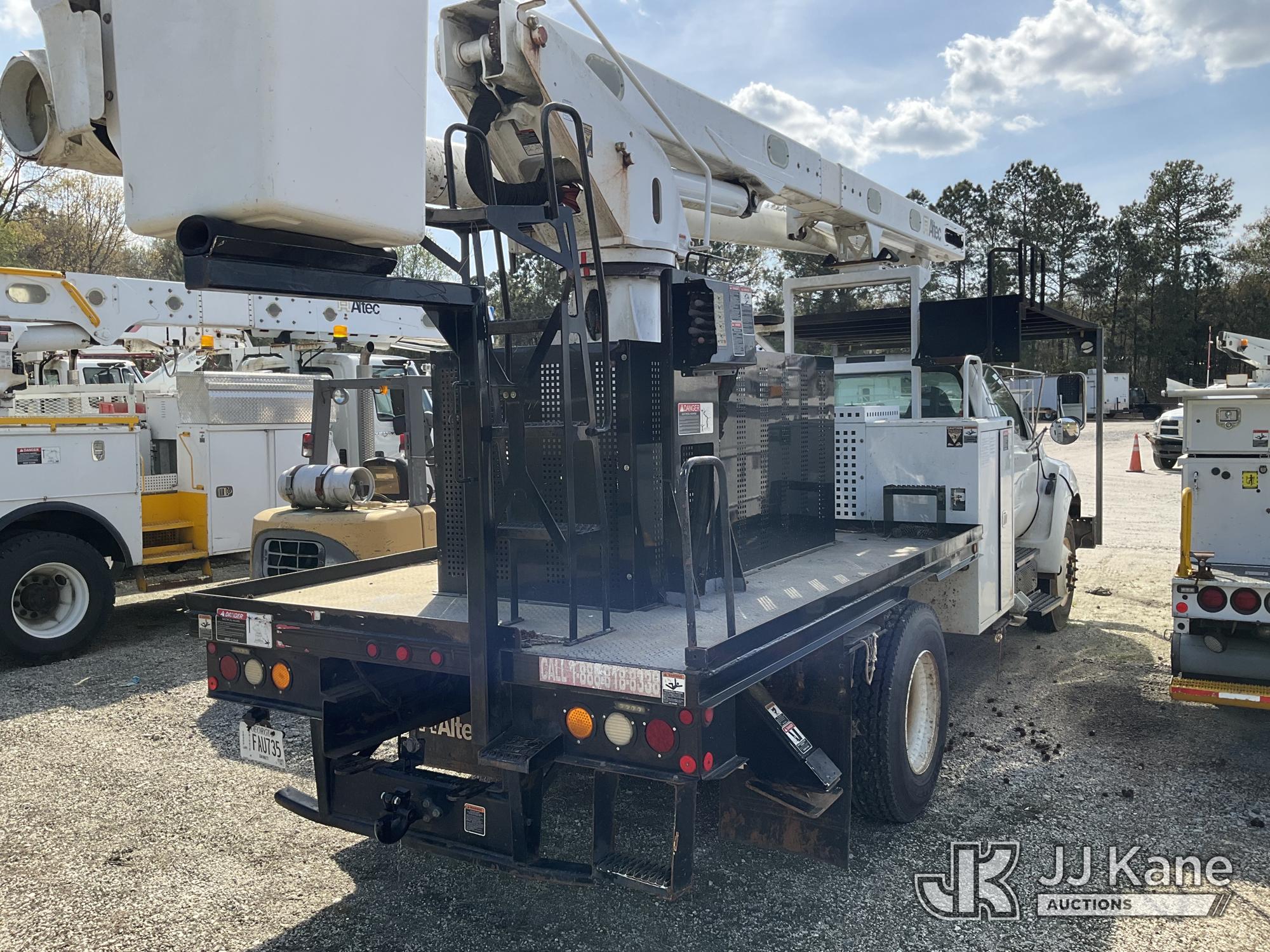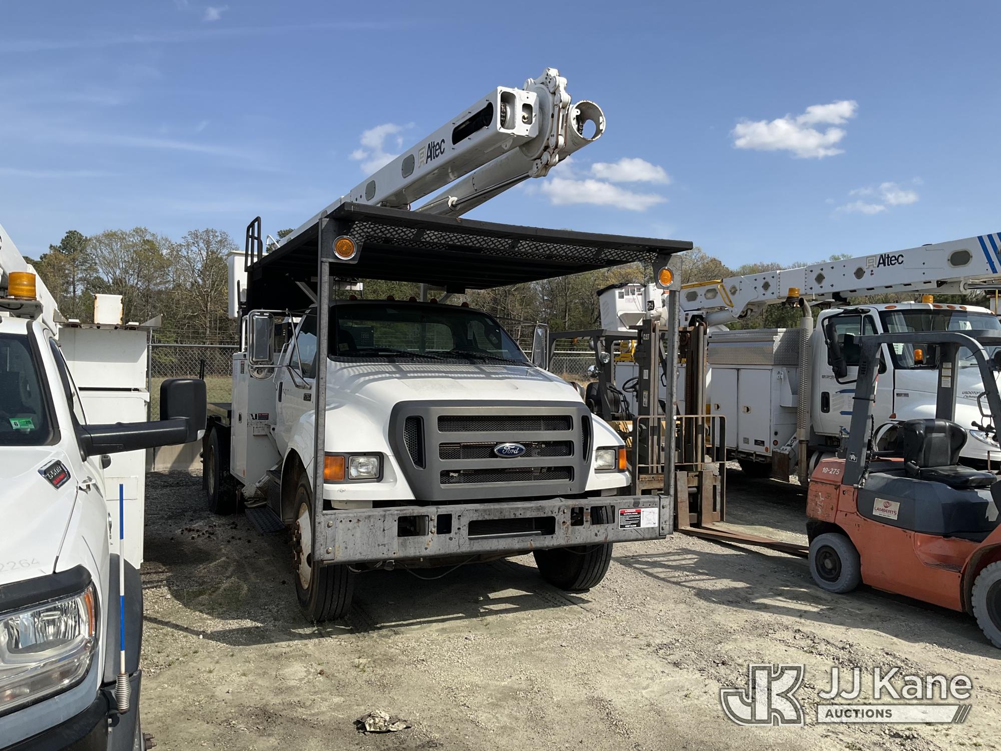 Altec LR760-E70, 75 ft, Over-Center Elevator Bucket Truck s/n 0913FF1419, with single-man bucket & 4 hyd outriggers, rear mounted on 2013 Ford F750 Flatbed/Utility Truck, 6.7L diesel, 6-spd, A/C, (63,055 miles) (Not Running, Condition Unknown, No Driver's Seat, Upper Condition Unknown) (Seller States: this item has been removed from service due to the listed safety repairs that were not completed. The safety items below must be completed by an approved OEM facility before the unit can return to service: REPLACE THE BOOM DRUM PIN, BEARINGS, THRUST WASHERS, AND RETAINING RINGS AT THE BOOM ELBOW, REPLACE THE DAMAGED PLATFORM, COMPLETE ANSI INSPECTION; COMPLETE ANY REQUIRED TESTING AND REPAIRS AFTER INSPECTIONS ARE COMPLETED) (Bidding Restricted to Licensed Vehicle Dealers Only), This is a Titled Item*