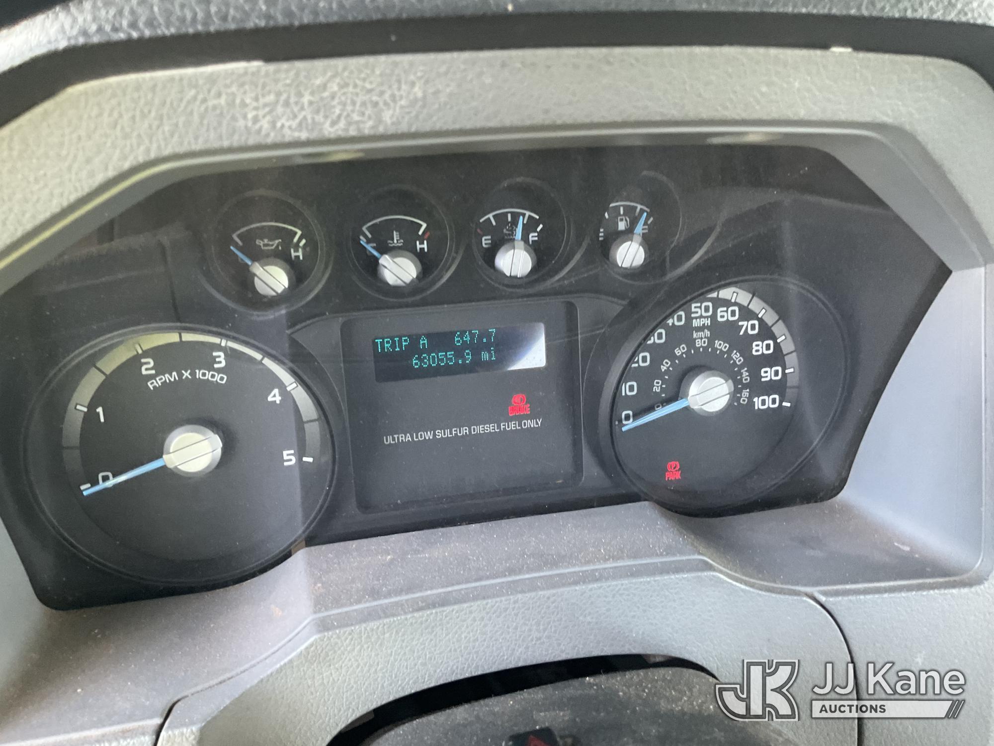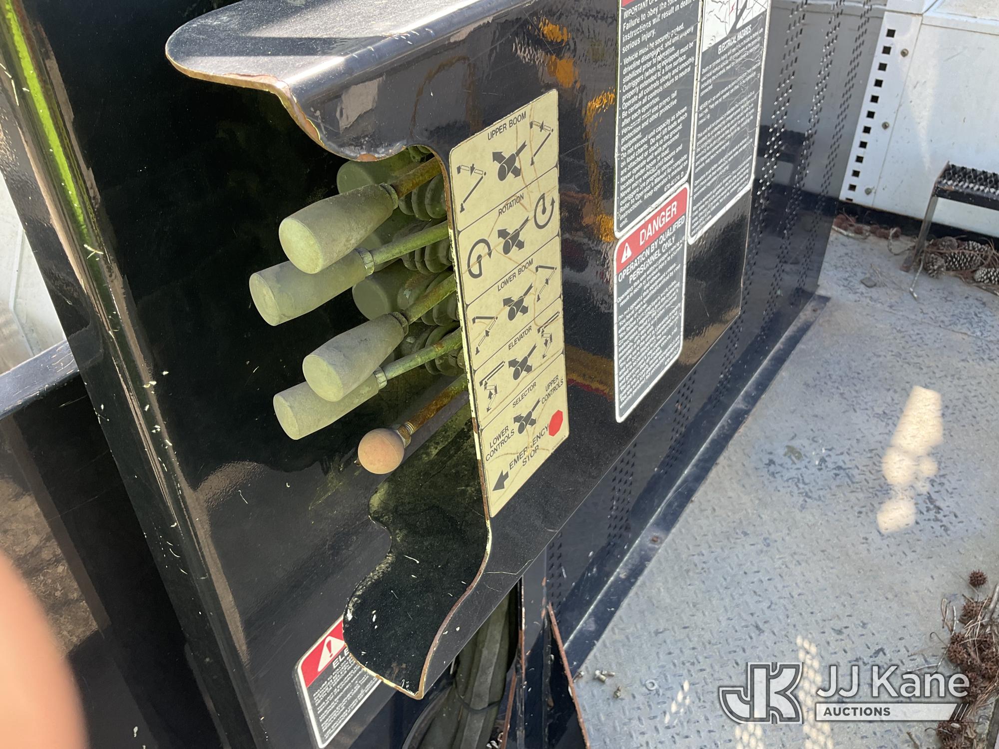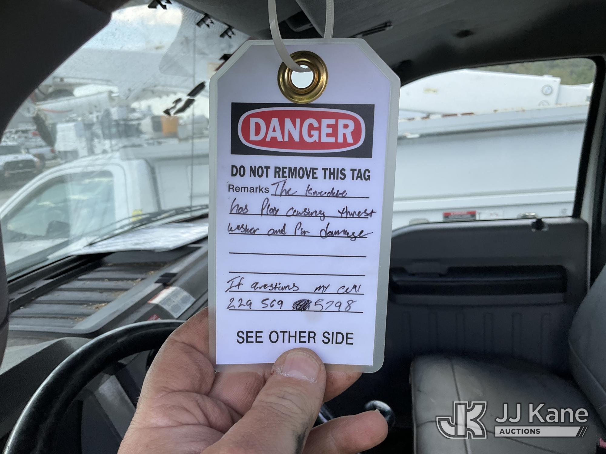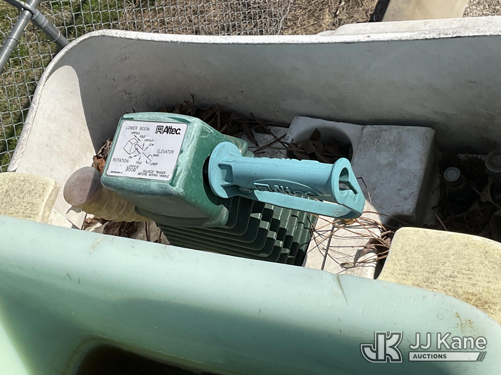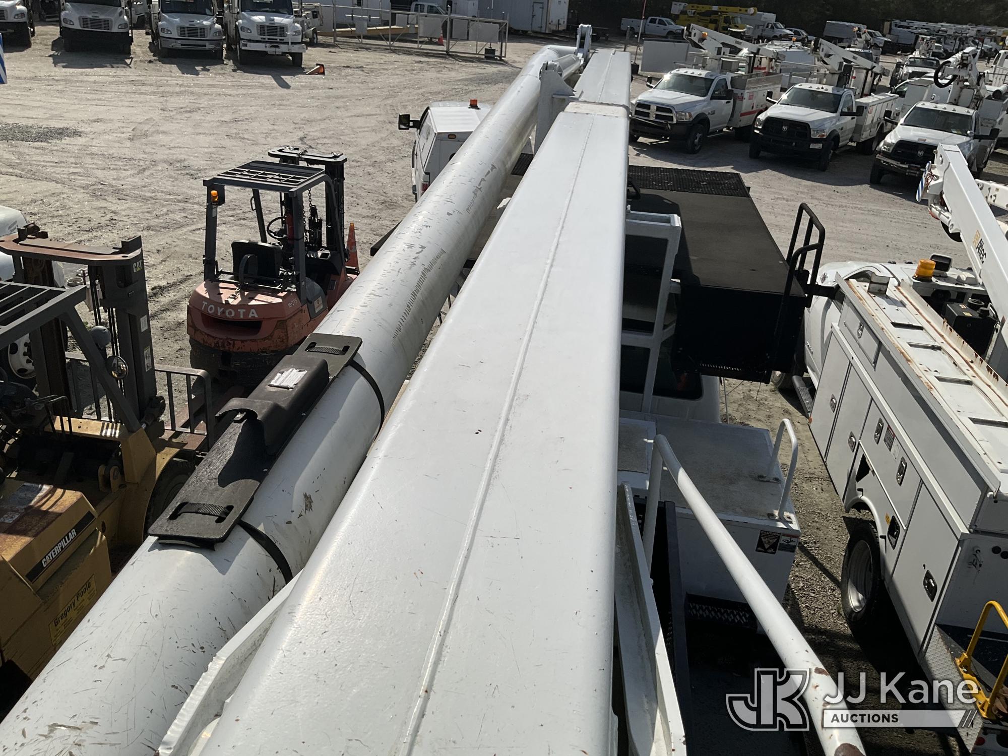 Altec LR760-E70, 75 ft, Over-Center Elevator Bucket Truck s/n 0913FF1419, with single-man bucket & 4 hyd outriggers, rear mounted on 2013 Ford F750 Flatbed/Utility Truck, 6.7L diesel, 6-spd, A/C, (63,055 miles) (Not Running, Condition Unknown, No Driver's Seat, Upper Condition Unknown) (Seller States: this item has been removed from service due to the listed safety repairs that were not completed. The safety items below must be completed by an approved OEM facility before the unit can return to service: REPLACE THE BOOM DRUM PIN, BEARINGS, THRUST WASHERS, AND RETAINING RINGS AT THE BOOM ELBOW, REPLACE THE DAMAGED PLATFORM, COMPLETE ANSI INSPECTION; COMPLETE ANY REQUIRED TESTING AND REPAIRS AFTER INSPECTIONS ARE COMPLETED) (Bidding Restricted to Licensed Vehicle Dealers Only), This is a Titled Item*