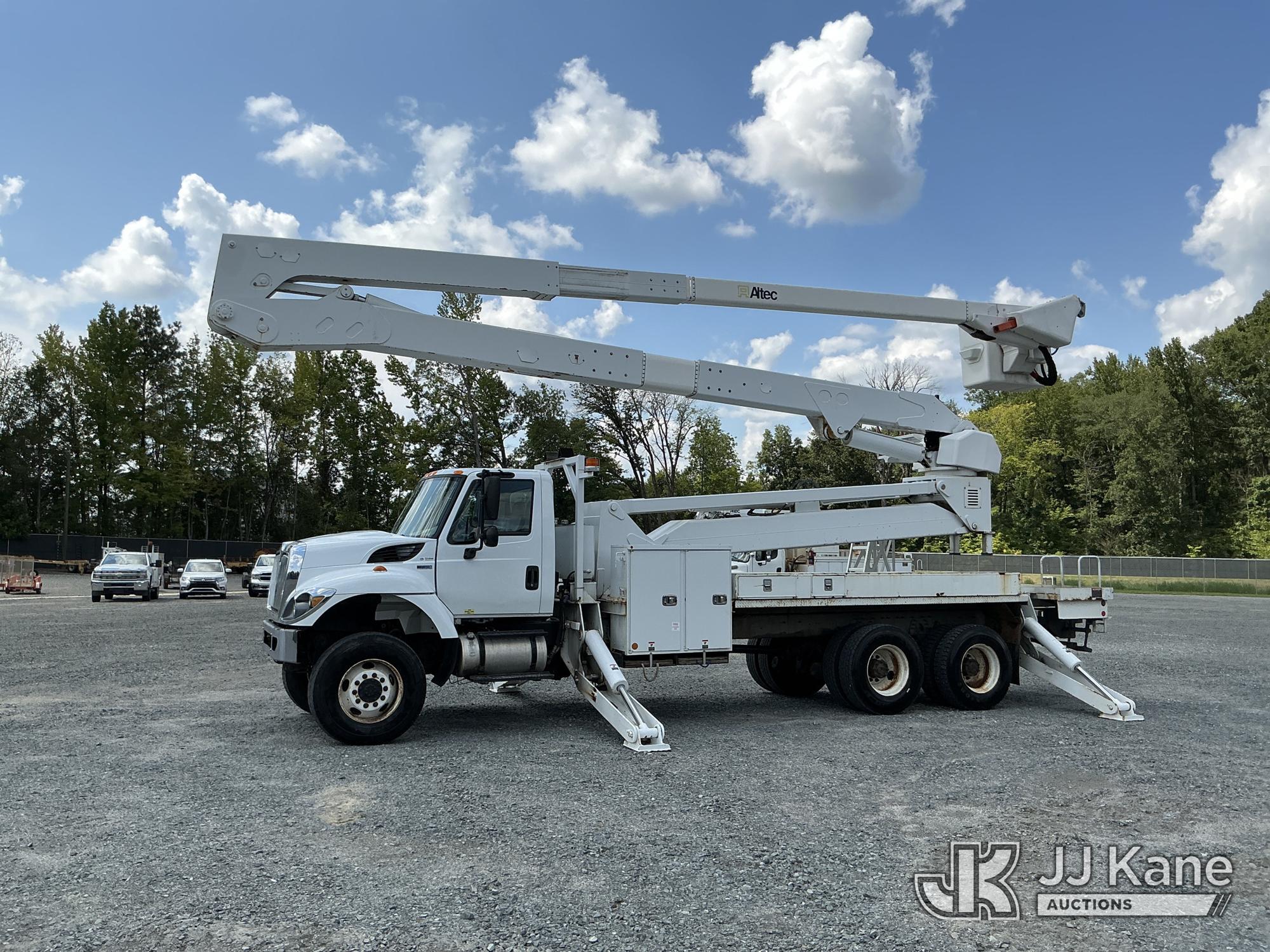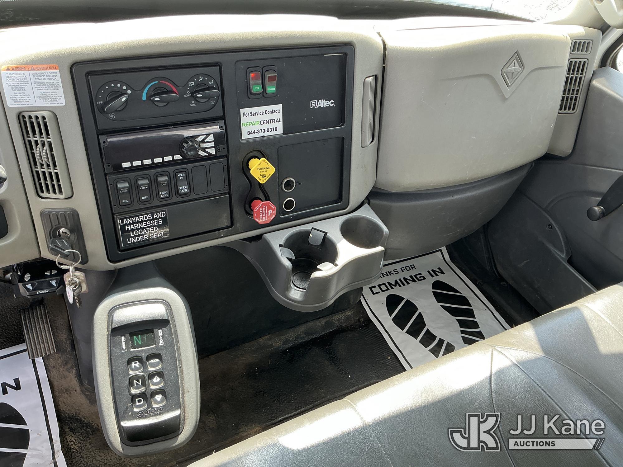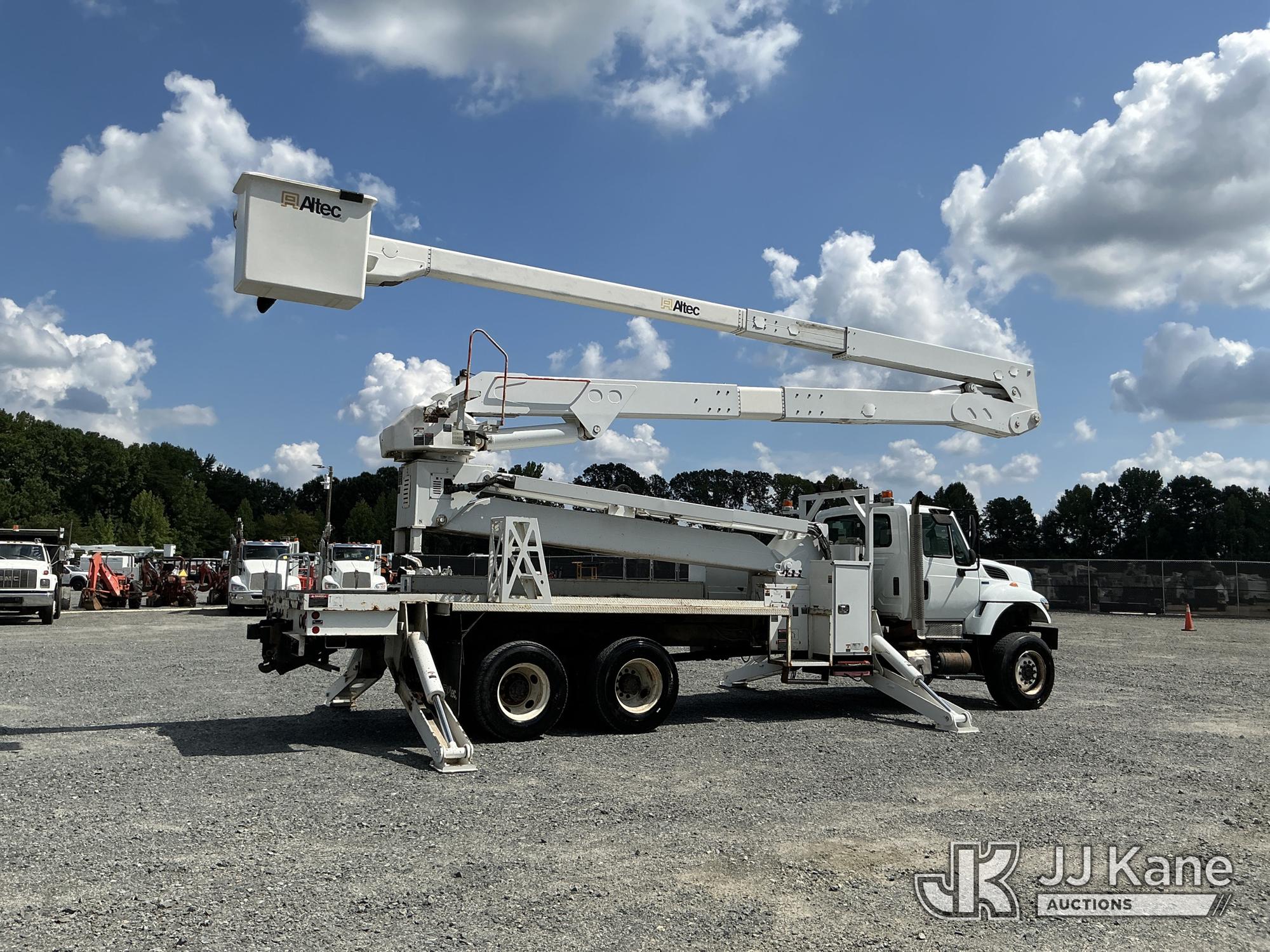 Altec A77T-E93-MH, 98 ft, Articulating & Telescopic Material Handling Elevator Bucket Truck s/n 0714CT2000, with two-man bucket & 4 hyd outriggers, mounted behind cab on 2015 International 7400 6X6 T/A Flatbed/Utility Truck, MaxxForce DT466 diesel, Auto, A/C, (43,336 miles) (Runs, Moves & Upper Operates ) This is a Titled Item*