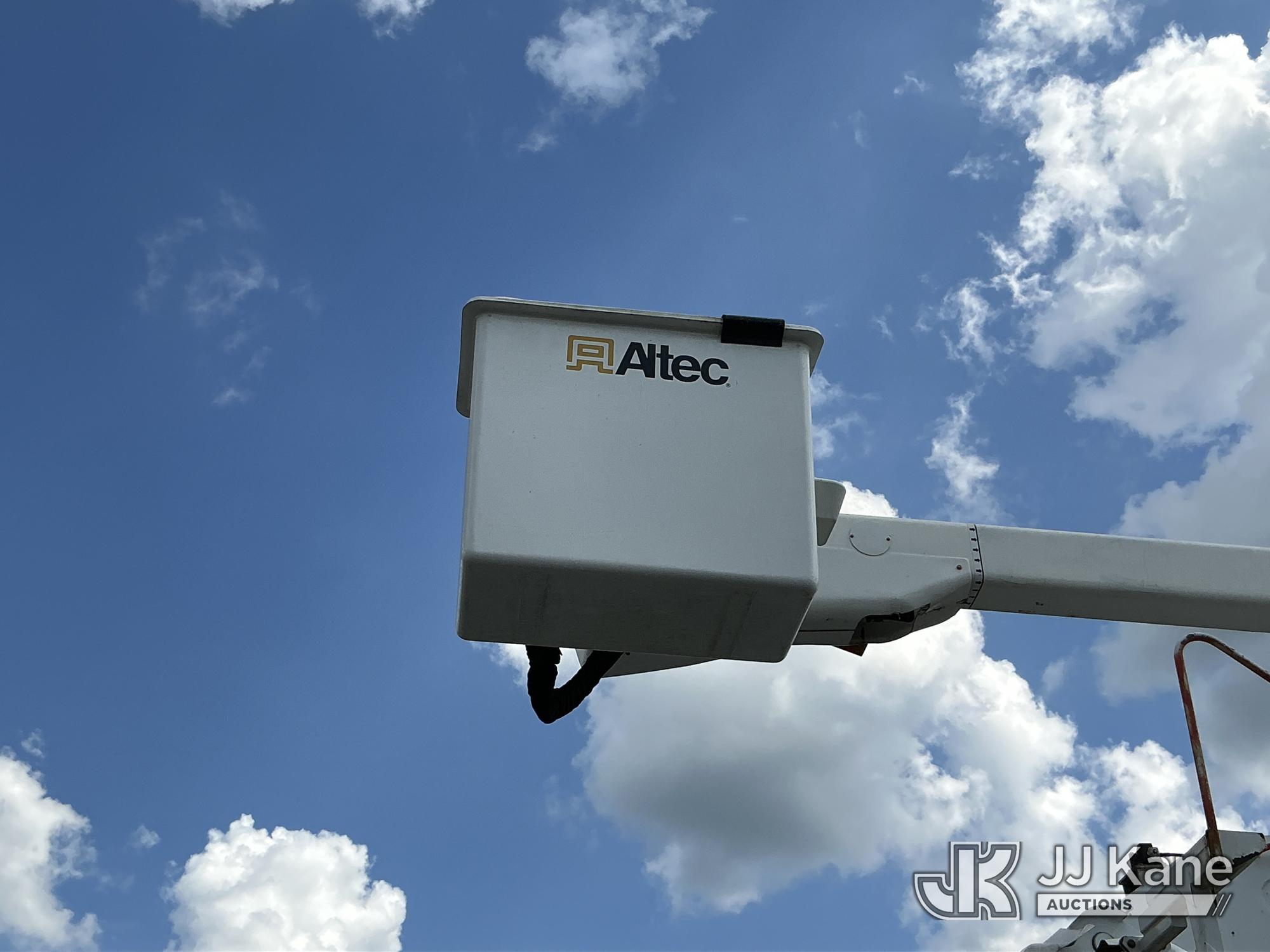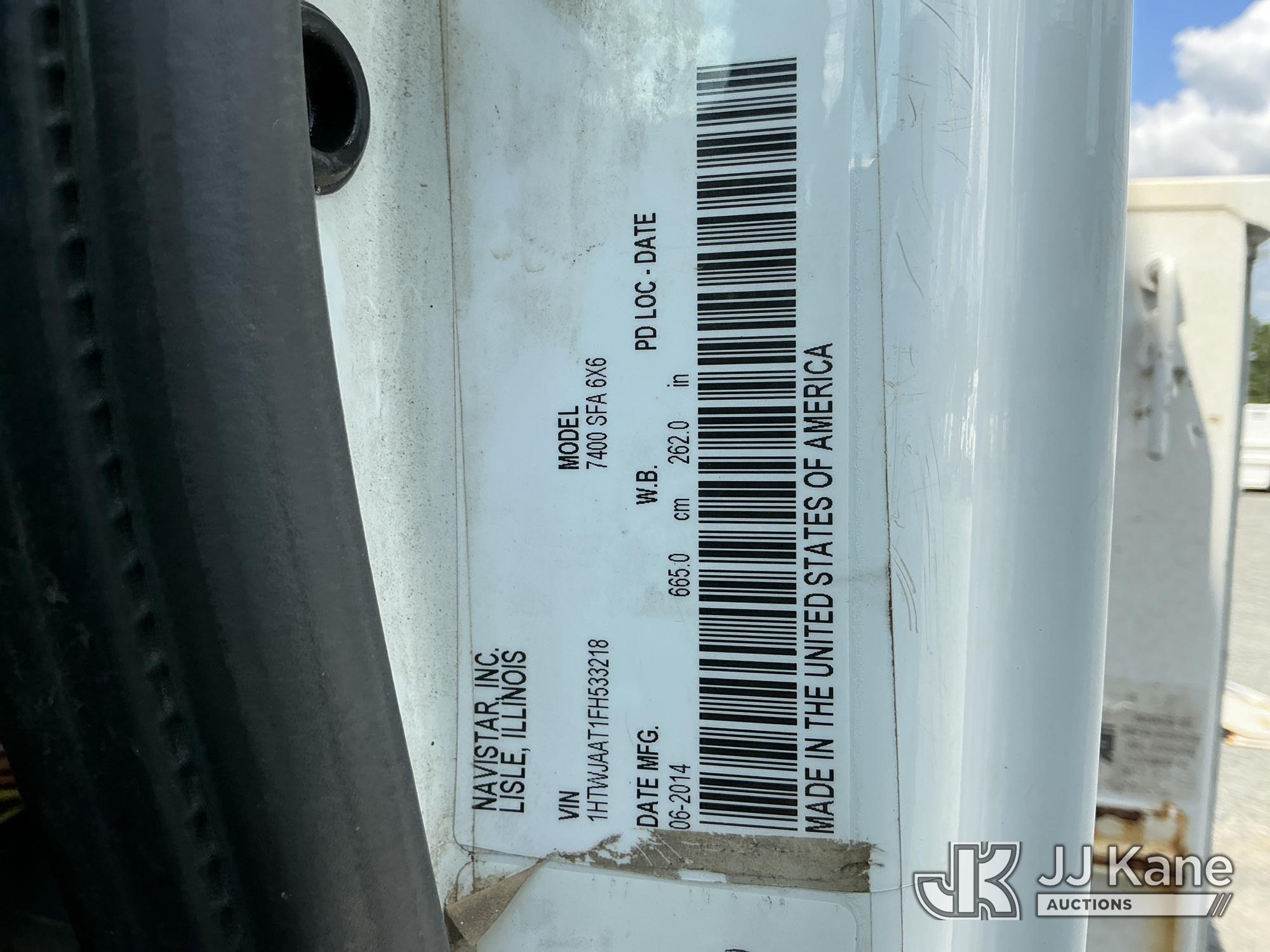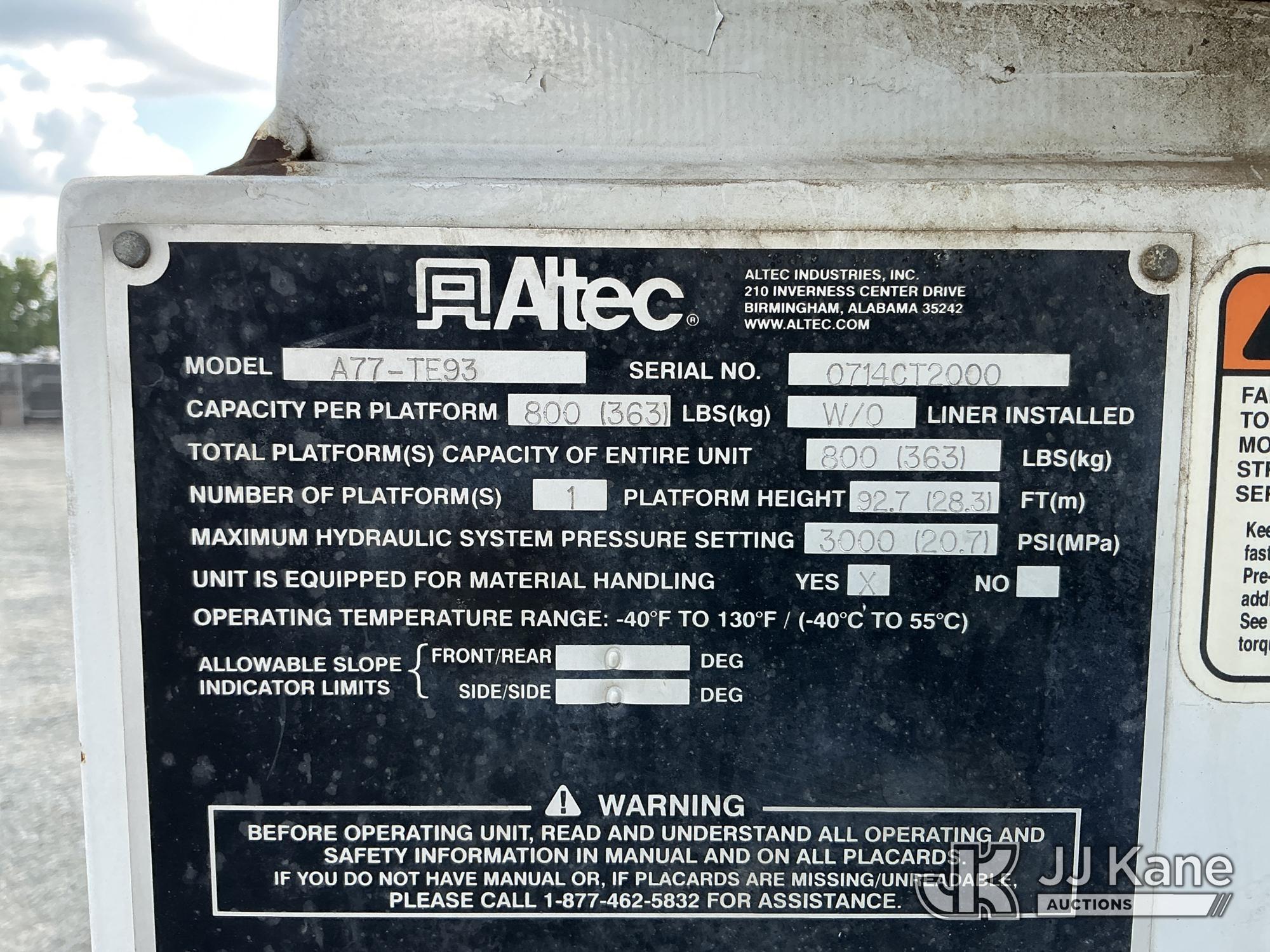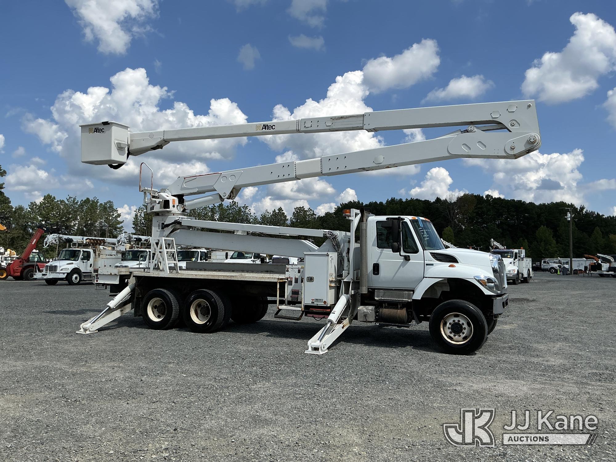 Altec A77T-E93-MH, 98 ft, Articulating & Telescopic Material Handling Elevator Bucket Truck s/n 0714CT2000, with two-man bucket & 4 hyd outriggers, mounted behind cab on 2015 International 7400 6X6 T/A Flatbed/Utility Truck, MaxxForce DT466 diesel, Auto, A/C, (43,336 miles) (Runs, Moves & Upper Operates ) This is a Titled Item*