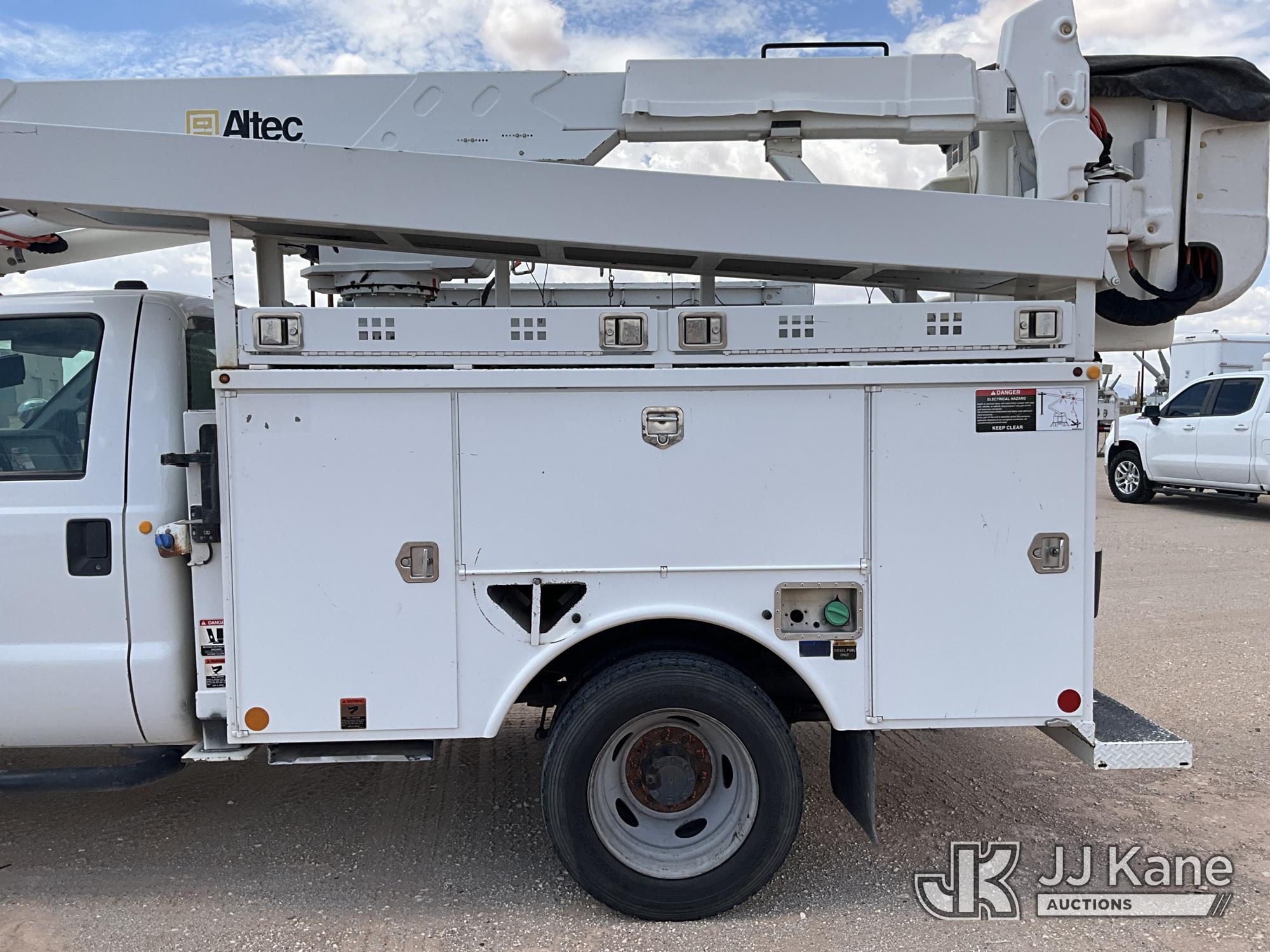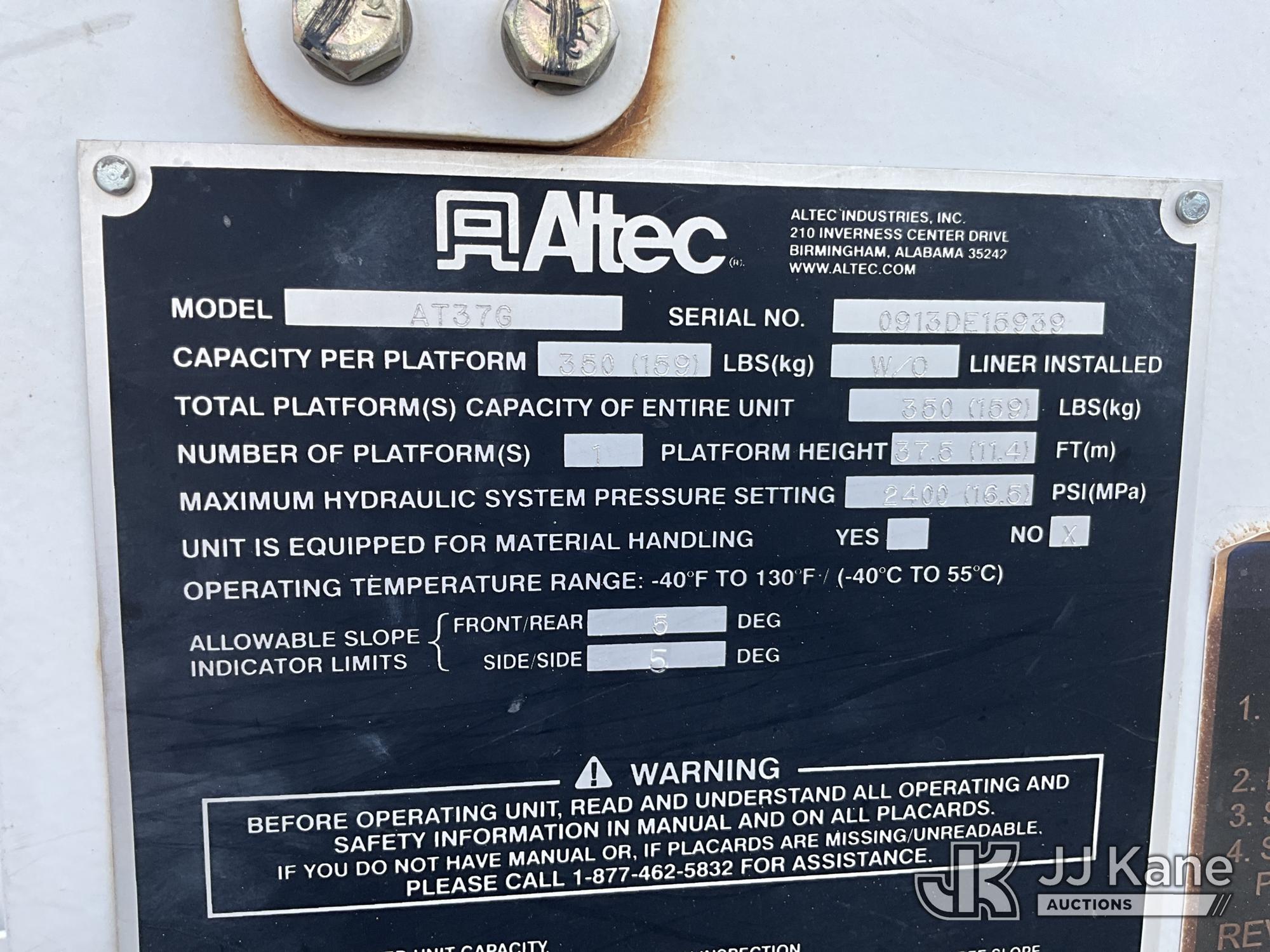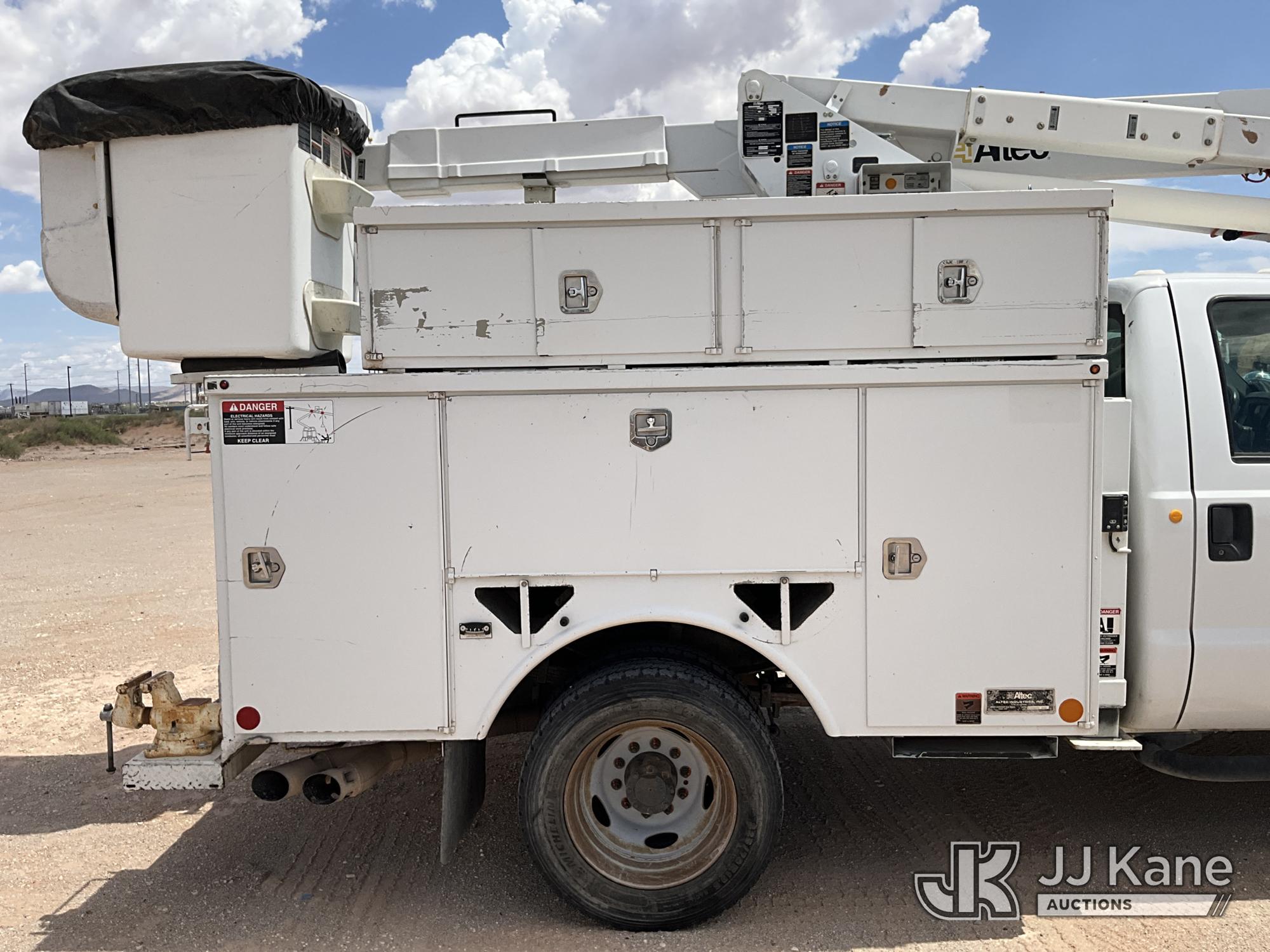 Altec AT37G, 42 ft, Articulating & Telescopic Bucket Truck s/n 0913DE15939, with single man bucket, mounted behind cab on 2014 Ford F550 Service Truck, 6.7L diesel, 4WD, manual, A/C, (176,653 miles) (Runs & Moves) (PTO Does Not Engage - Upper Condition Unknown, Vehicle Shuts Off When In Gear, Engine Tick, Check Engine Light On, Battery Indicator Light On) This is a Titled Item*