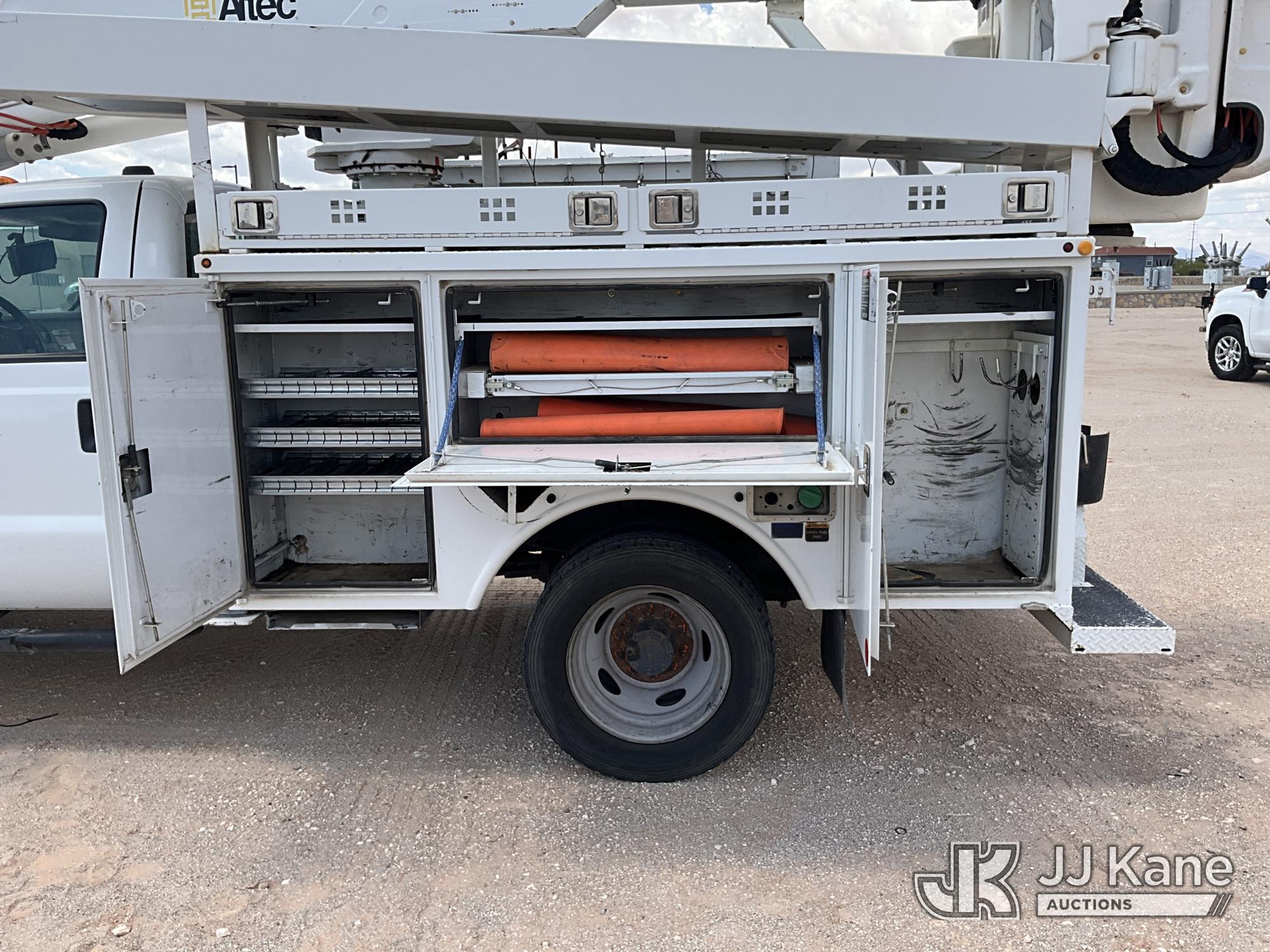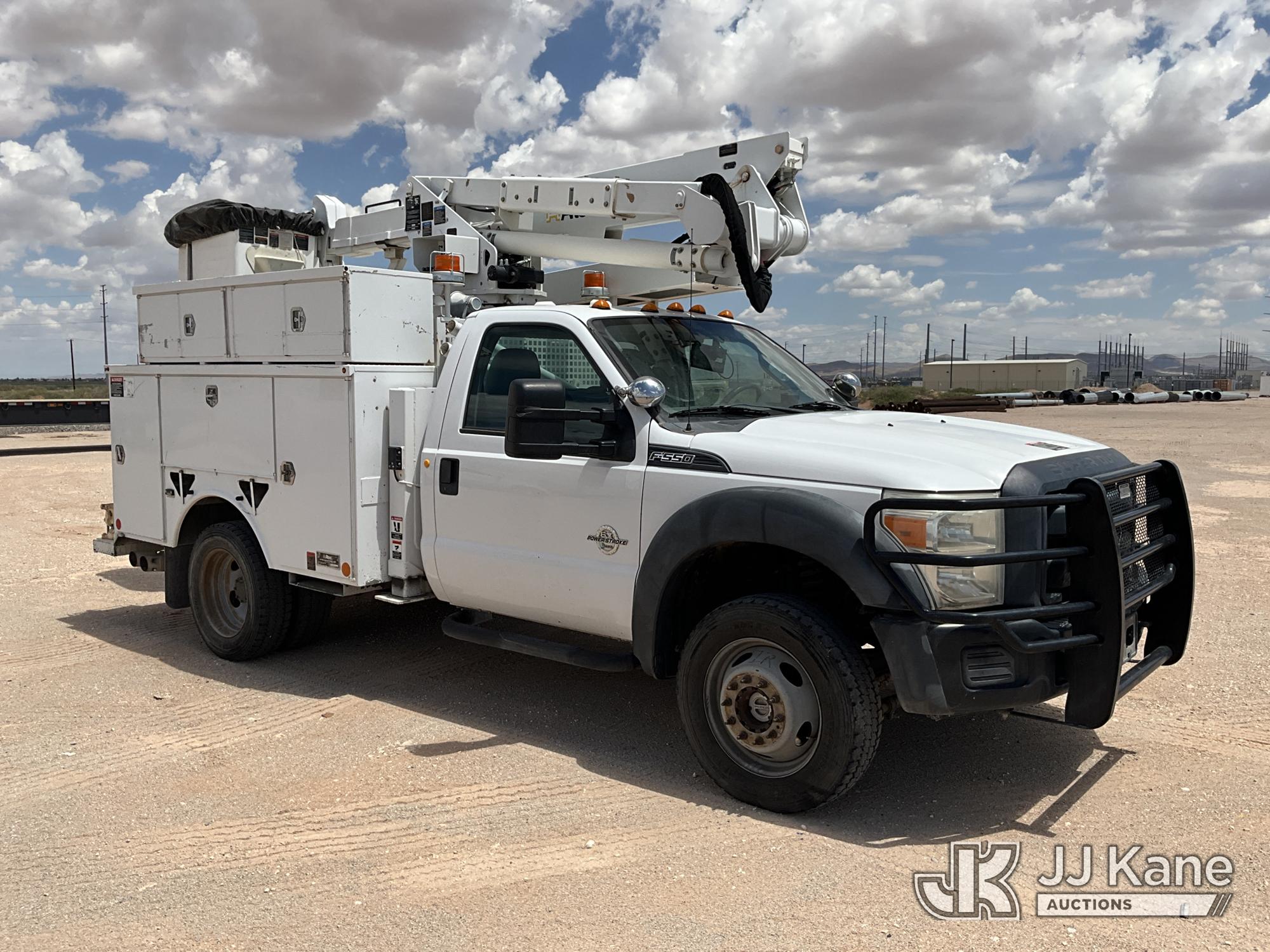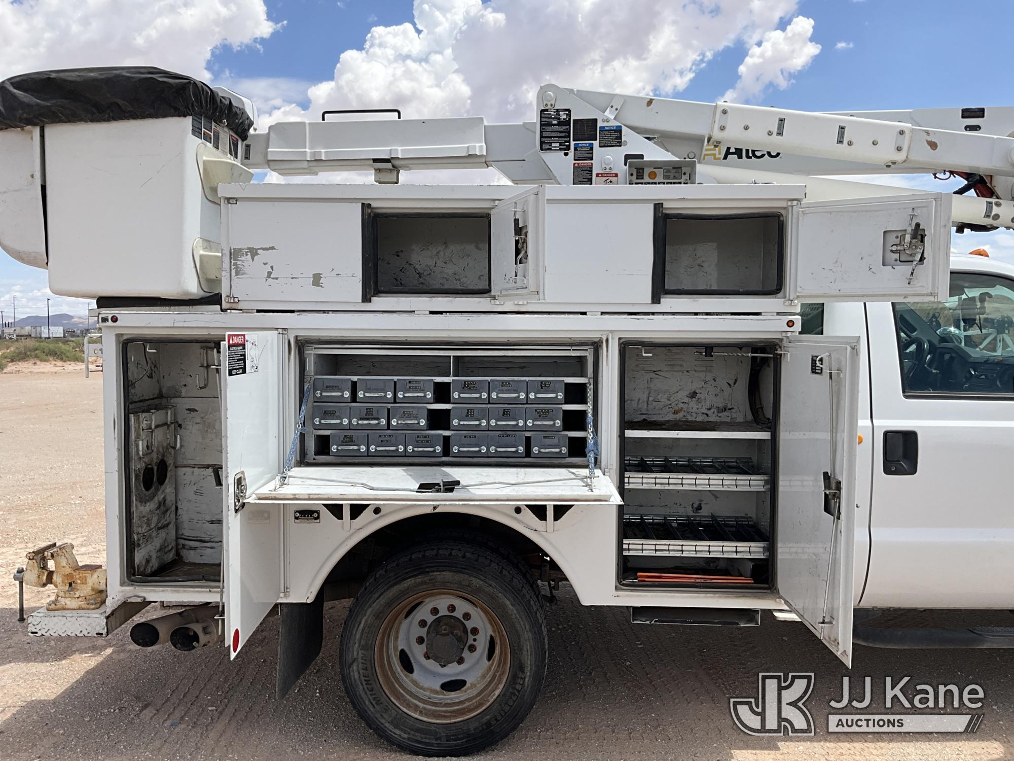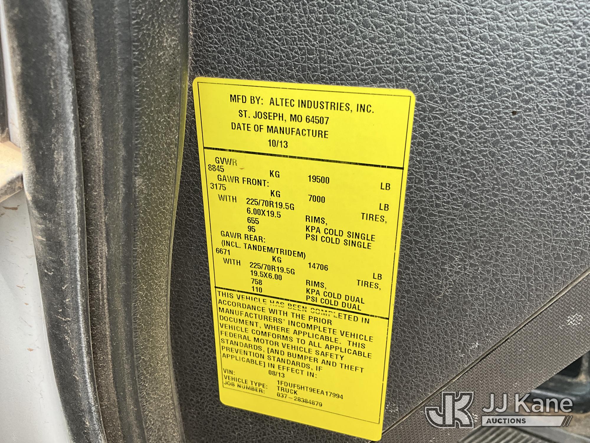 Altec AT37G, 42 ft, Articulating & Telescopic Bucket Truck s/n 0913DE15939, with single man bucket, mounted behind cab on 2014 Ford F550 Service Truck, 6.7L diesel, 4WD, manual, A/C, (176,653 miles) (Runs & Moves) (PTO Does Not Engage - Upper Condition Unknown, Vehicle Shuts Off When In Gear, Engine Tick, Check Engine Light On, Battery Indicator Light On) This is a Titled Item*
