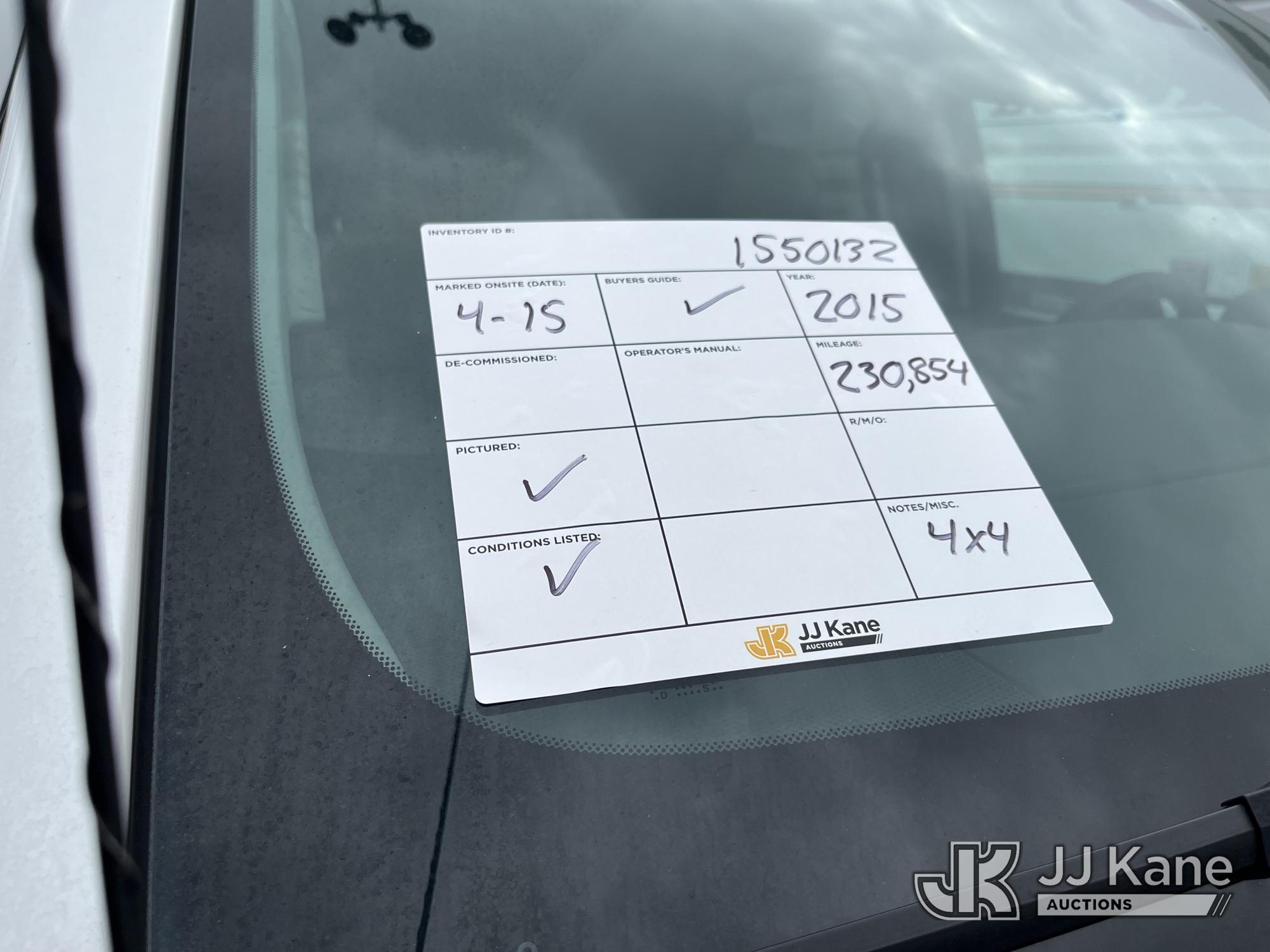 2015 GMC Sierra 2500HD Extended-Cab Pickup Truck, 6.0L V8 OHV 16V 4wd, FFV, 6-Speed Automatic, A/C, with service cap, (230,854 miles) (Not Running, Condition Unknown, Interior Damage, Steering Column Issue, Body & Rust Damage.) This is a Titled Item*