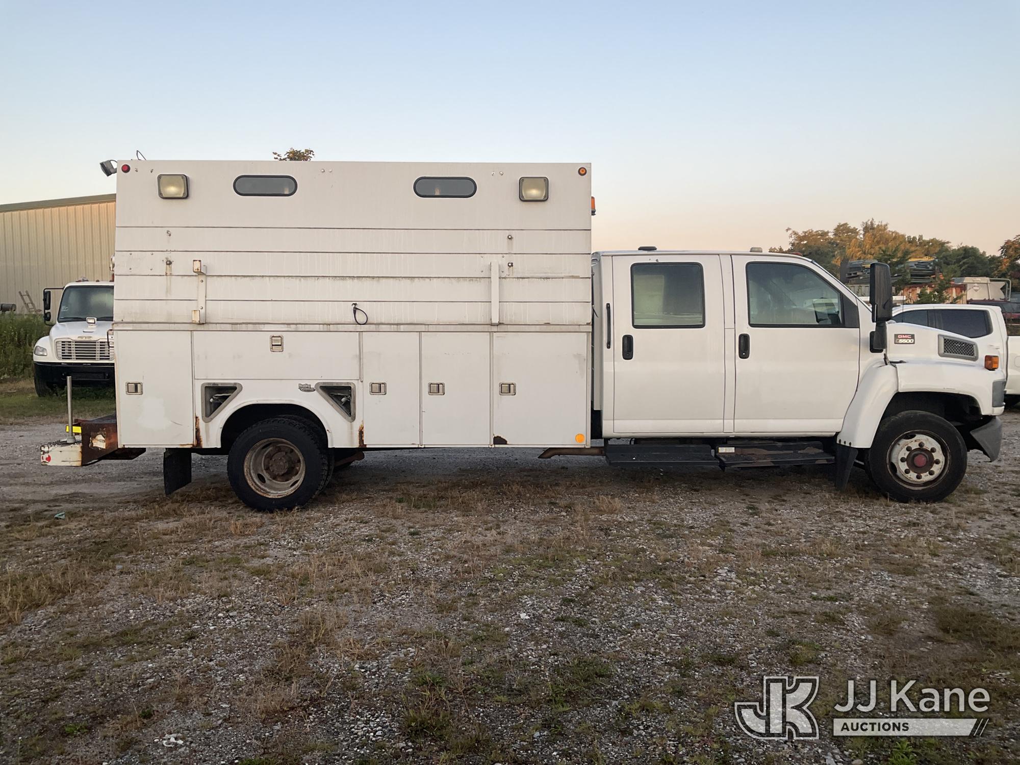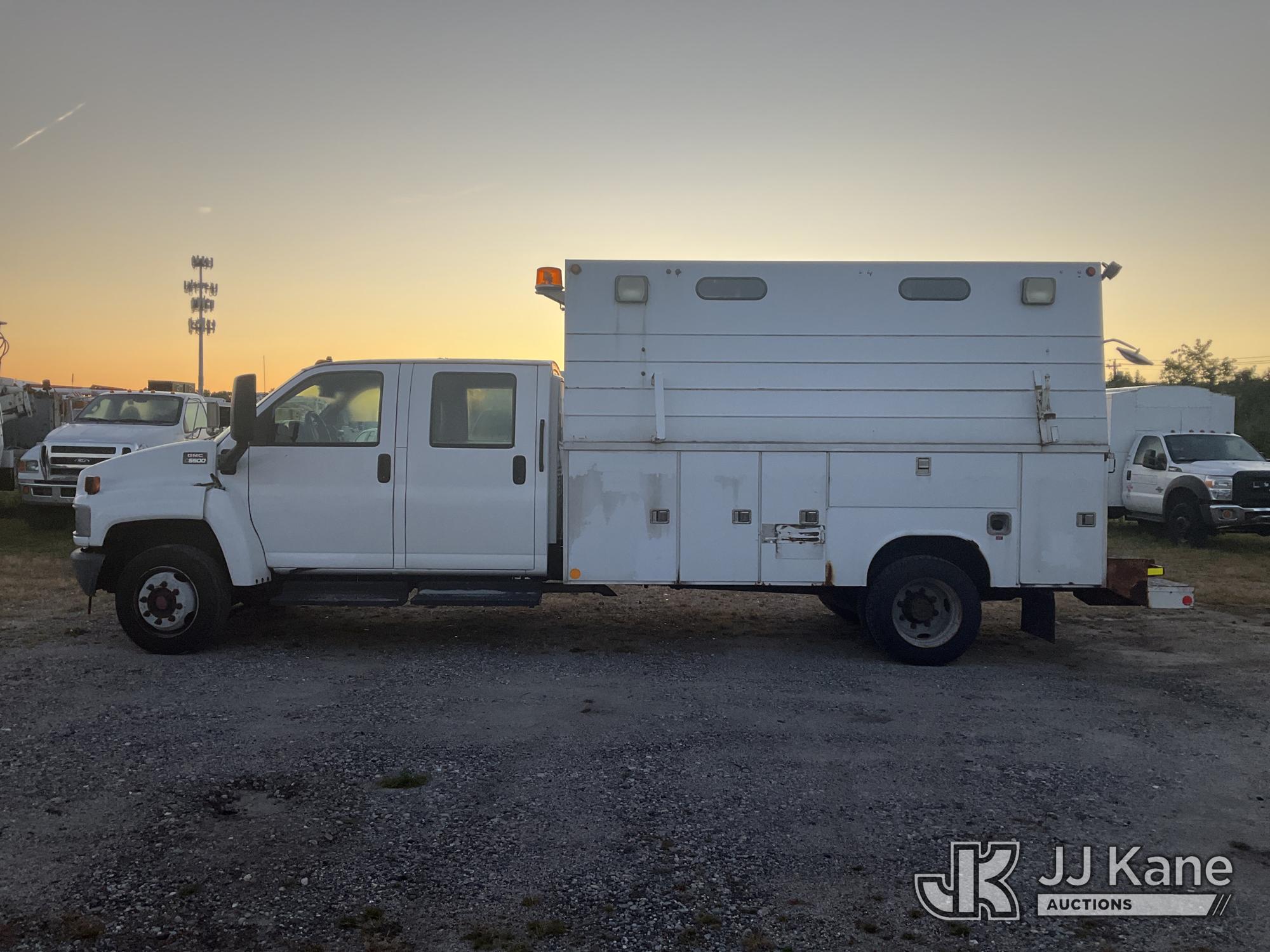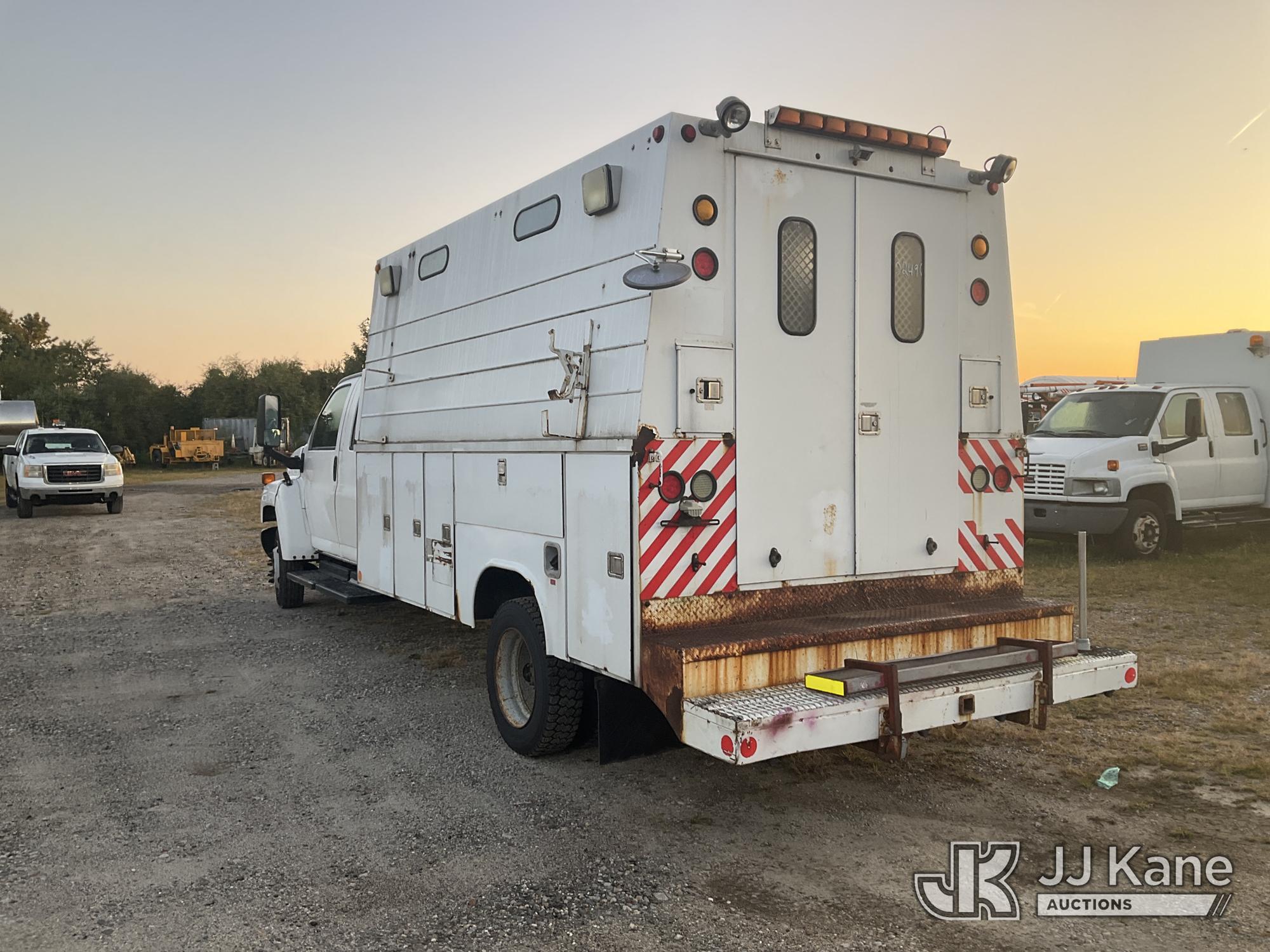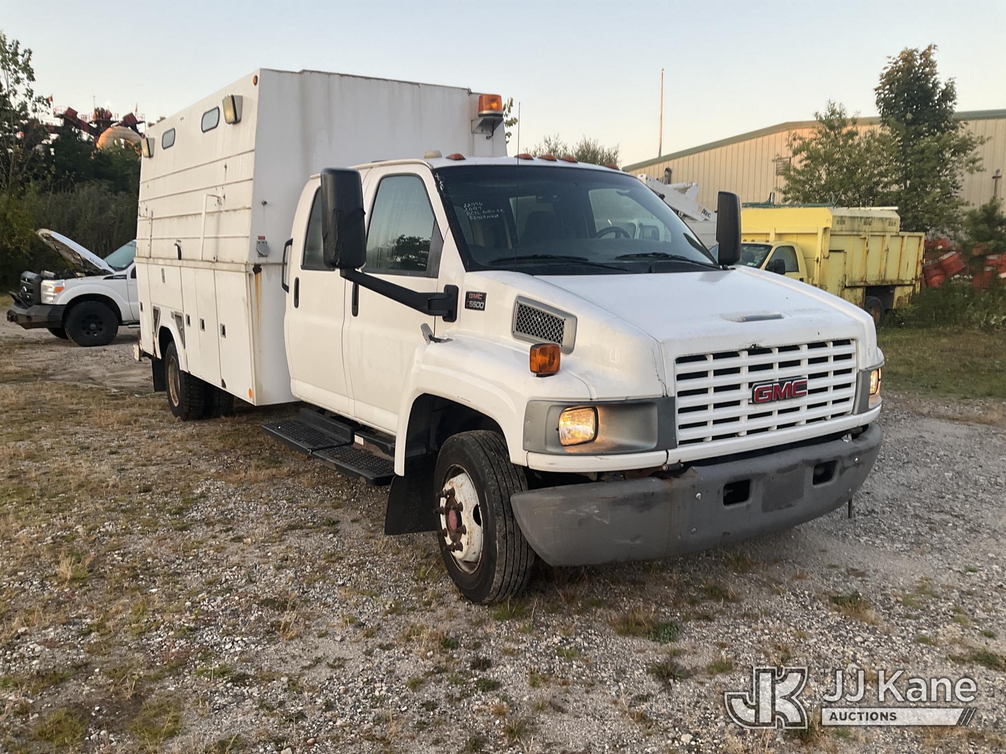 2007 GMC C5500 2WD Crew-Cab Enclosed Service Truck, 8-cyl gas, Auto, A/C, (53,424 miles) (Jump To Start, Runs & Moves, Body & Rust Damage) (Removal is by Appointment Only, Buyer MUST make a appointment prior to picking up, Buyer/Transporter Must have PAID IN FULL RELEASE. No onsite assistance available, Please Come prepared.) This is a Titled Item*