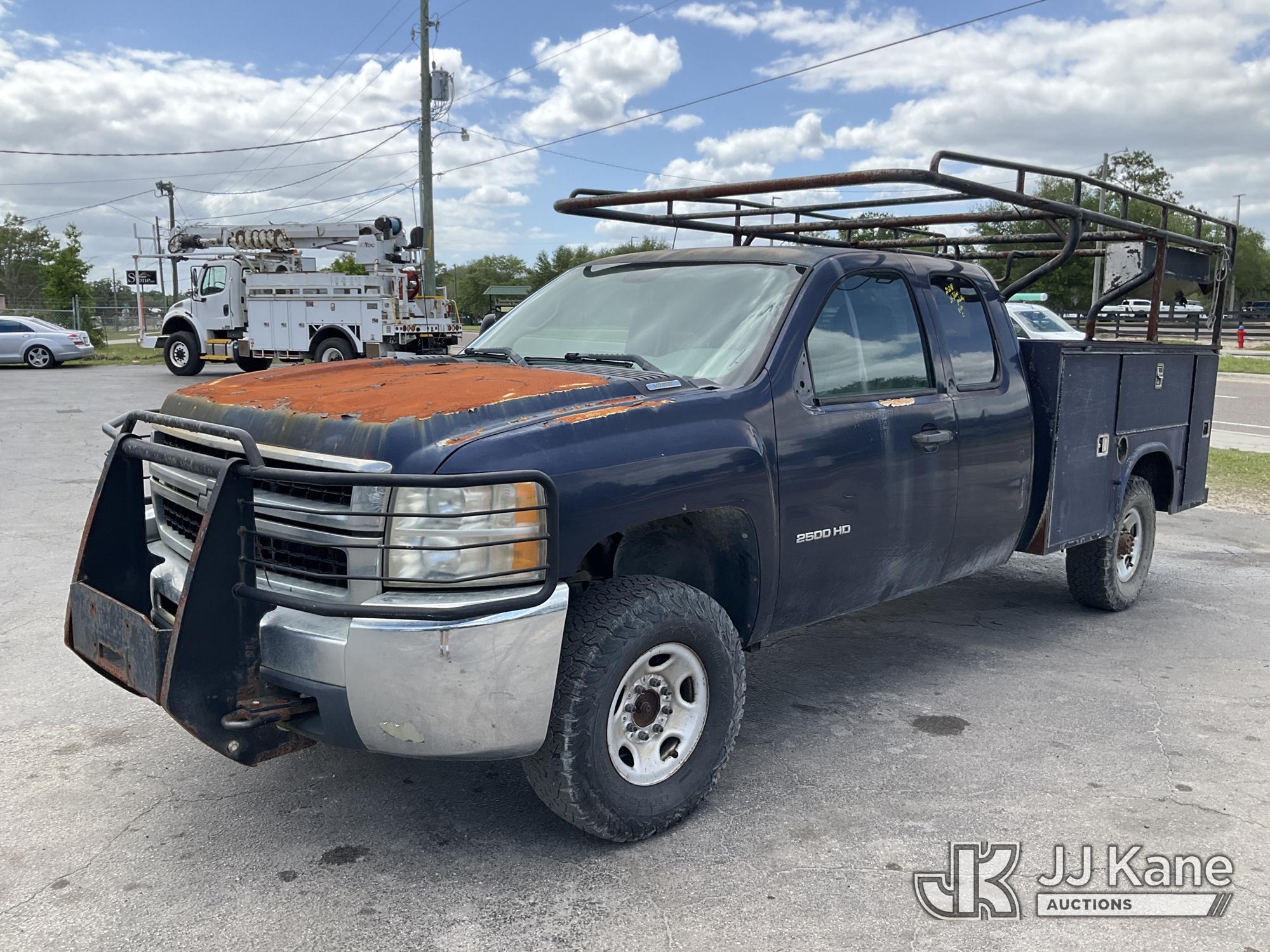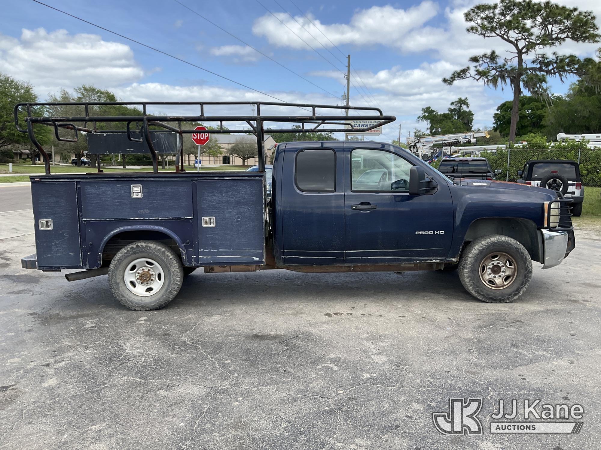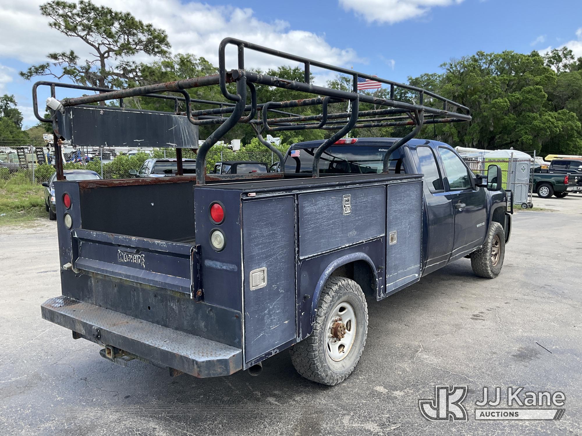 2010 Chevrolet Silverado 2500HD Extended-Cab Service Truck, 8-cyl gas, 4WD, Auto, A/C, with ladder rack, (224,079 miles) (Runs With Jump Box Only, Moves, Check Engine Light Is On, Serpentine Belt Is Off Has No Power Steering Can NOT Be Driven, Has Body Damage & Major Paint Peeling Damage With Surface Rust) This is a Titled Item*