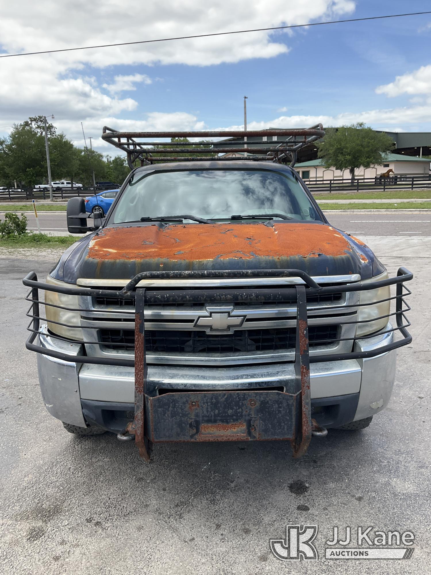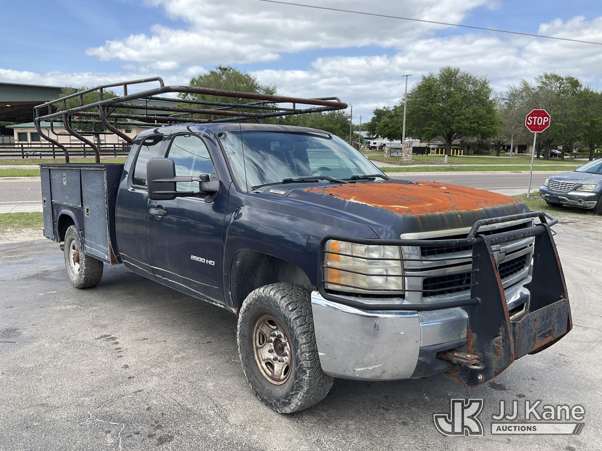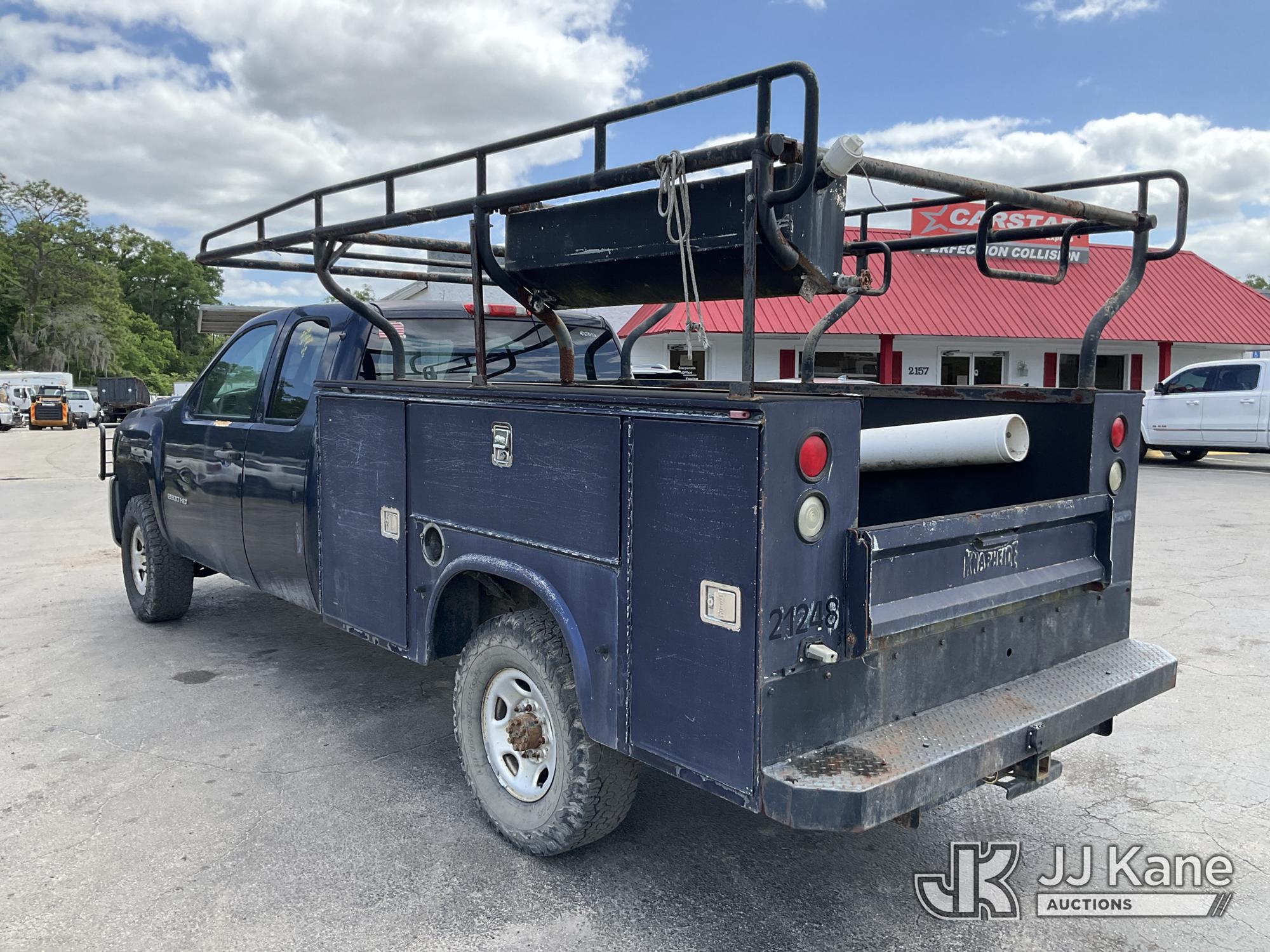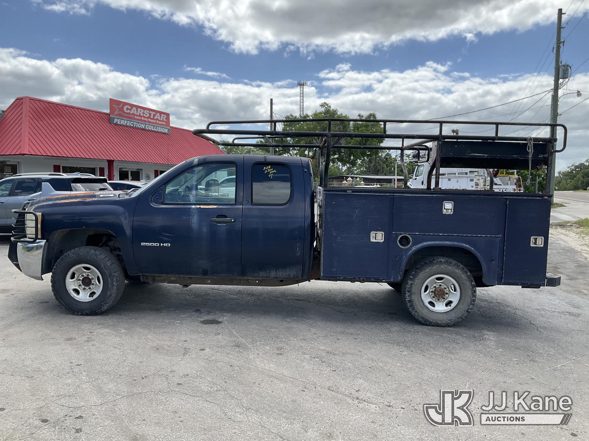 2010 Chevrolet Silverado 2500HD Extended-Cab Service Truck, 8-cyl gas, 4WD, Auto, A/C, with ladder rack, (224,079 miles) (Runs With Jump Box Only, Moves, Check Engine Light Is On, Serpentine Belt Is Off Has No Power Steering Can NOT Be Driven, Has Body Damage & Major Paint Peeling Damage With Surface Rust) This is a Titled Item*