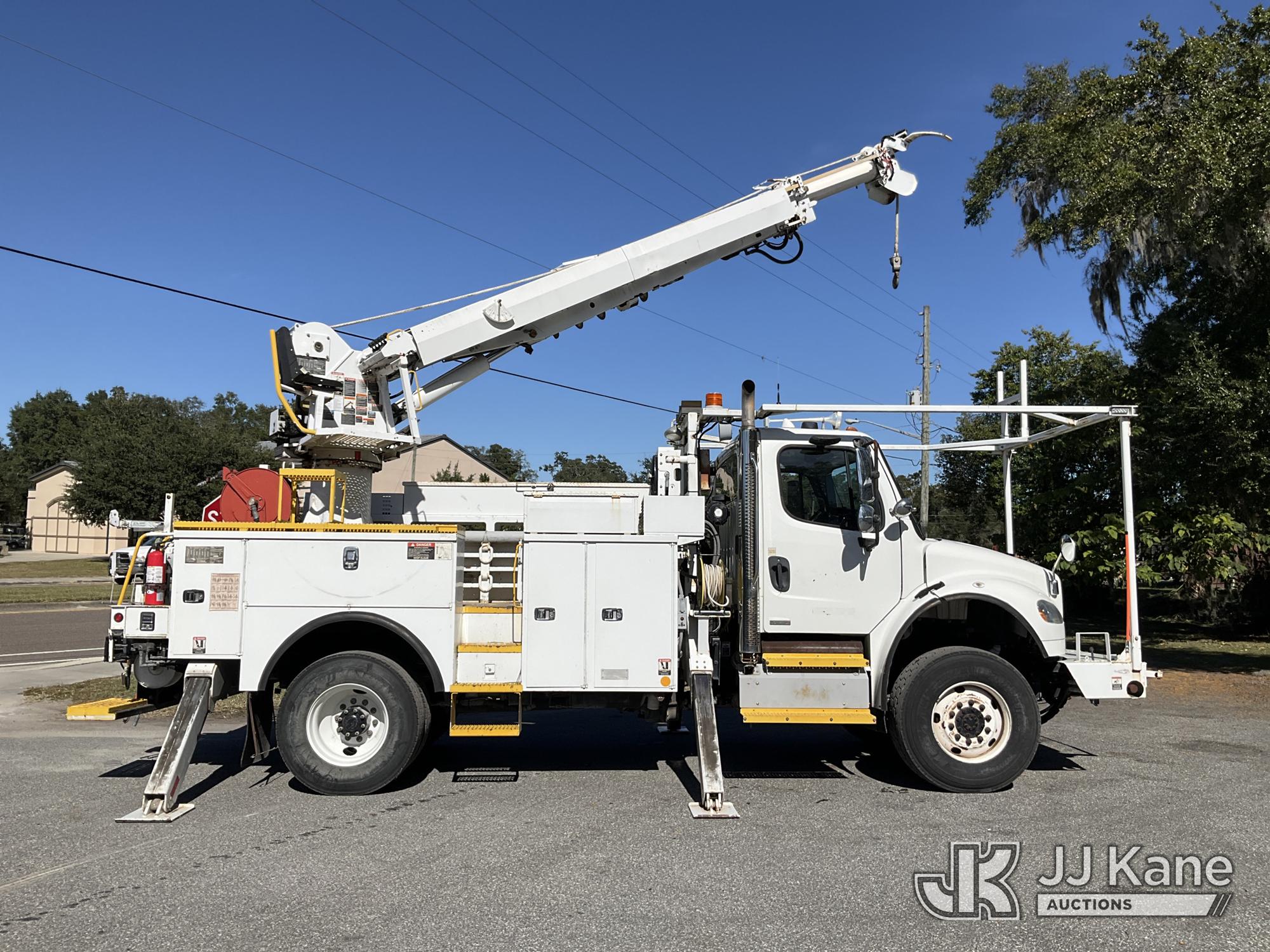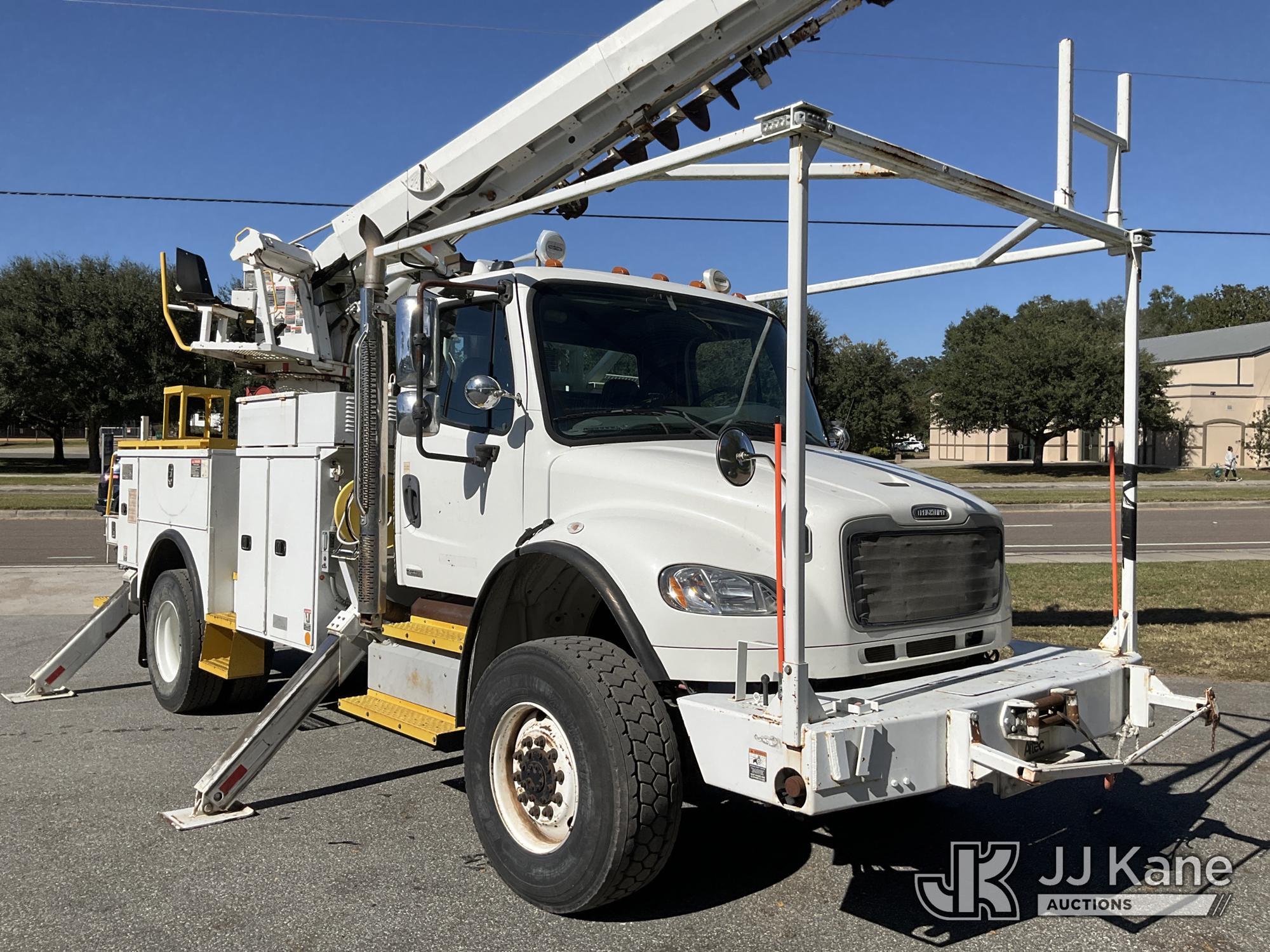 Altec DM47TH, 23,790 Lb Digger Derrick s/n 1011DV5346, with 47 ft. sheave height, 3 section hyd boom, 2 spd digger, heel winch, pole guides, remote, riding console & 4 hyd outriggers, rear mounted on 2012 Freightliner M2 106 4x4 Utility Truck, 8.3L L6 diesel, Auto, A/C, with front winch, (70,592 miles) (Duke Unit) (Runs, Moves) (ABS Light On, Upper Unit Was Working, PTO is Not Engaging) This is a Titled Item*