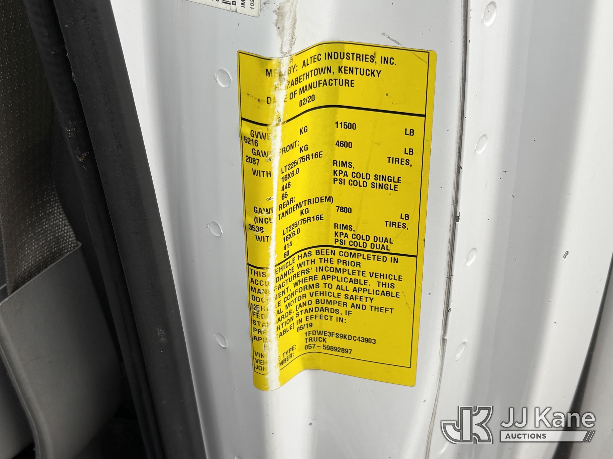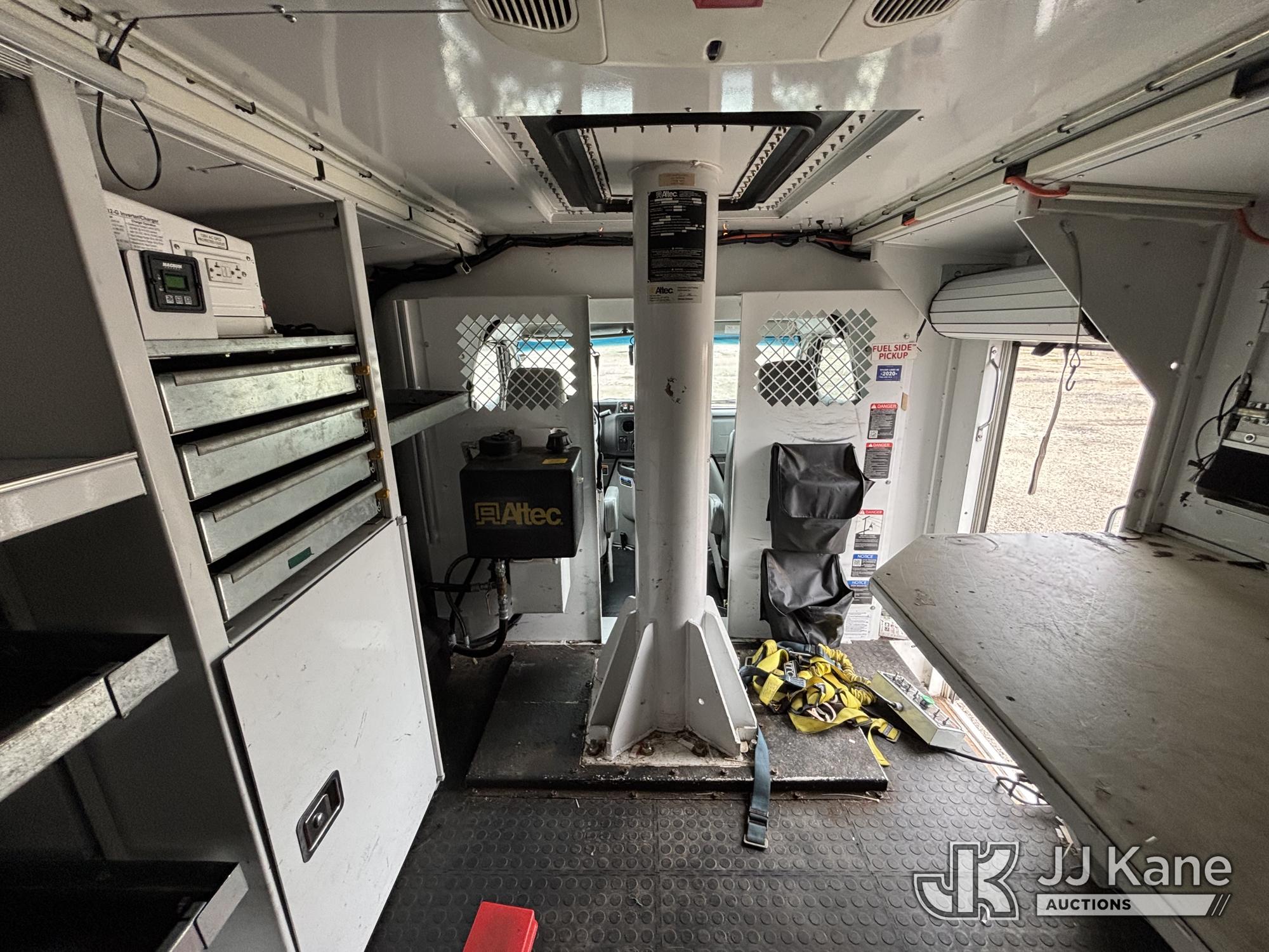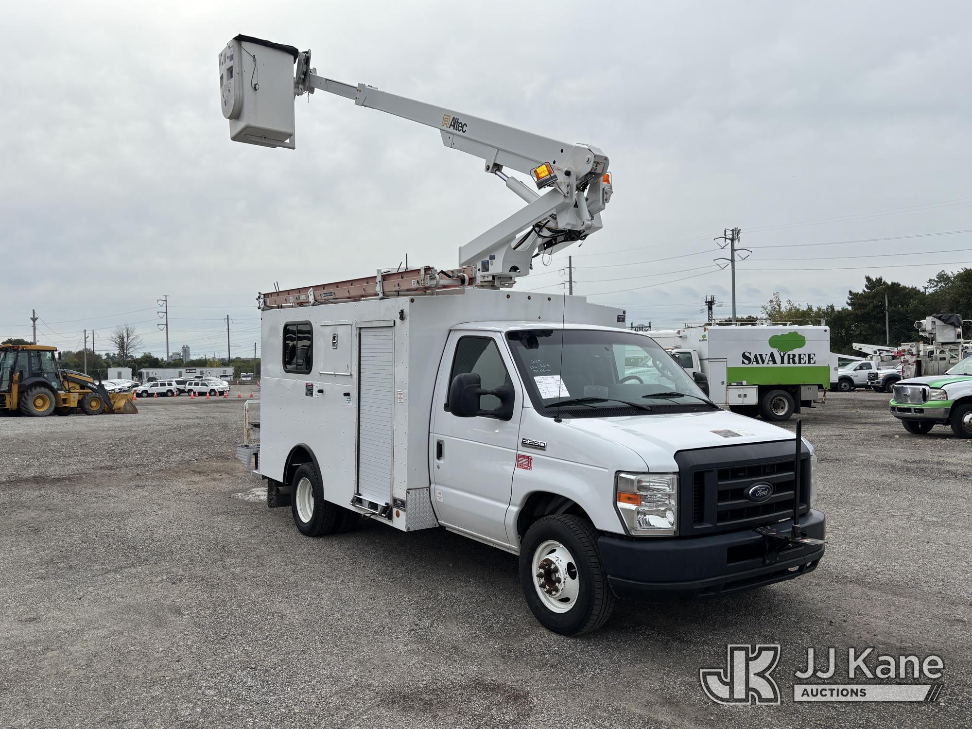 Altec AT200-A, 35 ft, Telescopic Non-Insulated Bucket Van s/n 1119BV26501, with single-man bucket, mounted on 2019 Ford E350 Cutaway Enclosed Service Van, 10-cyl gas, Auto, A/C, with Cummins/Onan Generator, Gas Pwrd., (137,170 miles) (Runs, Moves & Upper Operates, Body Damage, Generator Runs) This is a Titled Item*