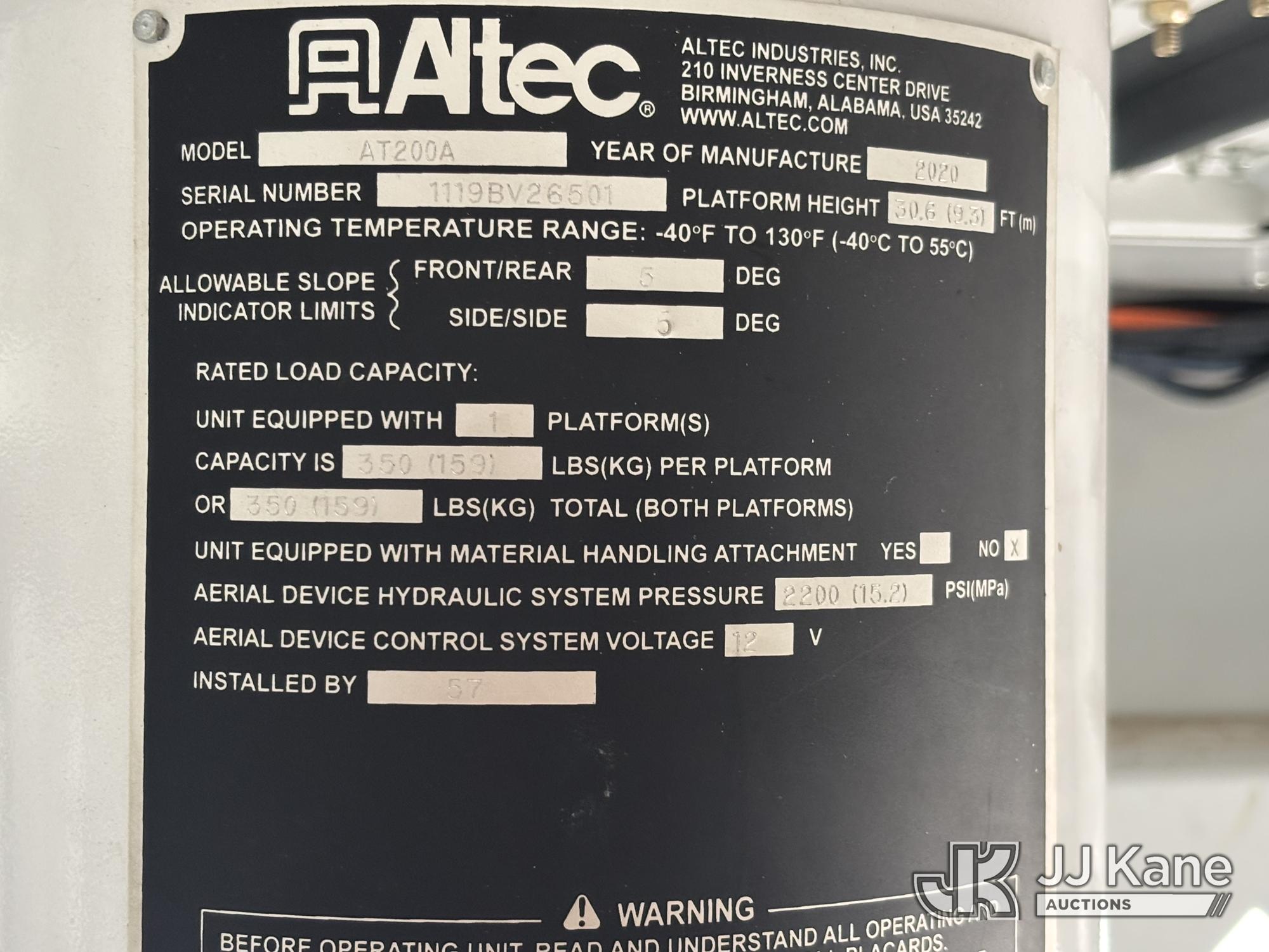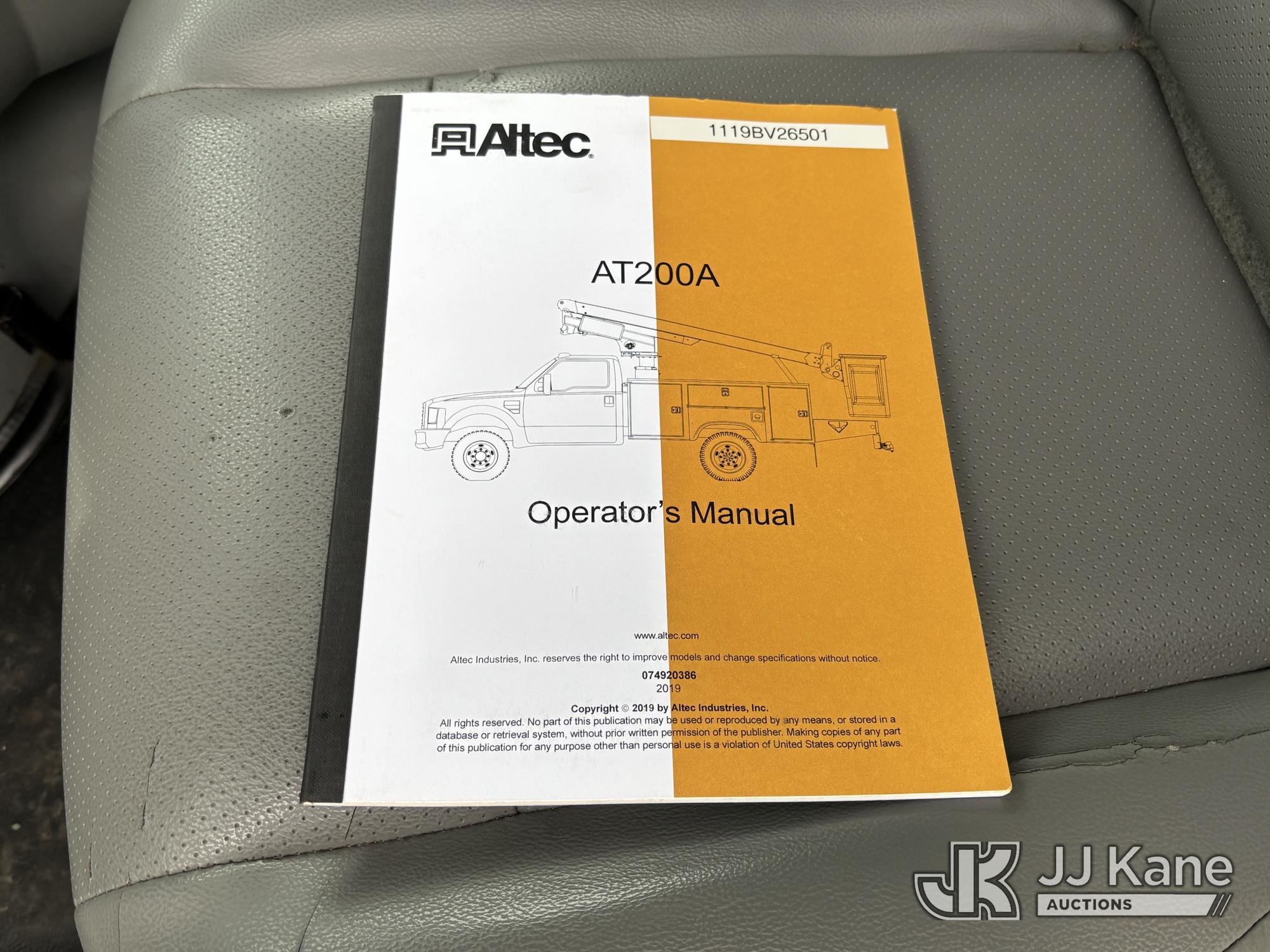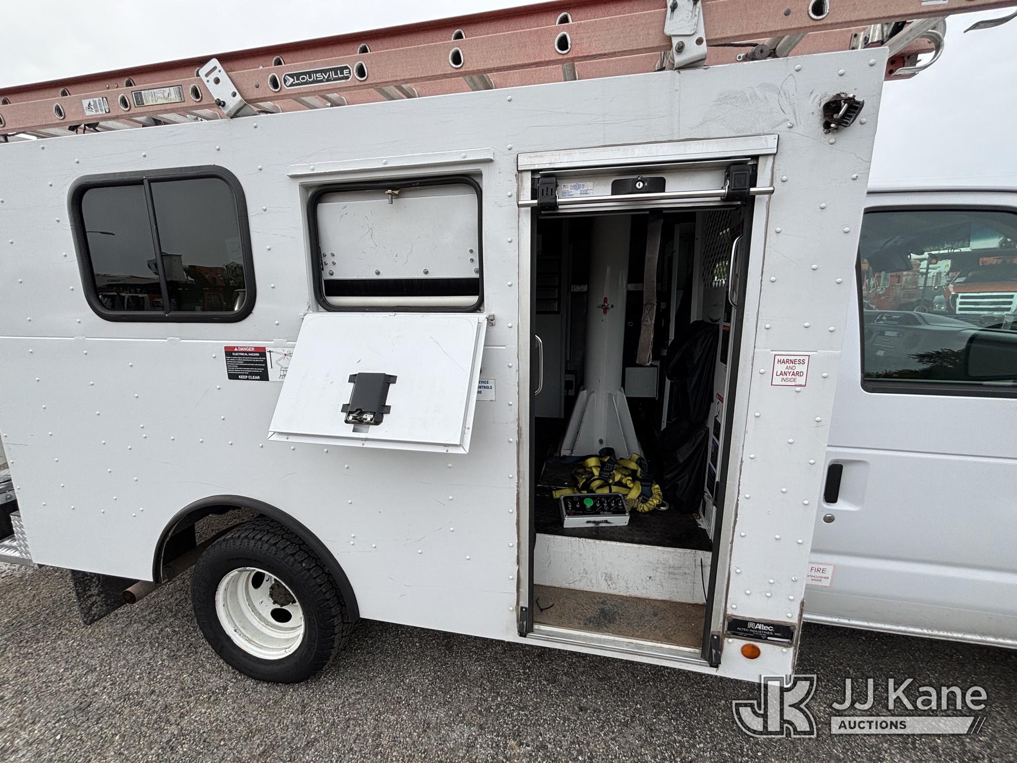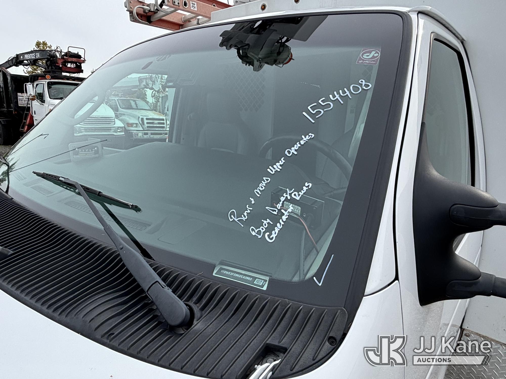 Altec AT200-A, 35 ft, Telescopic Non-Insulated Bucket Van s/n 1119BV26501, with single-man bucket, mounted on 2019 Ford E350 Cutaway Enclosed Service Van, 10-cyl gas, Auto, A/C, with Cummins/Onan Generator, Gas Pwrd., (137,170 miles) (Runs, Moves & Upper Operates, Body Damage, Generator Runs) This is a Titled Item*