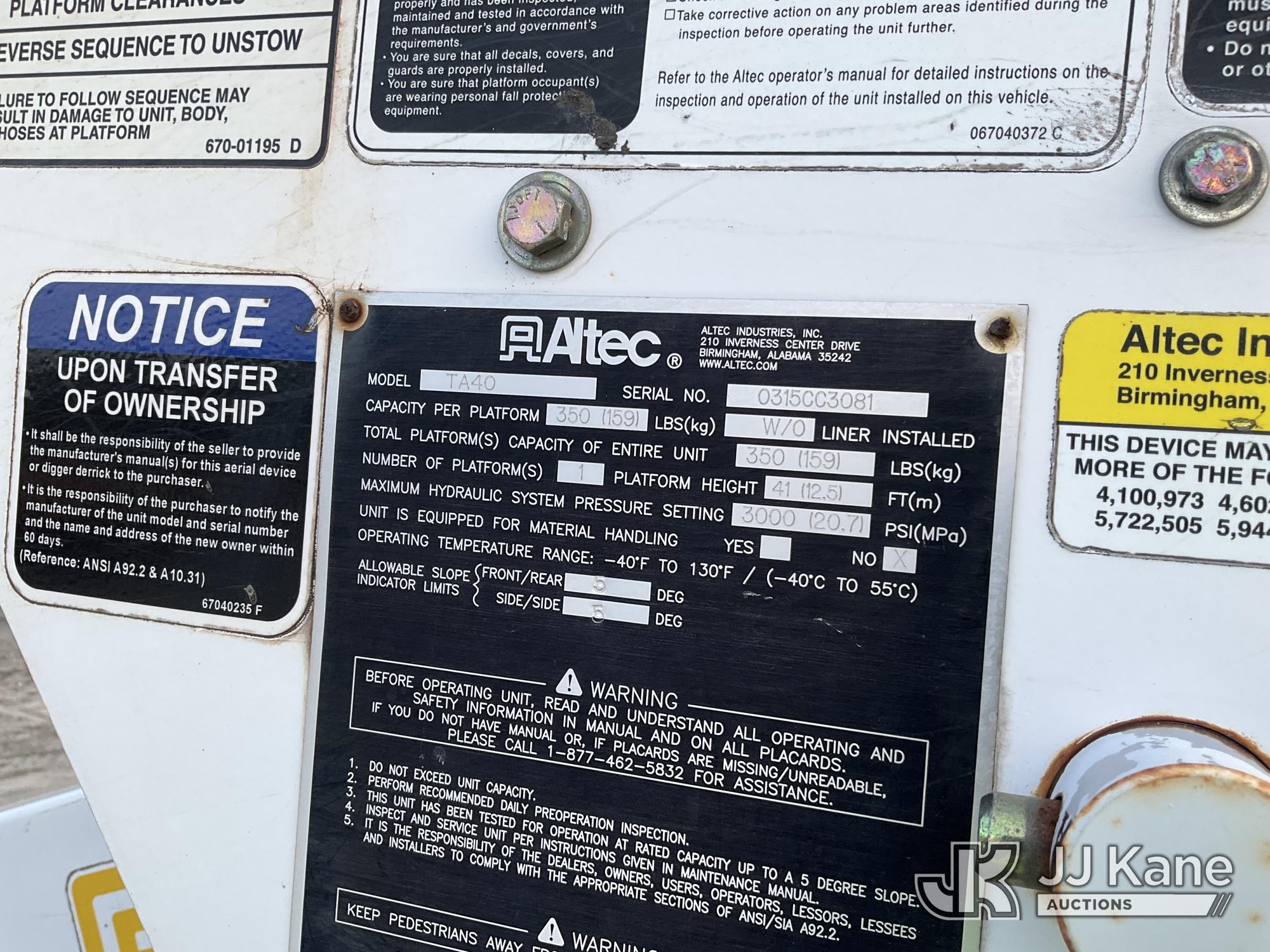 Altec TA40, 45 ft, Articulating & Telescopic Bucket Truck s/n 0315CC3081, with single-man bucket, mounted behind cab on 2016 Freightliner M2 106 Utility Truck, Cummins 6.7L diesel, Auto, A/C, (165,516 miles) (Runs, Moves, & Upper Operates) (Jump To Start, Check Engine Lights On) (TITLE DELAY) This is a Titled Item*