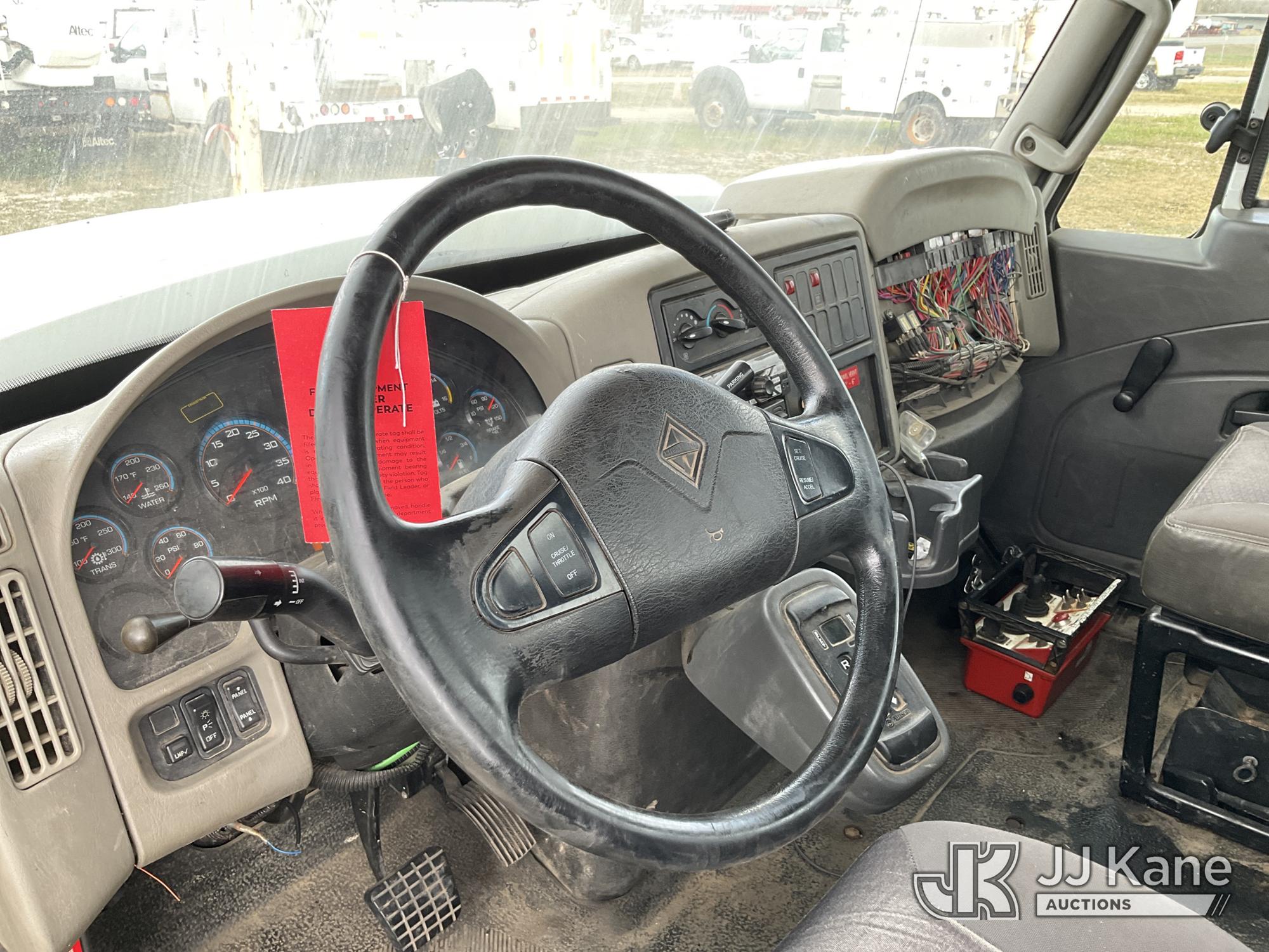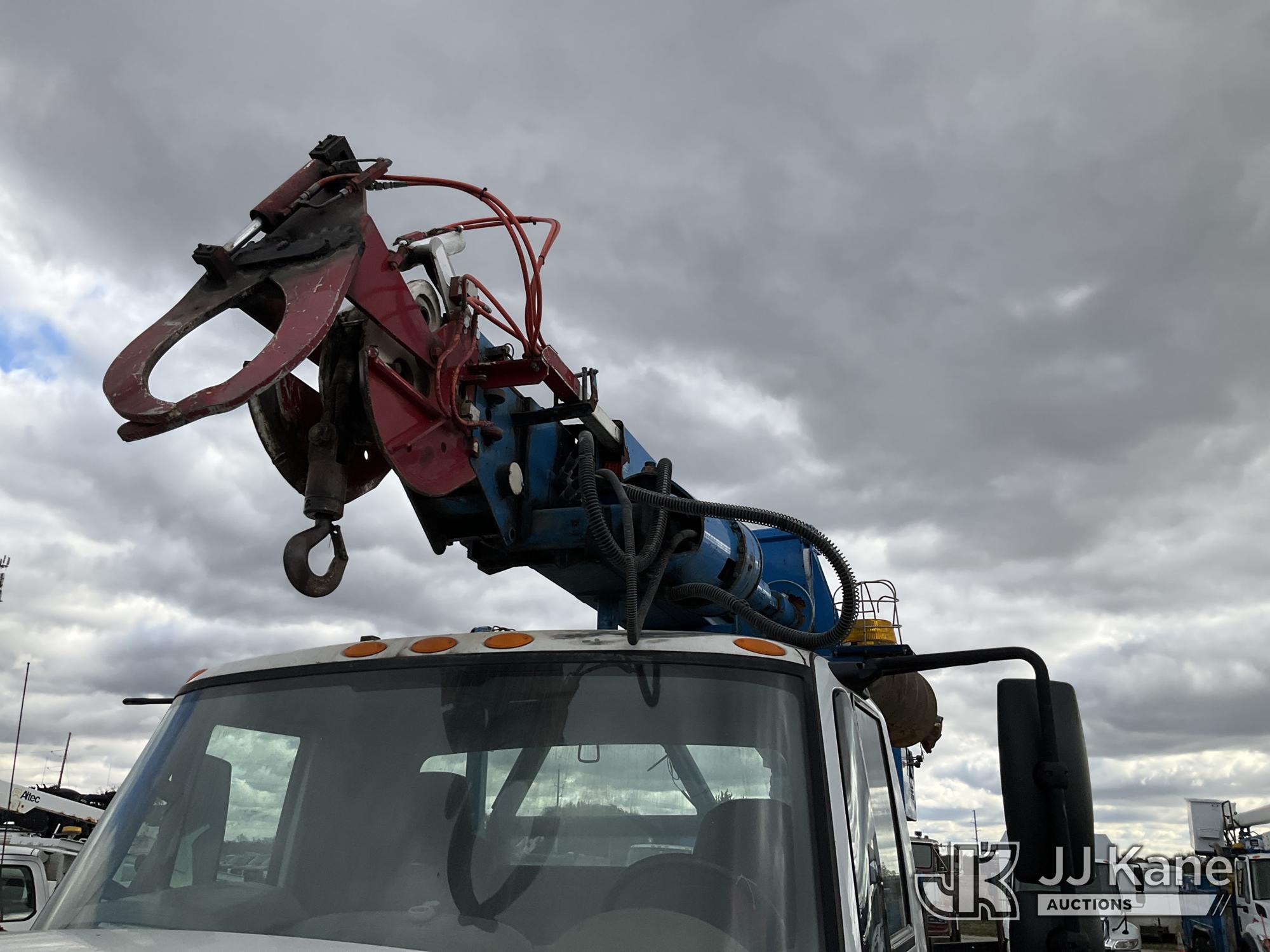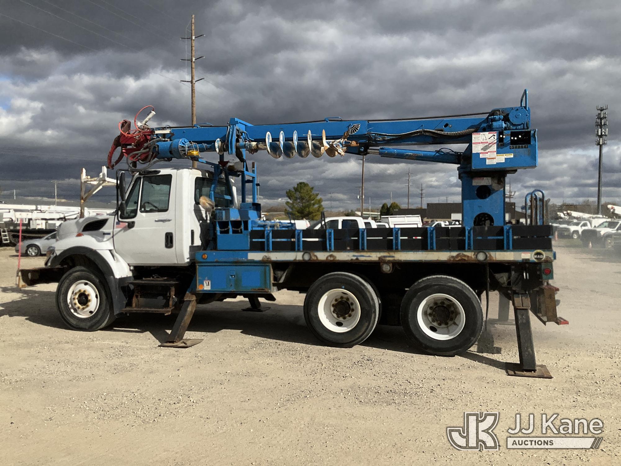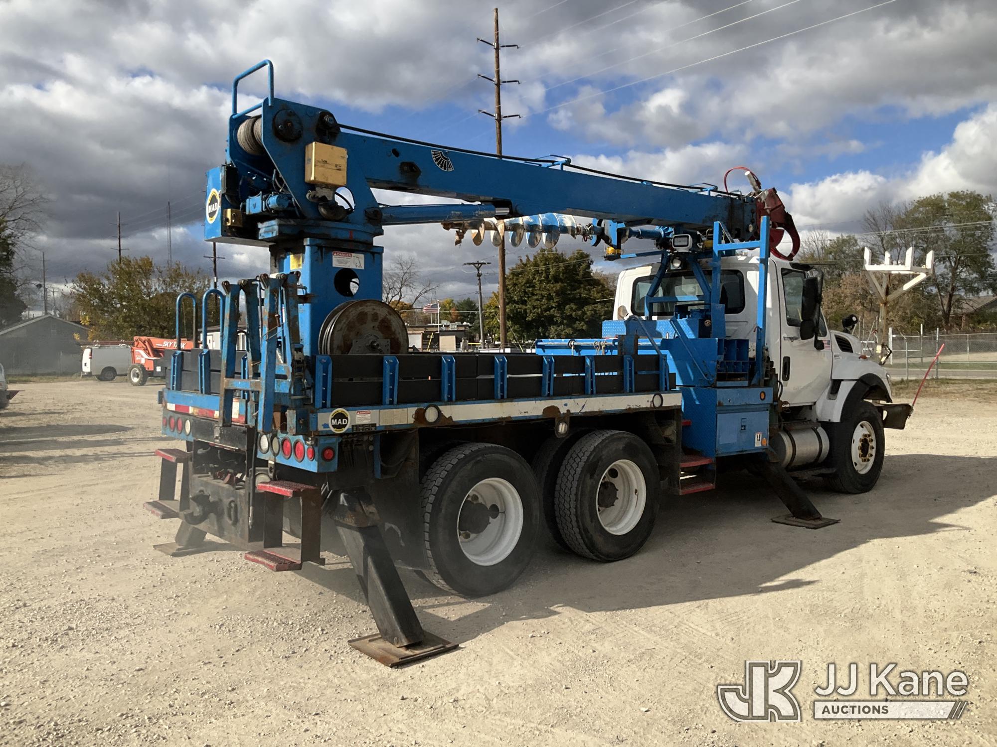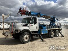 Terex Commander C4047, Digger Derrick s/n 2110544708, with 47 ft. sheave height, 3 section hydraulic boom, two speed auger, four hydraulic outriggers, pole guide, heel winch, pedestal mounted controls, wireless remote - condition unknown, rear mounted on 2012 International 7400 T/A Flatbed/Utility Truck, 7.6L L6 DIESEL 6X4, Auto, A/C, (Runs Rough, Moves, PTO Engages, Upper Condition Unknown) (Smokes - Smells Like Unburnt Fuel, Knocking Noise, Hard Starting, Jump to Start, Remote Condition Unknown - Battery Dead, Upper Controls Unresponsive, Rust, Upper Placard Missing, Unit May Need To Be Towed Away Due To Engine Issues) (Seller States unit removed from service due to: Engine Knock Noise, Smoking Out Exhaust, Transmission Will Not Shift) (Requires ANSI Inspection) This is a Titled Item*