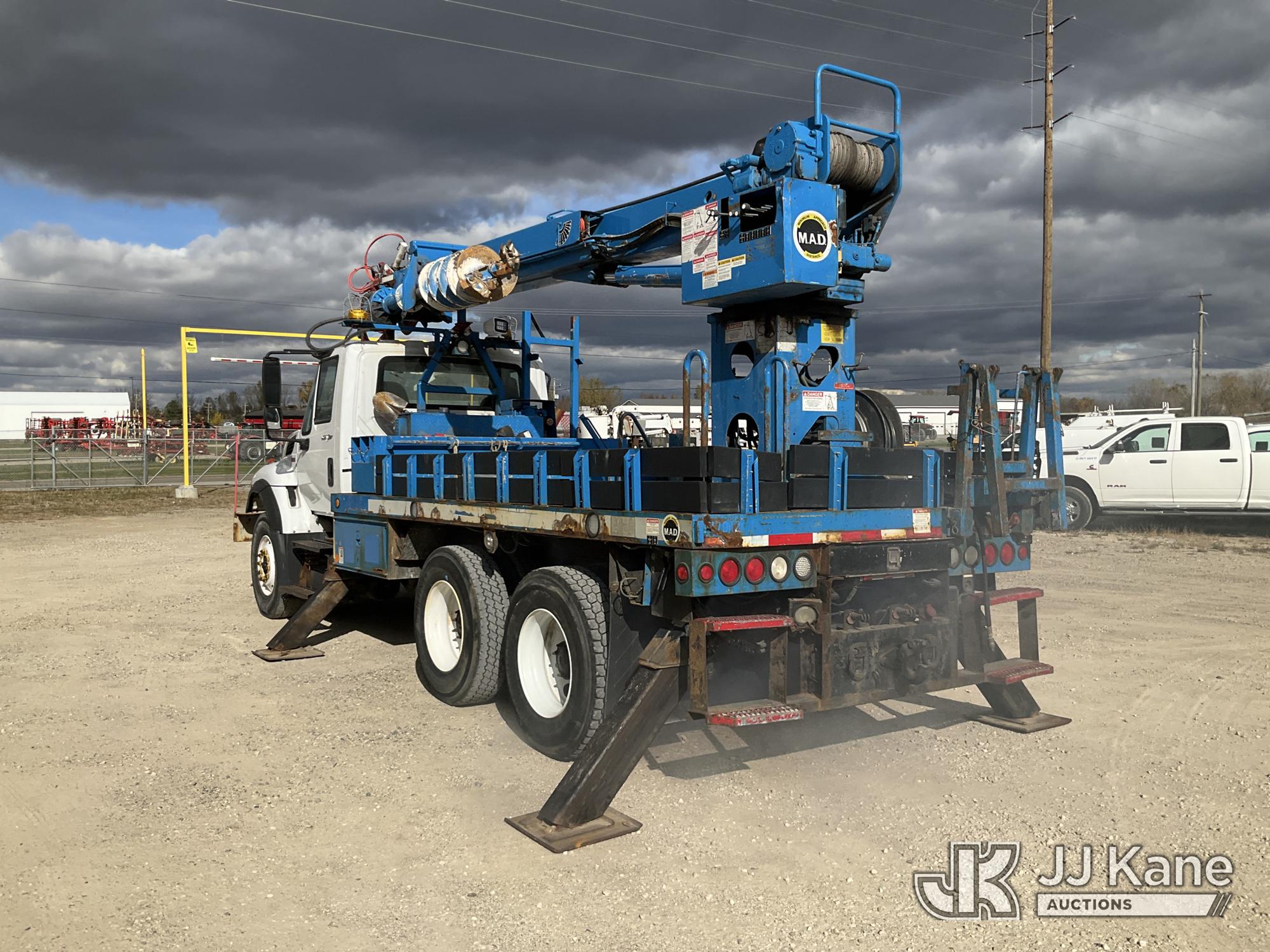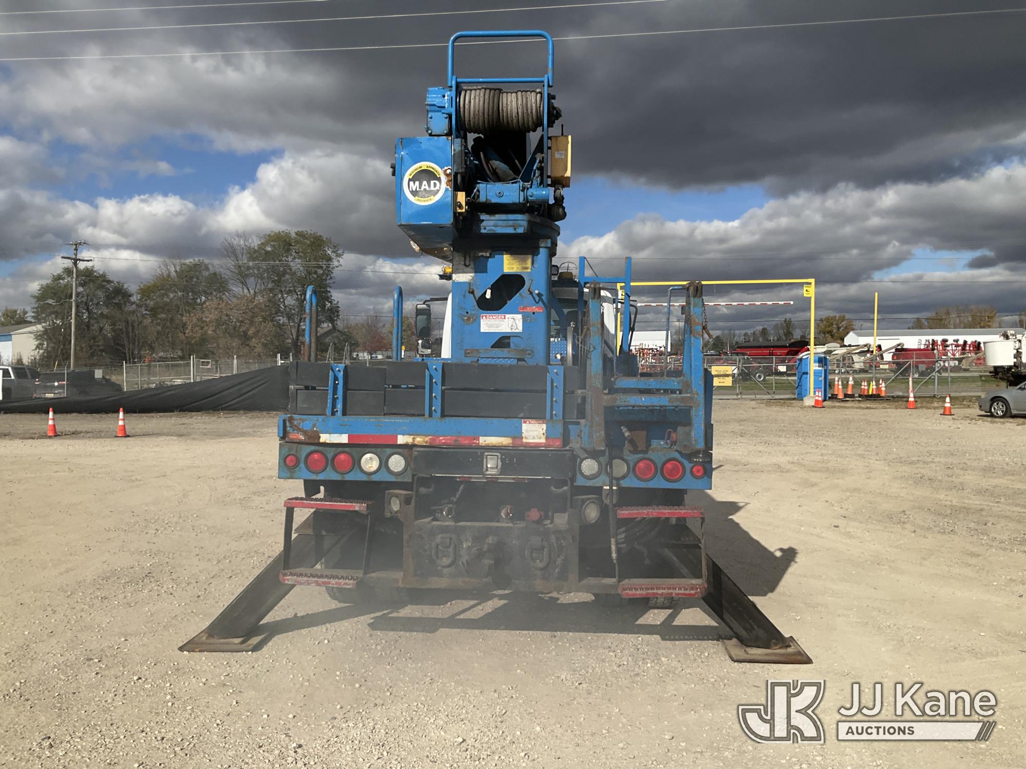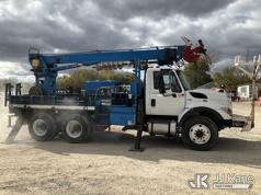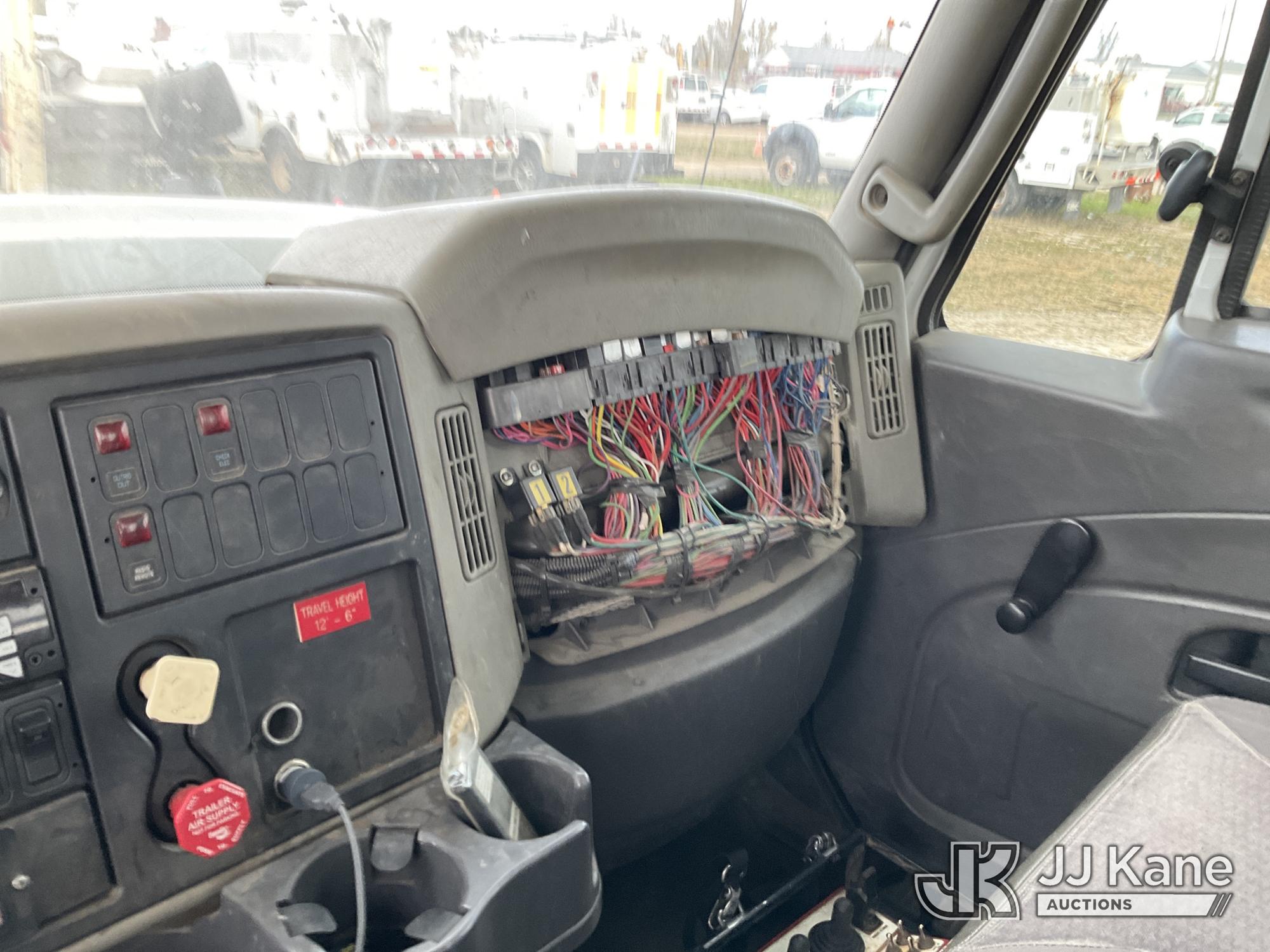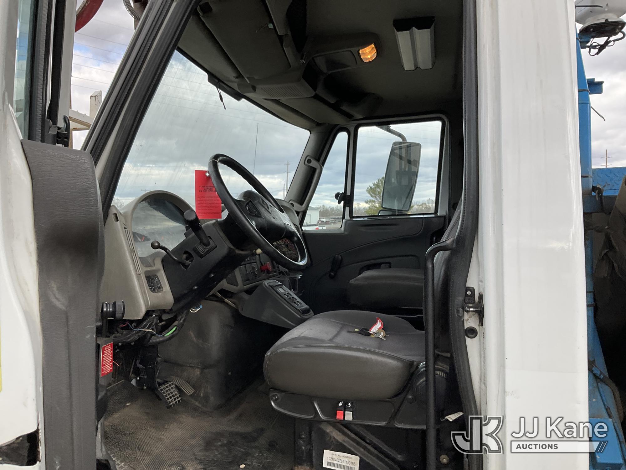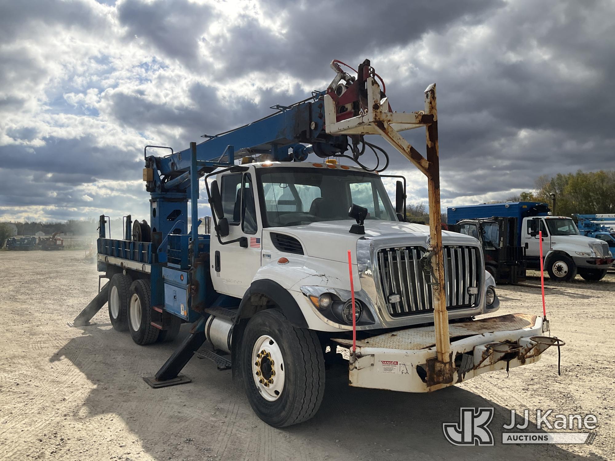 Terex Commander C4047, Digger Derrick s/n 2110544708, with 47 ft. sheave height, 3 section hydraulic boom, two speed auger, four hydraulic outriggers, pole guide, heel winch, pedestal mounted controls, wireless remote - condition unknown, rear mounted on 2012 International 7400 T/A Flatbed/Utility Truck, 7.6L L6 DIESEL 6X4, Auto, A/C, (Runs Rough, Moves, PTO Engages, Upper Condition Unknown) (Smokes - Smells Like Unburnt Fuel, Knocking Noise, Hard Starting, Jump to Start, Remote Condition Unknown - Battery Dead, Upper Controls Unresponsive, Rust, Upper Placard Missing, Unit May Need To Be Towed Away Due To Engine Issues) (Seller States unit removed from service due to: Engine Knock Noise, Smoking Out Exhaust, Transmission Will Not Shift) (Requires ANSI Inspection) This is a Titled Item*