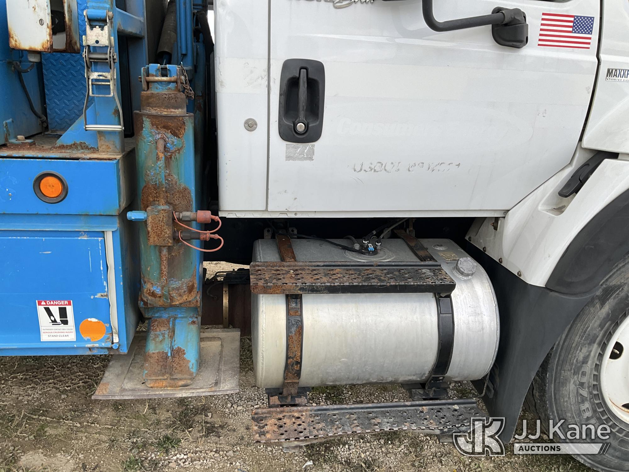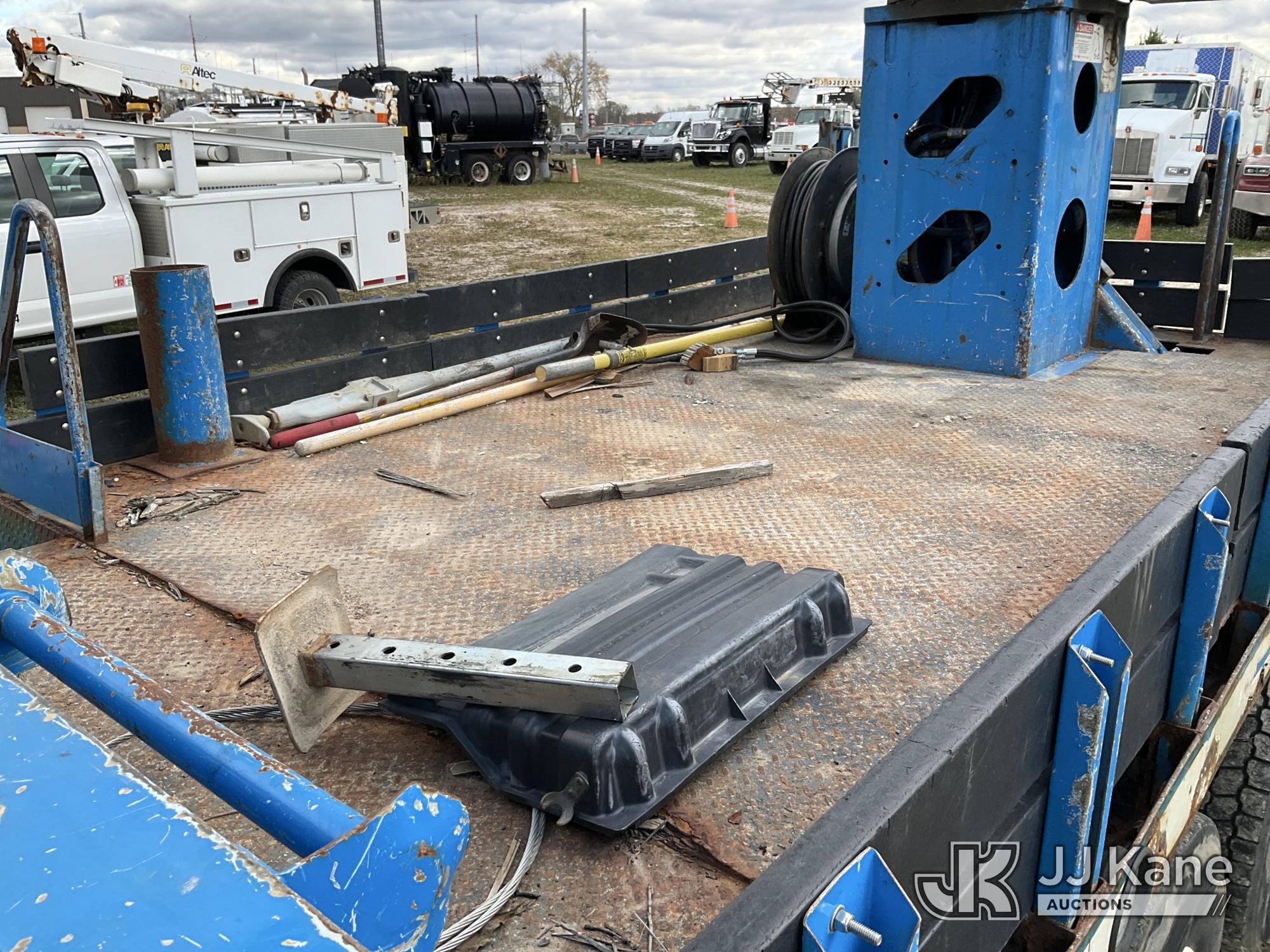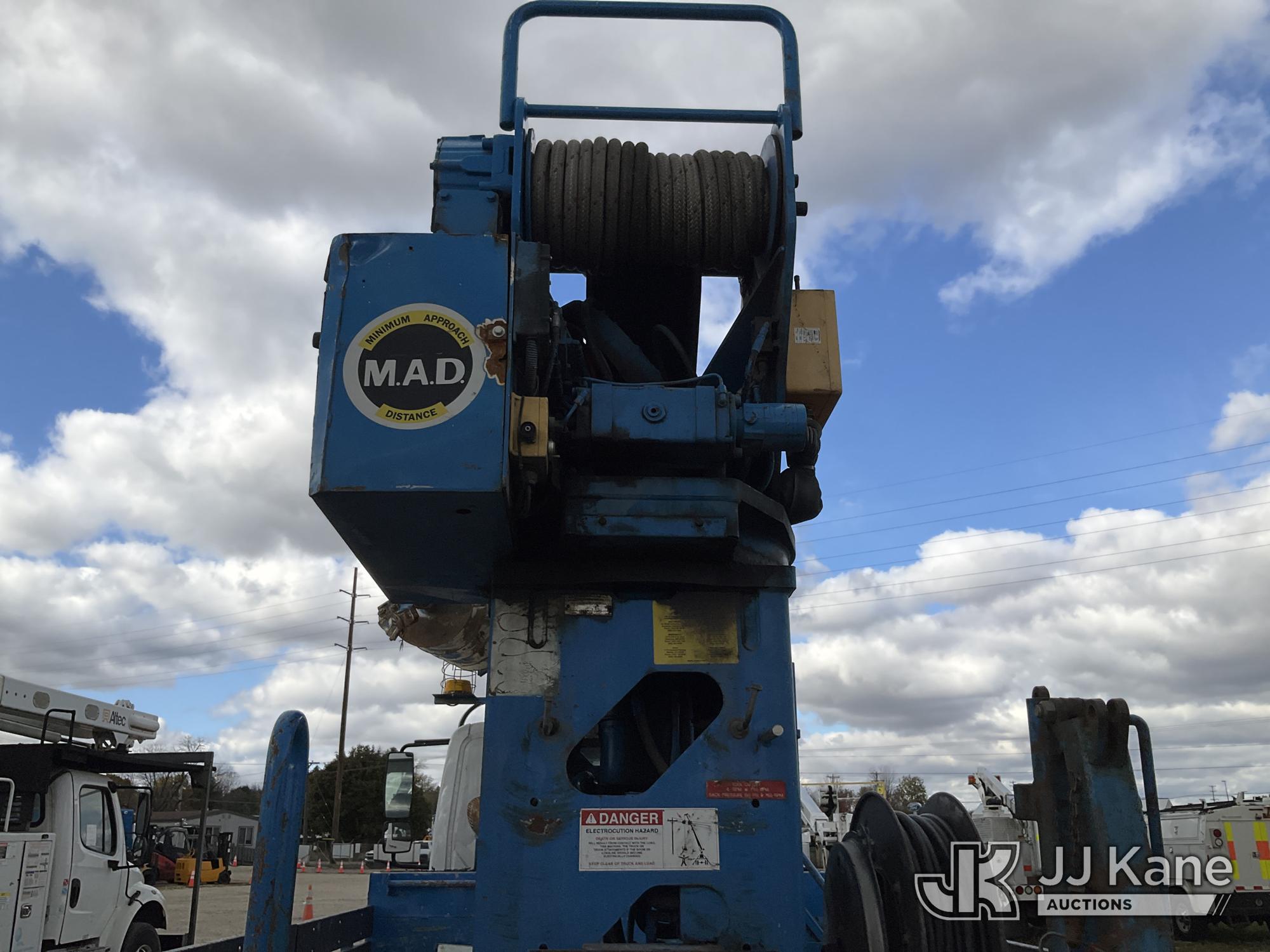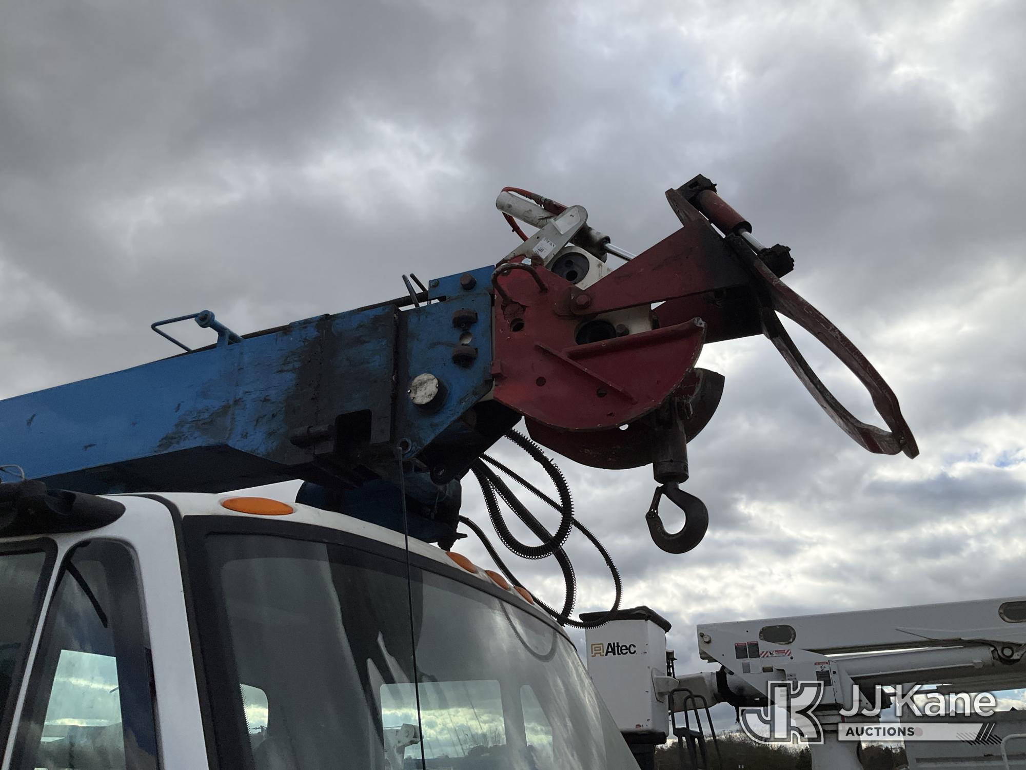 Terex Commander C4047, Digger Derrick s/n 2110544708, with 47 ft. sheave height, 3 section hydraulic boom, two speed auger, four hydraulic outriggers, pole guide, heel winch, pedestal mounted controls, wireless remote - condition unknown, rear mounted on 2012 International 7400 T/A Flatbed/Utility Truck, 7.6L L6 DIESEL 6X4, Auto, A/C, (Runs Rough, Moves, PTO Engages, Upper Condition Unknown) (Smokes - Smells Like Unburnt Fuel, Knocking Noise, Hard Starting, Jump to Start, Remote Condition Unknown - Battery Dead, Upper Controls Unresponsive, Rust, Upper Placard Missing, Unit May Need To Be Towed Away Due To Engine Issues) (Seller States unit removed from service due to: Engine Knock Noise, Smoking Out Exhaust, Transmission Will Not Shift) (Requires ANSI Inspection) This is a Titled Item*