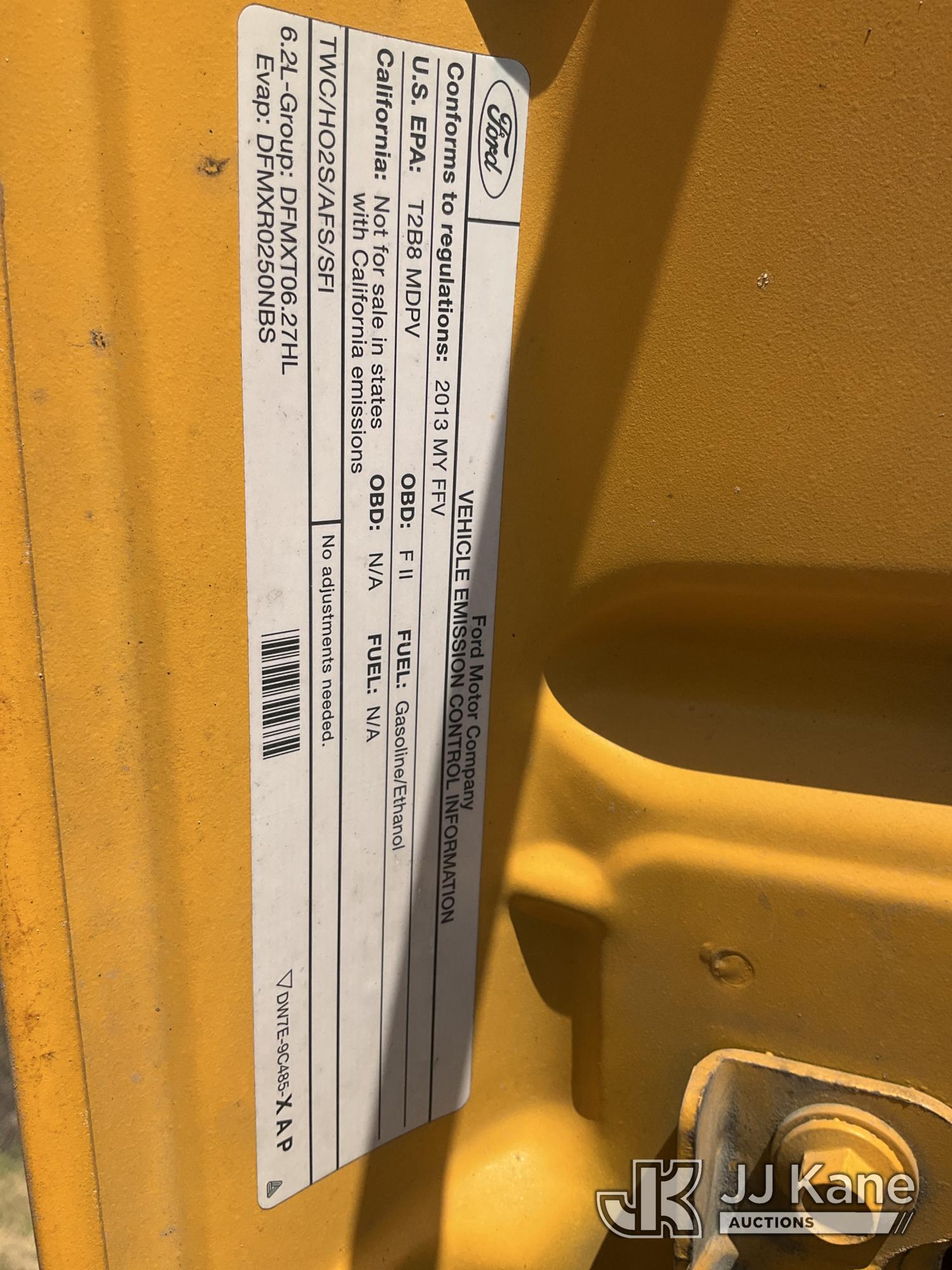 2013 Ford F-250 SD Pickup Truck, 6.2L V8 OHV 16V RWD, Gas, 6-Speed Automatic, A/C, with aux fuel tank w/ pump, (289,842 miles) (Runs & Moves, Fuel Tank Operates) (Front End Clunk, Passenger Mirror Housing Broken, Unable To Open Tailgate, Paint/Body/Rust Damage) (Reads 12,373 hours) This is a Titled Item*