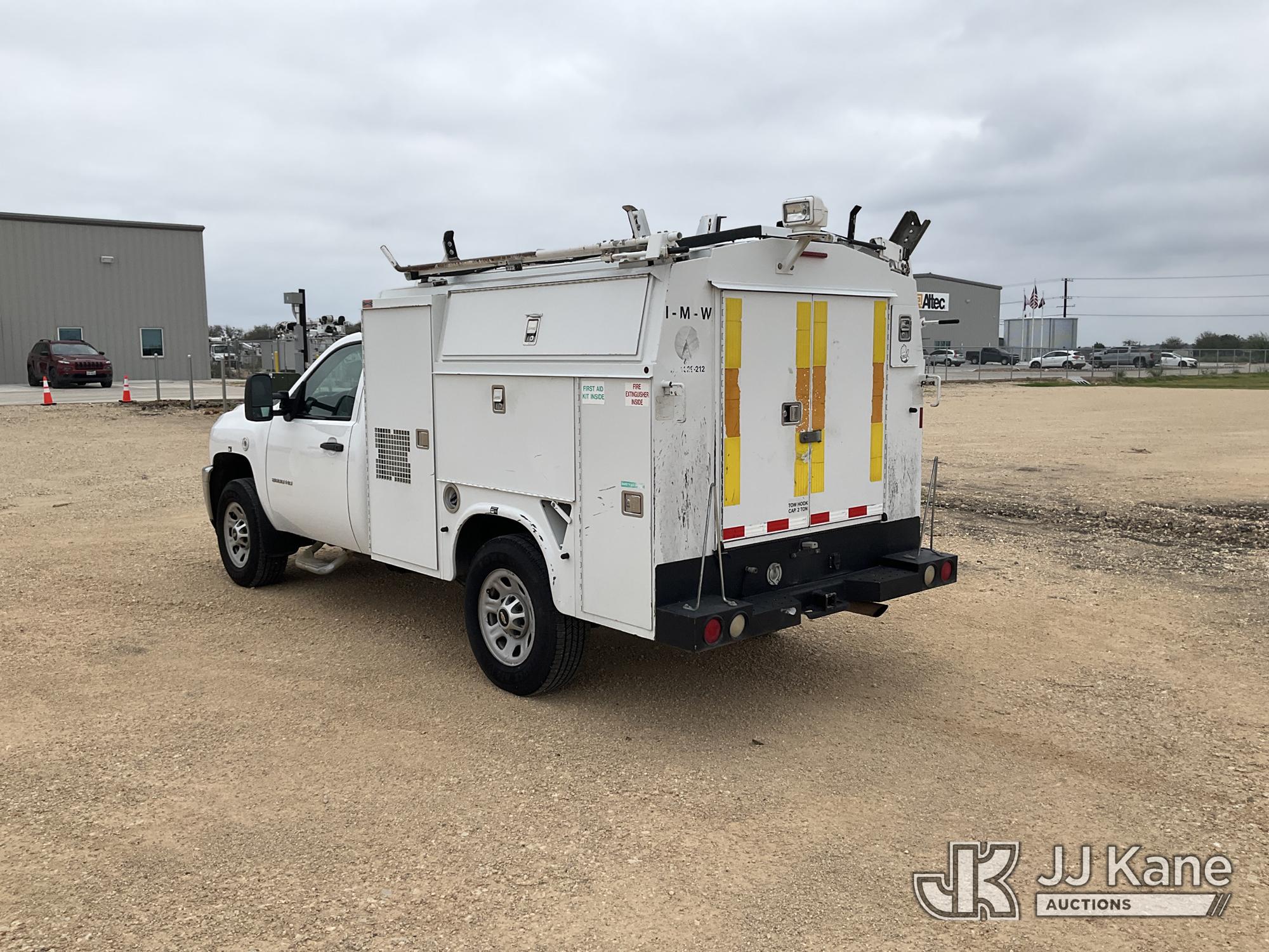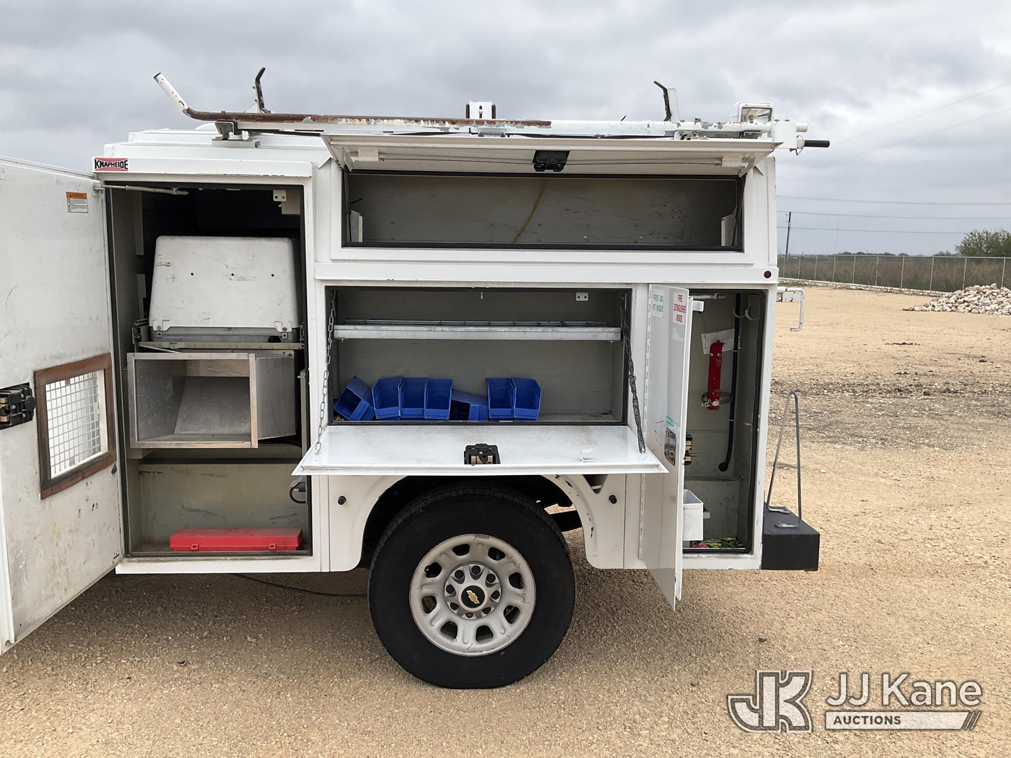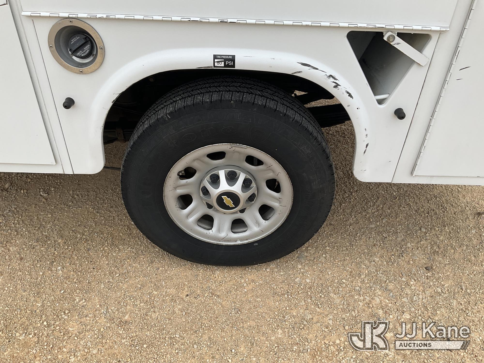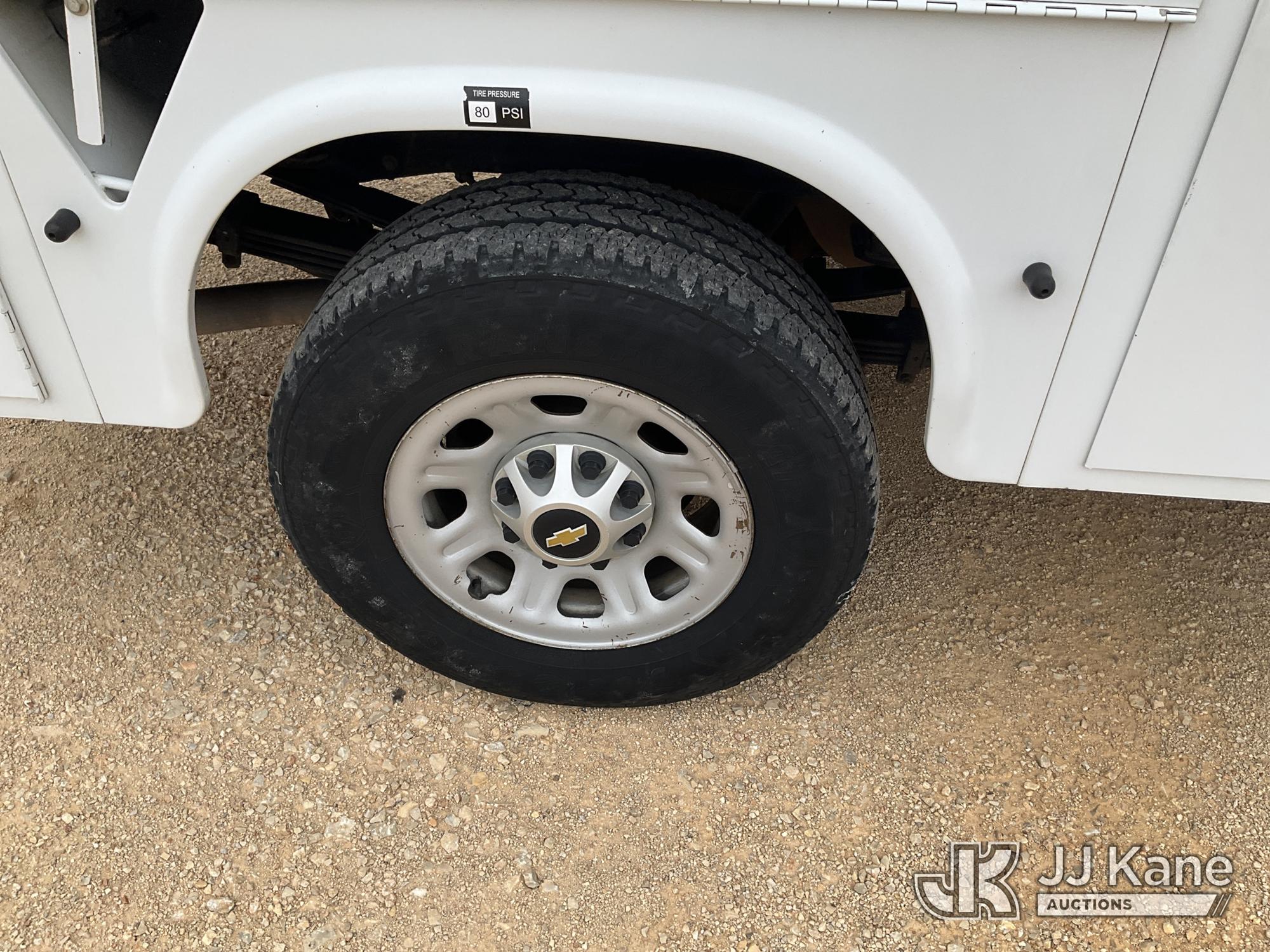 2012 Chevrolet Silverado 3500HD Enclosed Service Truck, 8-cyl gas, Auto, A/C, with Cummins Onan 7kW generator, air compressor/dryer (does not operate, conditions unknown), (152,372 miles) (Runs & Moves, Generator Runs) (Check Engine Light On, Paint Damage) This is a Titled Item*