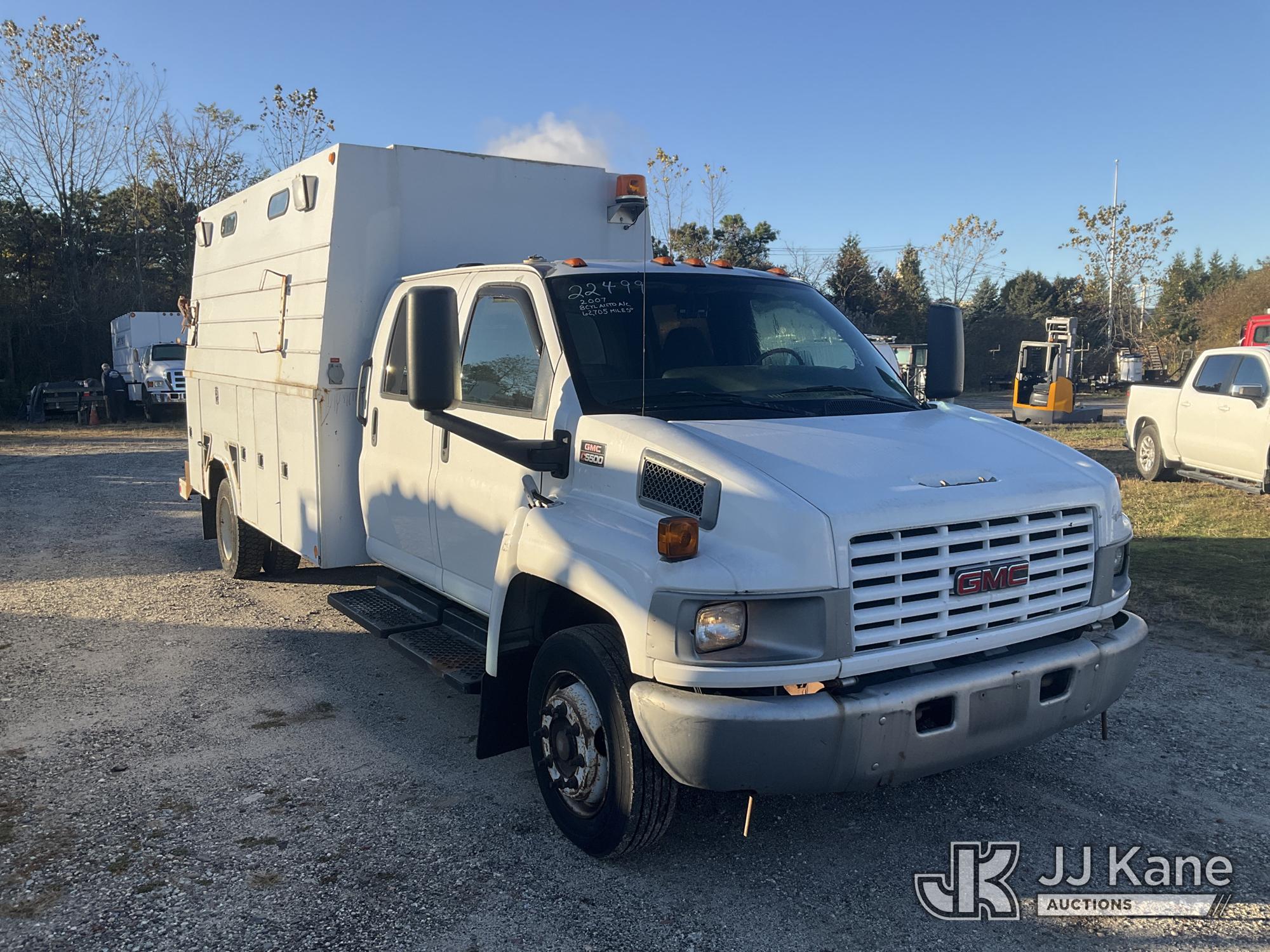 2007 GMC C5500 2WD Crew-Cab Enclosed Service Truck, 8-cyl gas, Auto, A/C, (62,705 miles) (Runs & Moves, Body & Rust Damage) (Removal is by Appointment Only, Buyer MUST make a appointment prior to picking up, Buyer/Transporter Must have PAID IN FULL RELEASE. No onsite assistance available, Please Come prepared.) This is a Titled Item*