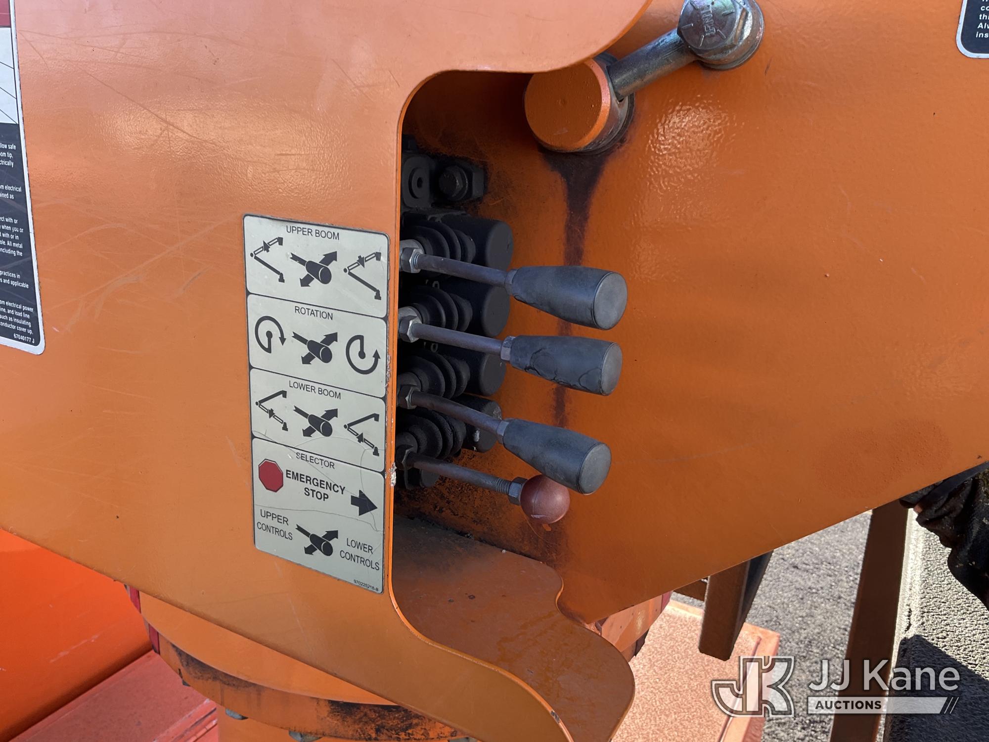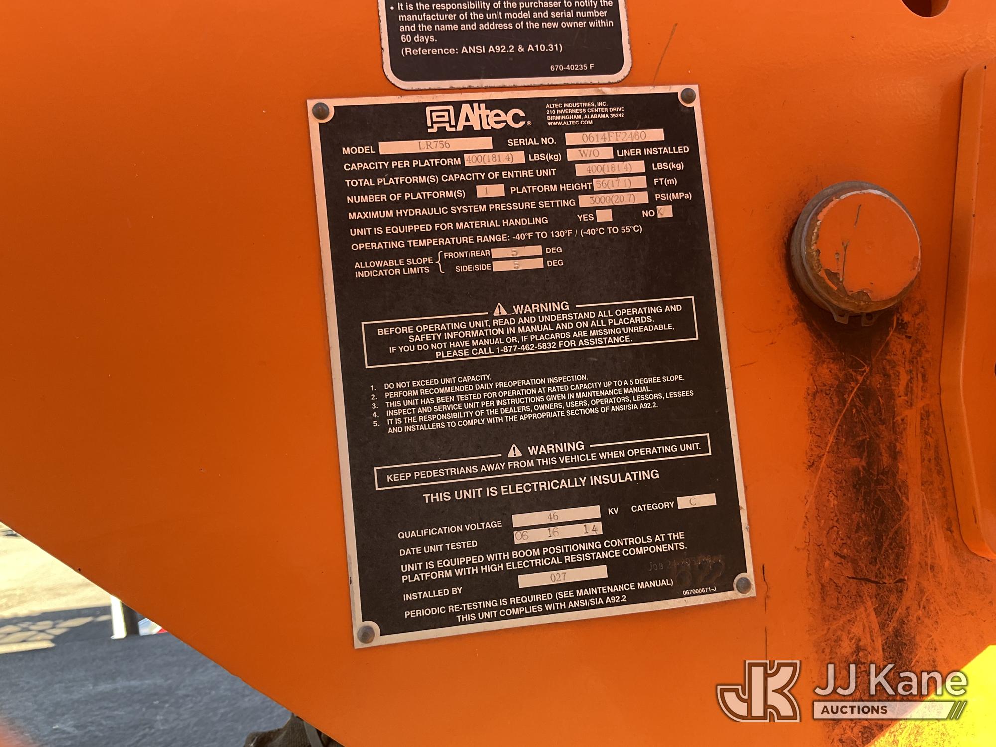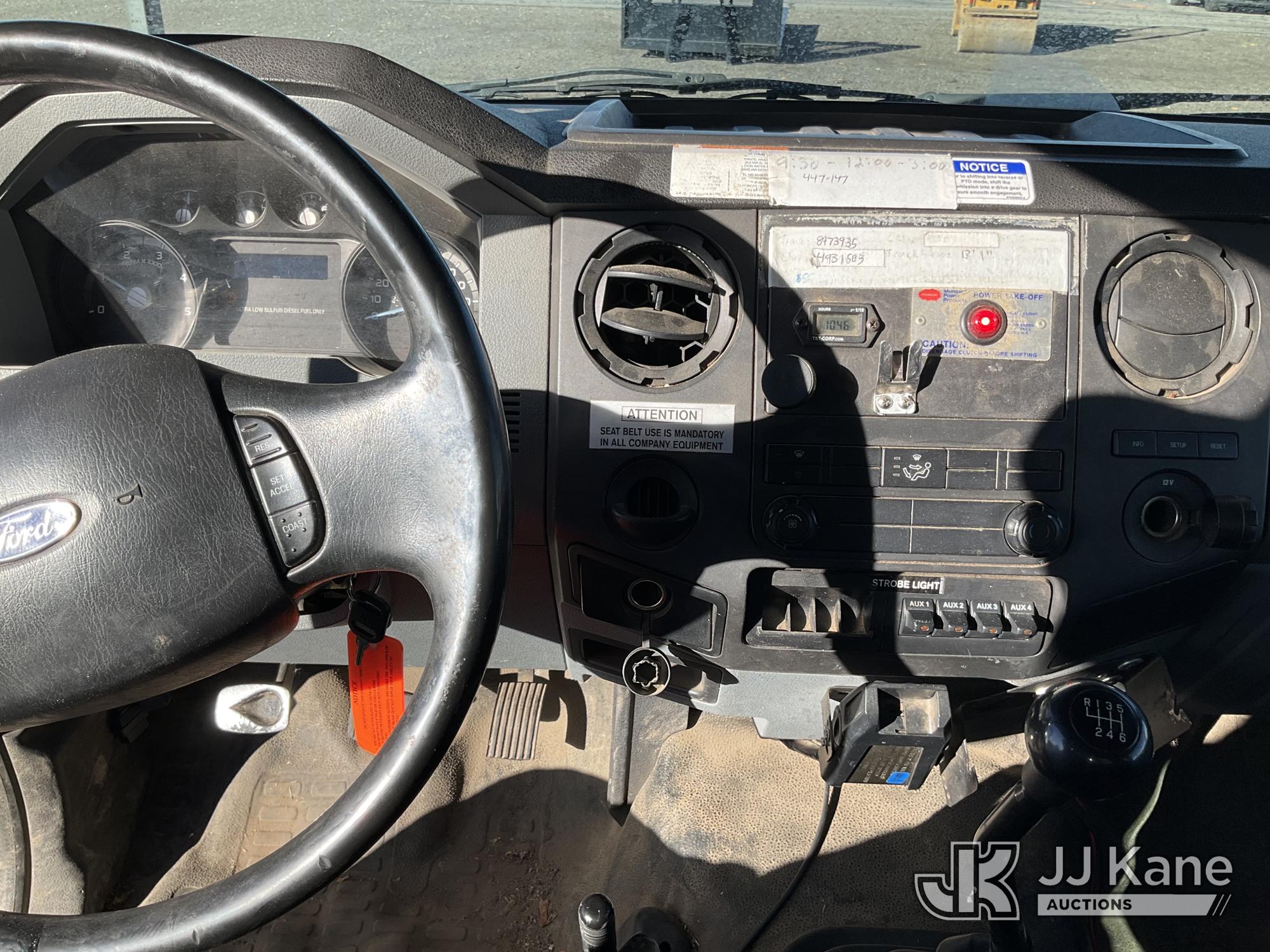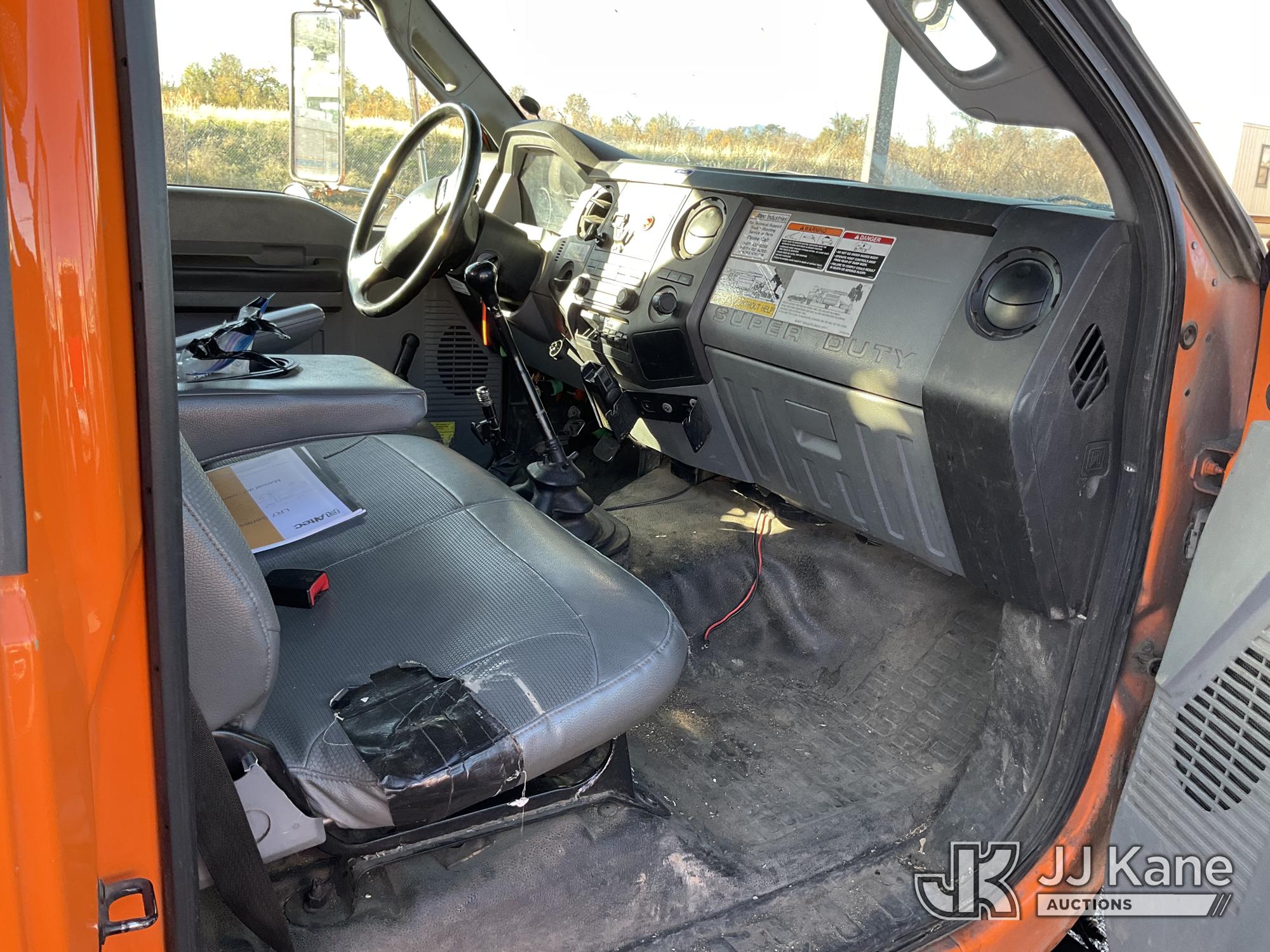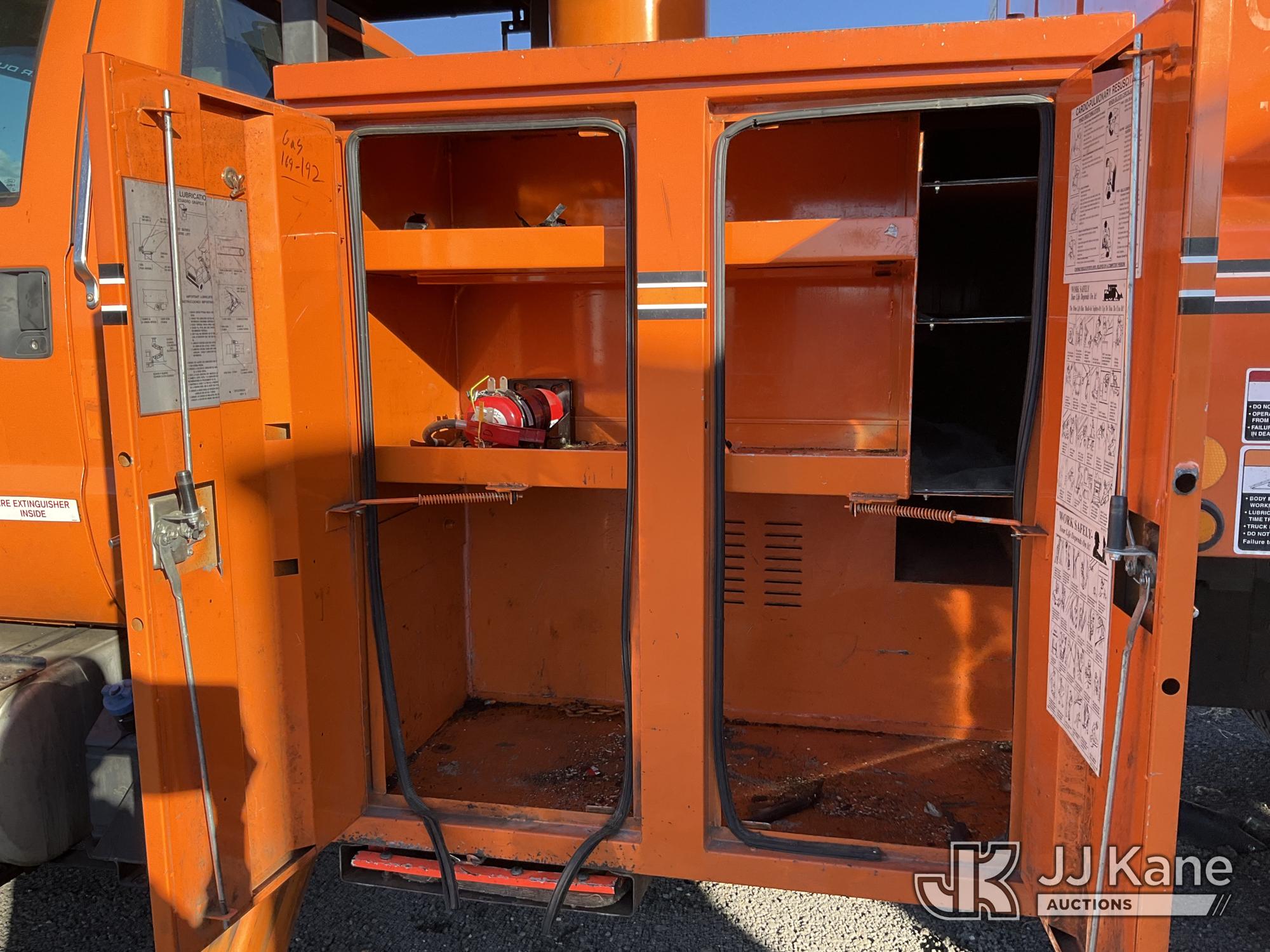 Altec LR756, 61 ft, Over Center Bucket Truck s/n 0614FF2460, with single man bucket & 2 hyd outriggers, mounted behind cab on 2013 Ford F750 Chipper Dump Truck, Cummins 6.7L diesel, 6-spd, (33,977 miles) (Runs, Upper Unit & Dump Operate) (Does Not Move, Driveline Removed, Smokes When On - Wiring Issues - Water Pump Leaks, Check Engine Light On) This is a Titled Item*