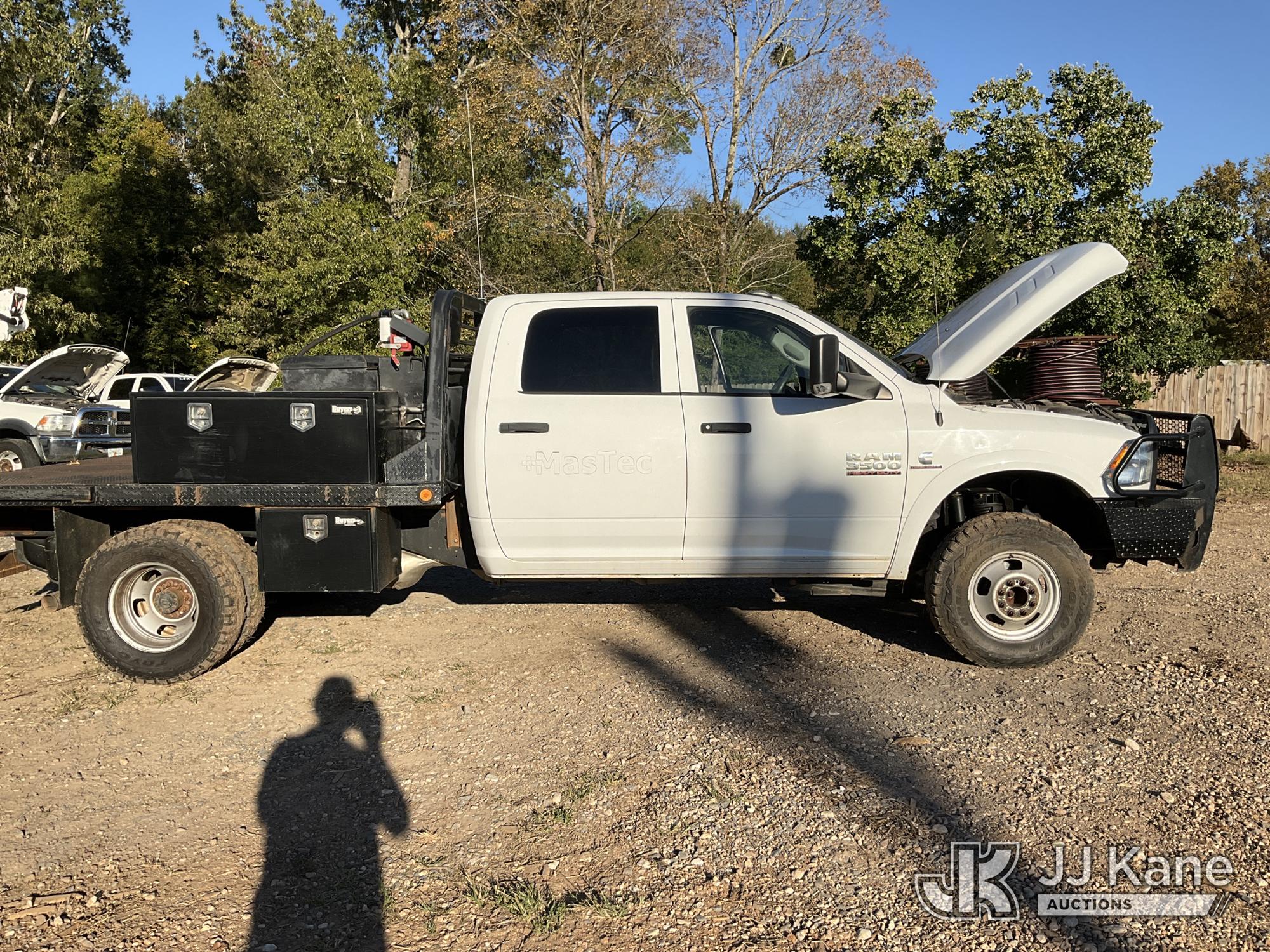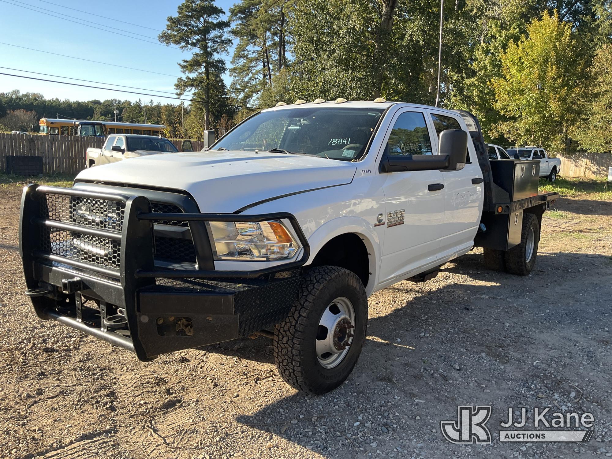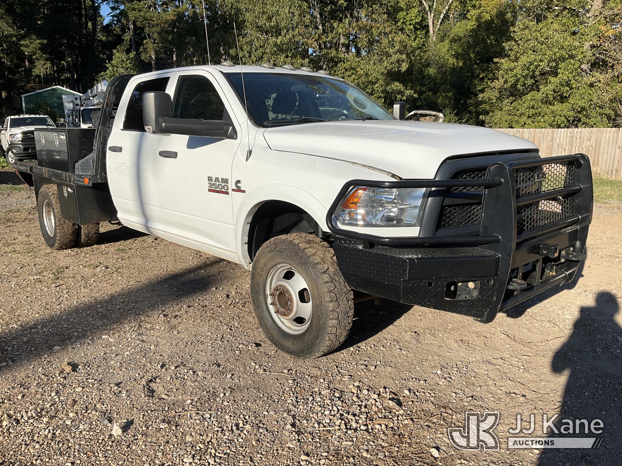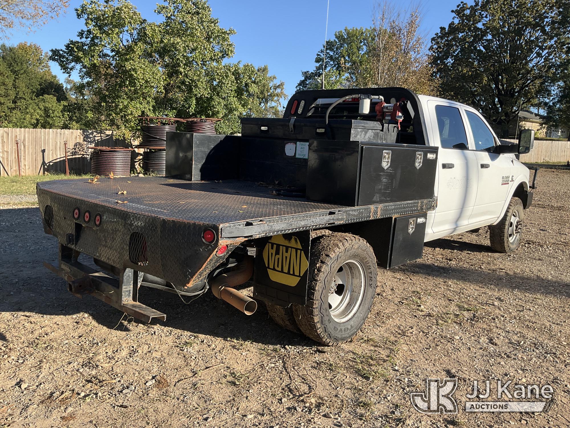 2018 RAM 3500 4x4 Crew-Cab Flatbed Truck, 6.7L diesel, Auto, A/C, with aux fuel tank w/ pump, (155,829 miles) (Runs & Moves) (Jump To Start, Check Engine Light On, Windshield Cracked) (Seller States: Flatbed Needs To Be Re-Secured To Frame, Flatbed Is Not Secure!) (Reads 2,741 hours) This is a Titled Item*