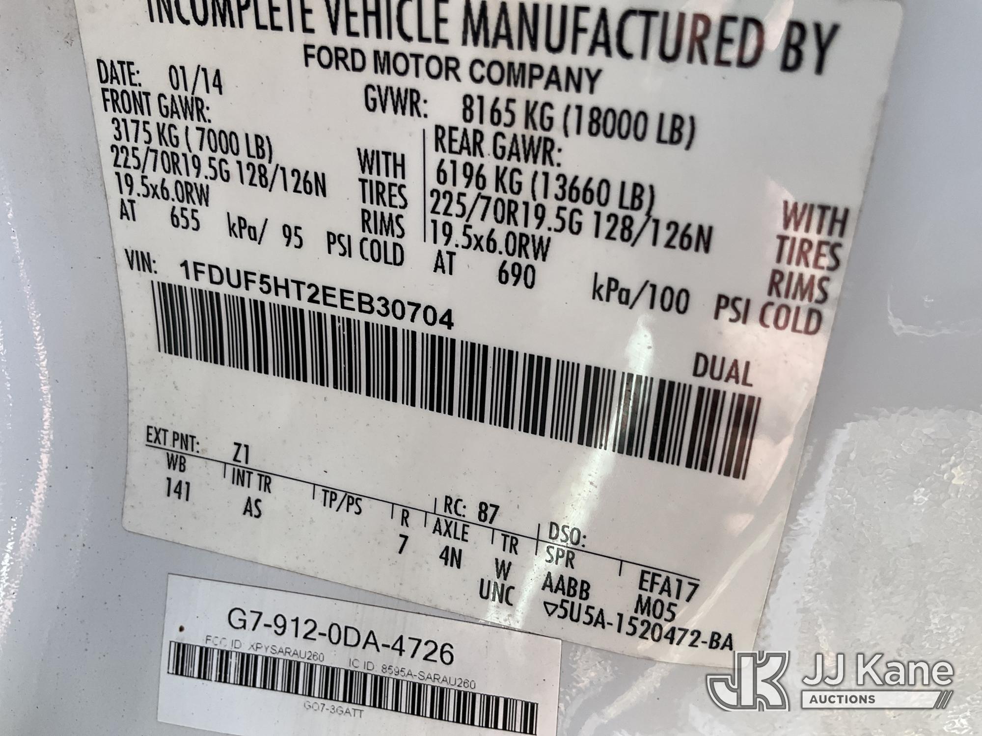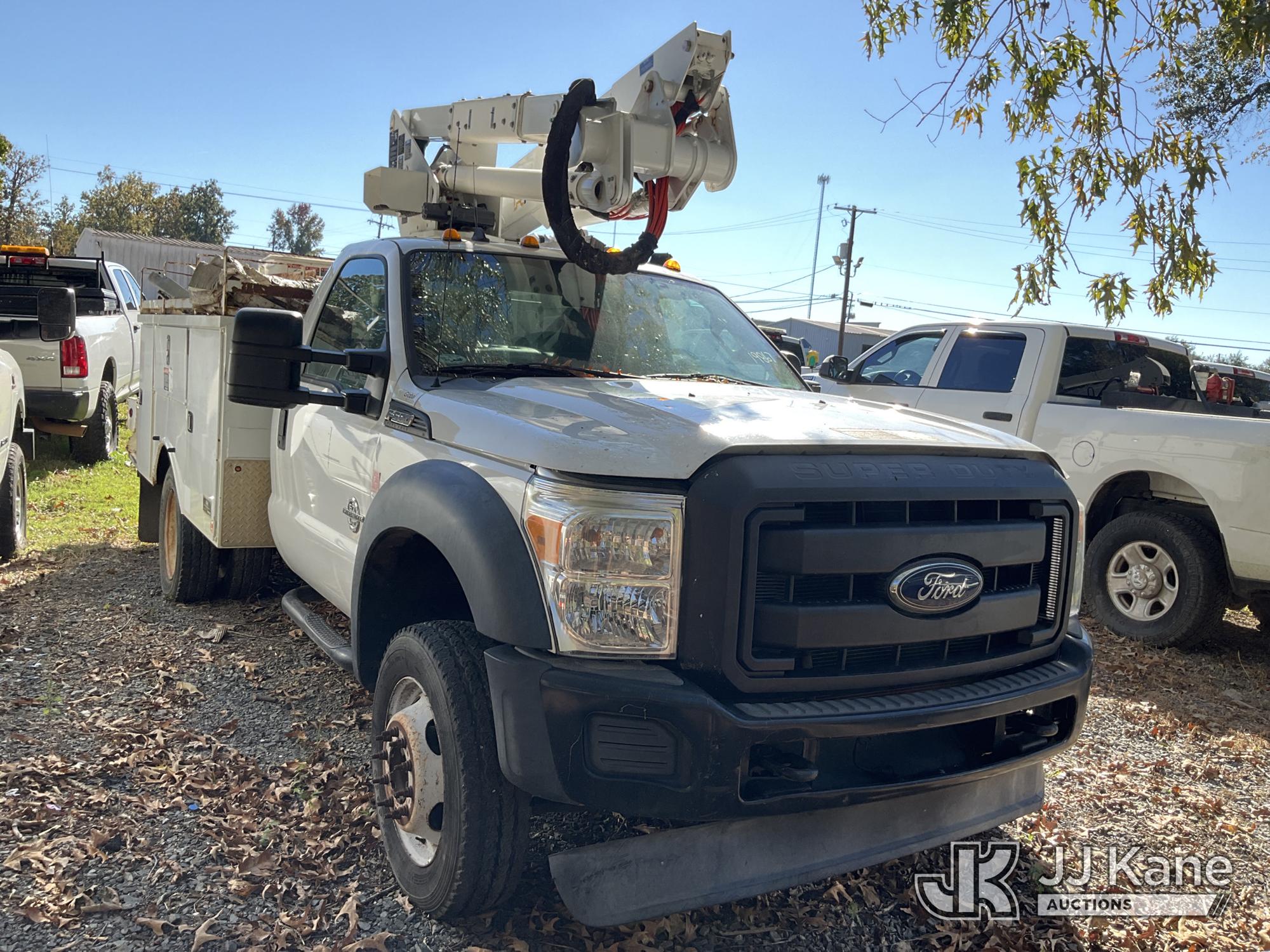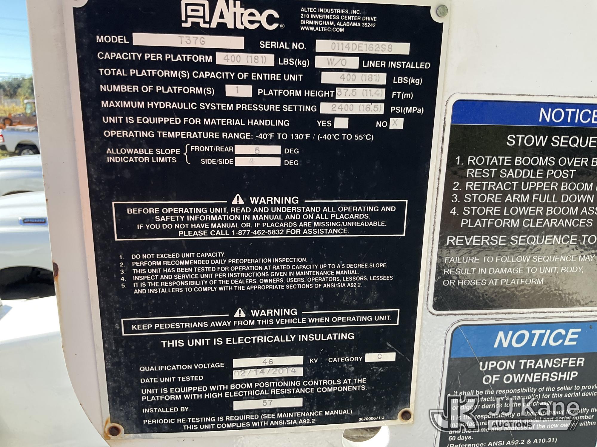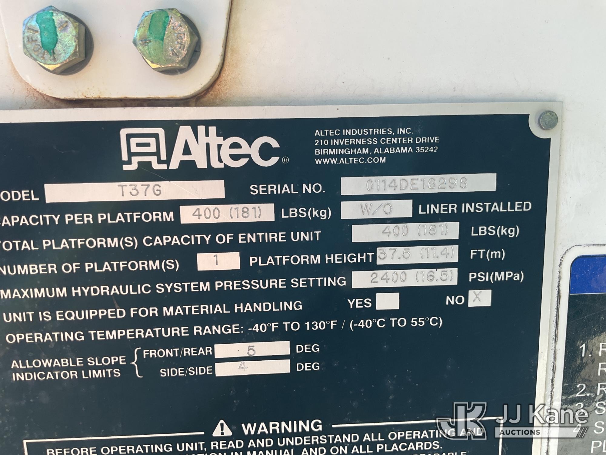 Altec AT37G, 42 ft, Articulating & Telescopic Material Handling Bucket Truck s/n 0114DE16298, with single-man bucket, mounted behind cab on 2014 Ford F550 Service Truck, 6.7L diesel 4wd, Auto, A/C, (146,750 miles) (Not Running, Condition Unknown, Upper Condition Unknown) (Per Seller: "Engine Bad Needs To Be Replaced" Jump for Odometer) This is a Titled Item*